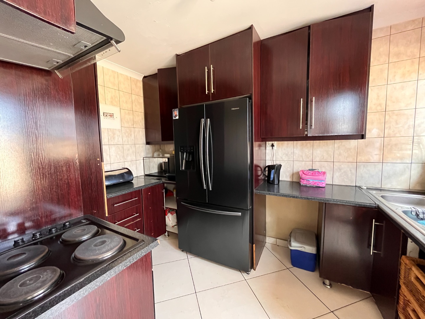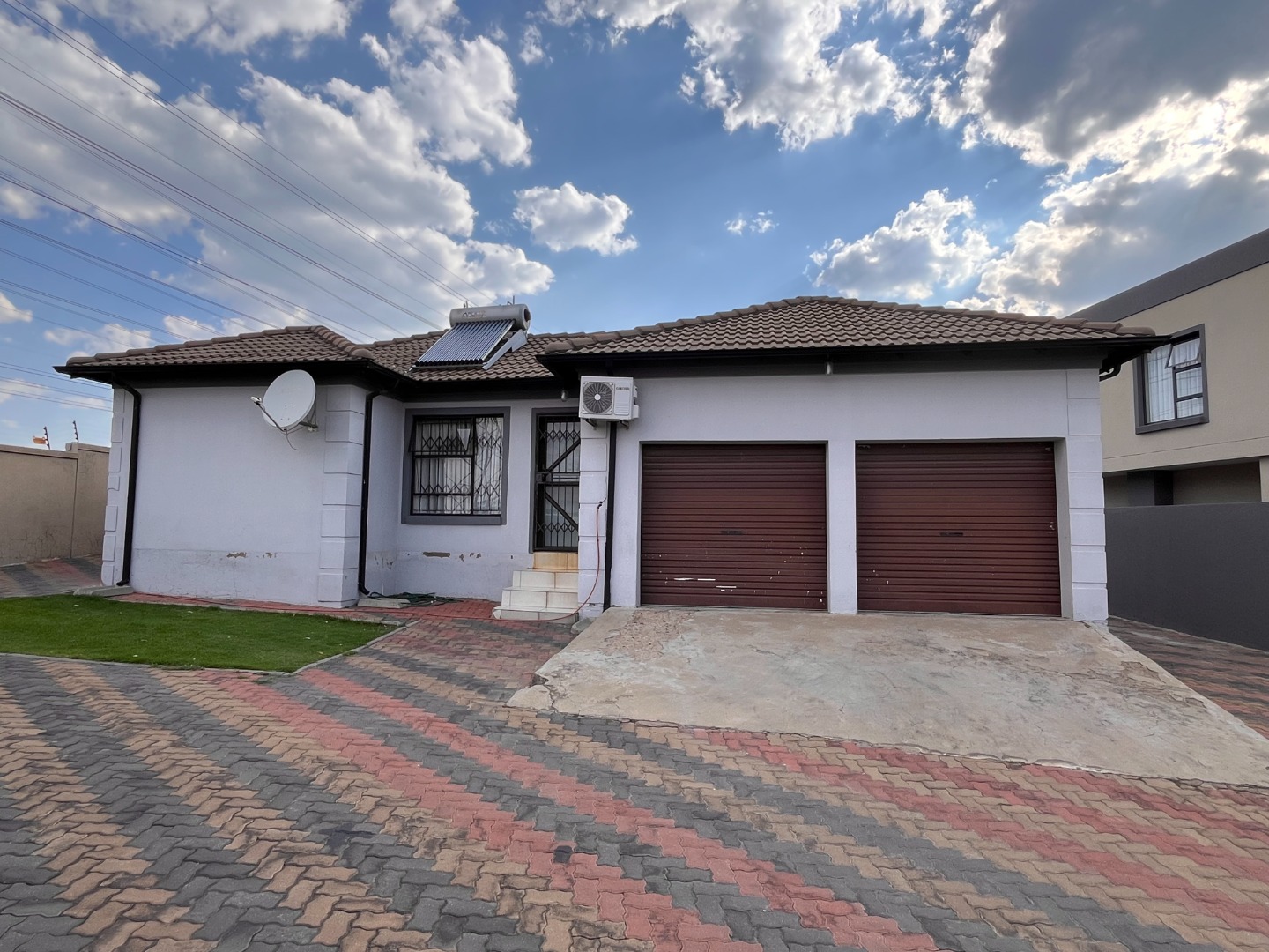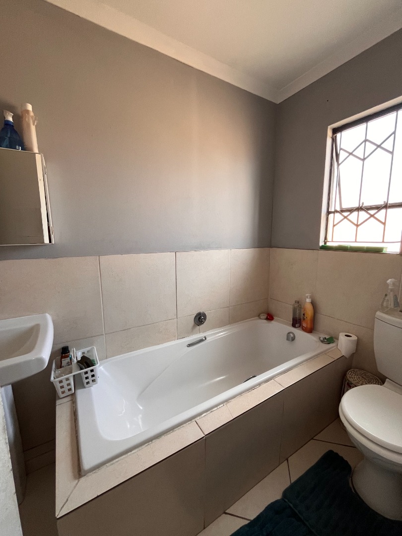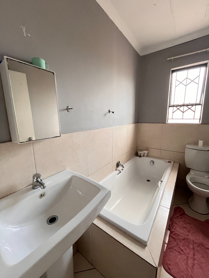 This inviting 3-bedroom, 2-bathroom residence, including one en-suite, offers comfortable living within a secure complex in Waterfall View, Midrand. Spanning 101 square metres, the home features a well-designed layout comprising a spacious lounge, a dedicated dining room, and a functional kitchen. The kitchen is equipped with ample dark wood-look cabinetry, sleek black countertops, tiled flooring, and includes an electric hob with an extractor fan, alongside space for a large double-door refrigerator, catering to all culinary needs. Each of the three bedrooms provides comfortable accommodation, complete with extensive built-in wardrobes for optimal storage. One bedroom benefits from a built-in air conditioning unit, ensuring comfort during warmer months. The bathrooms are neatly tiled, with the main bathroom featuring a full-size bathtub, offering a relaxing retreat. The property's exterior boasts a modern aesthetic with a block-paved driveway leading to a double garage, providing secure parking and additional storage space. Designed for a convenient lifestyle, this home is ideal for families or professionals seeking a secure and well-appointed rental property. The inclusion of a solar water heater contributes to energy efficiency, reducing utility costs. Security is paramount, with the property situated within a security complex, further enhanced by a boundary wall, electric fencing, a security gate, and burglar bars on windows, ensuring peace of mind for residents. Located in Waterfall View, Midrand, this property offers excellent access to local amenities, major transport routes, and business hubs, making it a highly desirable address in South Africa. Key Features: * 3 Bedrooms, 2 Bathrooms (1 en-suite) * 101 sqm Floor Size * Double Garage & Paved Driveway * Modern Kitchen with Built-in Cabinetry * Built-in Wardrobes * Air Conditioning * Solar Water Heater * Security Complex with Electric Fencing, Security Gate, Burglar Bars