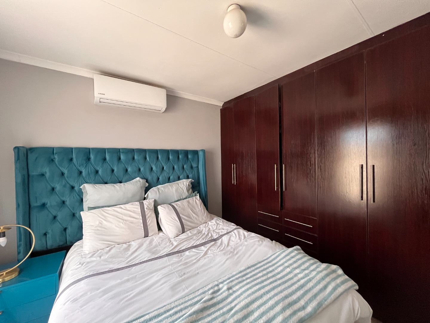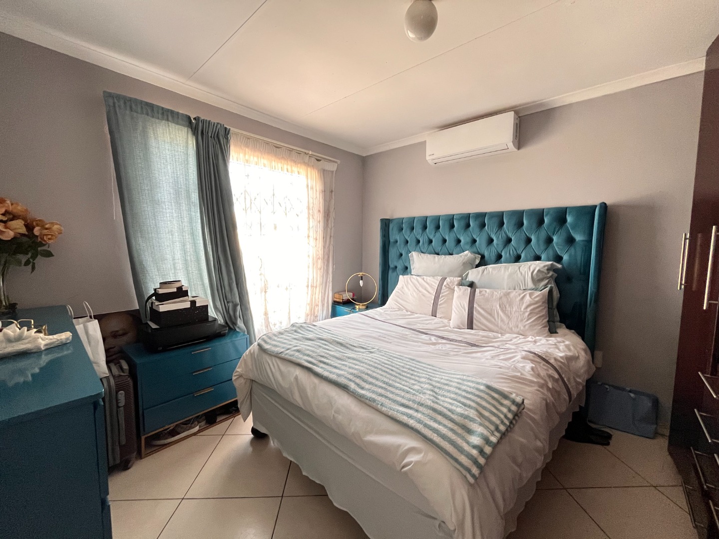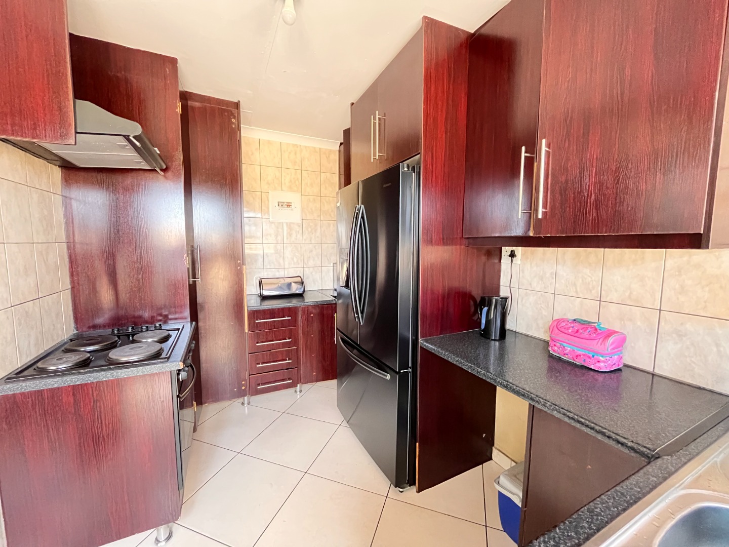 This inviting 3-bedroom, 2-bathroom residence, including one en-suite, offers comfortable living within a secure complex in Waterfall View, Midrand. Spanning 101 square metres, the home features a well-designed layout comprising a spacious lounge, a dedicated dining room, and a functional kitchen. The kitchen is equipped with ample dark wood-look cabinetry, sleek black countertops, tiled flooring, and includes an electric hob with an extractor fan, alongside space for a large double-door refrigerator, catering to all culinary needs. Each of the three bedrooms provides comfortable accommodation, complete with extensive built-in wardrobes for optimal storage. One bedroom benefits from a built-in air conditioning unit, ensuring comfort during warmer months. The bathrooms are neatly tiled, with the main bathroom featuring a full-size bathtub, offering a relaxing retreat. The property's exterior boasts a modern aesthetic with a block-paved driveway leading to a double garage, providing secure parking and additional storage space. Designed for a convenient lifestyle, this home is ideal for families or professionals seeking a secure and well-appointed rental property. The inclusion of a solar water heater contributes to energy efficiency, reducing utility costs. Security is paramount, with the property situated within a security complex, further enhanced by a boundary wall, electric fencing, a security gate, and burglar bars on windows, ensuring peace of mind for residents. Located in Waterfall View, Midrand, this property offers excellent access to local amenities, major transport routes, and business hubs, making it a highly desirable address in South Africa. Key Features: * 3 Bedrooms, 2 Bathrooms (1 en-suite) * 101 sqm Floor Size * Double Garage & Paved Driveway * Modern Kitchen with Built-in Cabinetry * Built-in Wardrobes * Air Conditioning * Solar Water Heater * Security Complex with Electric Fencing, Security Gate, Burglar Bars