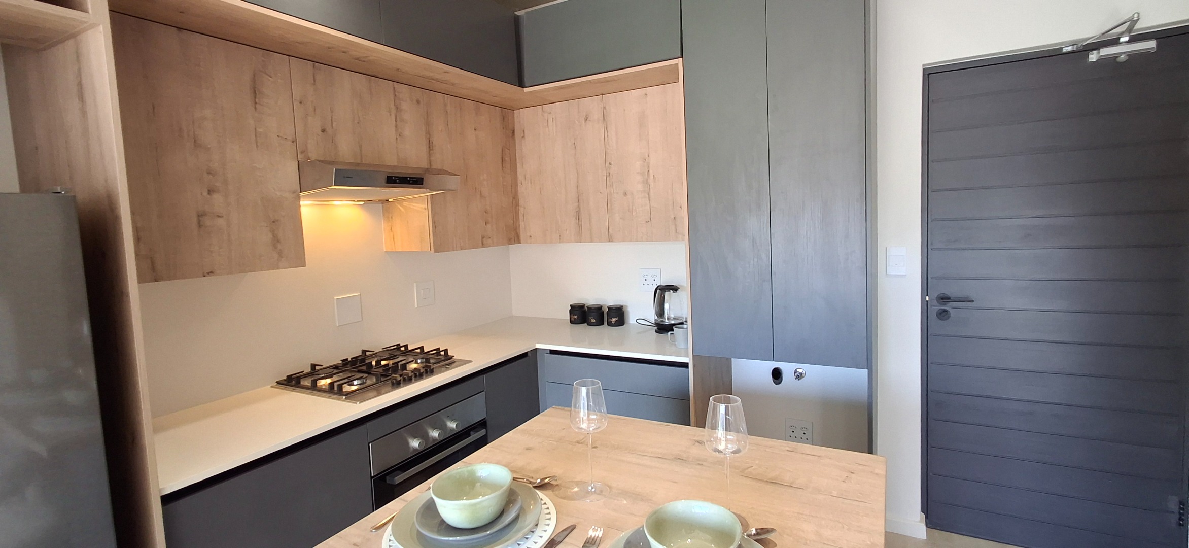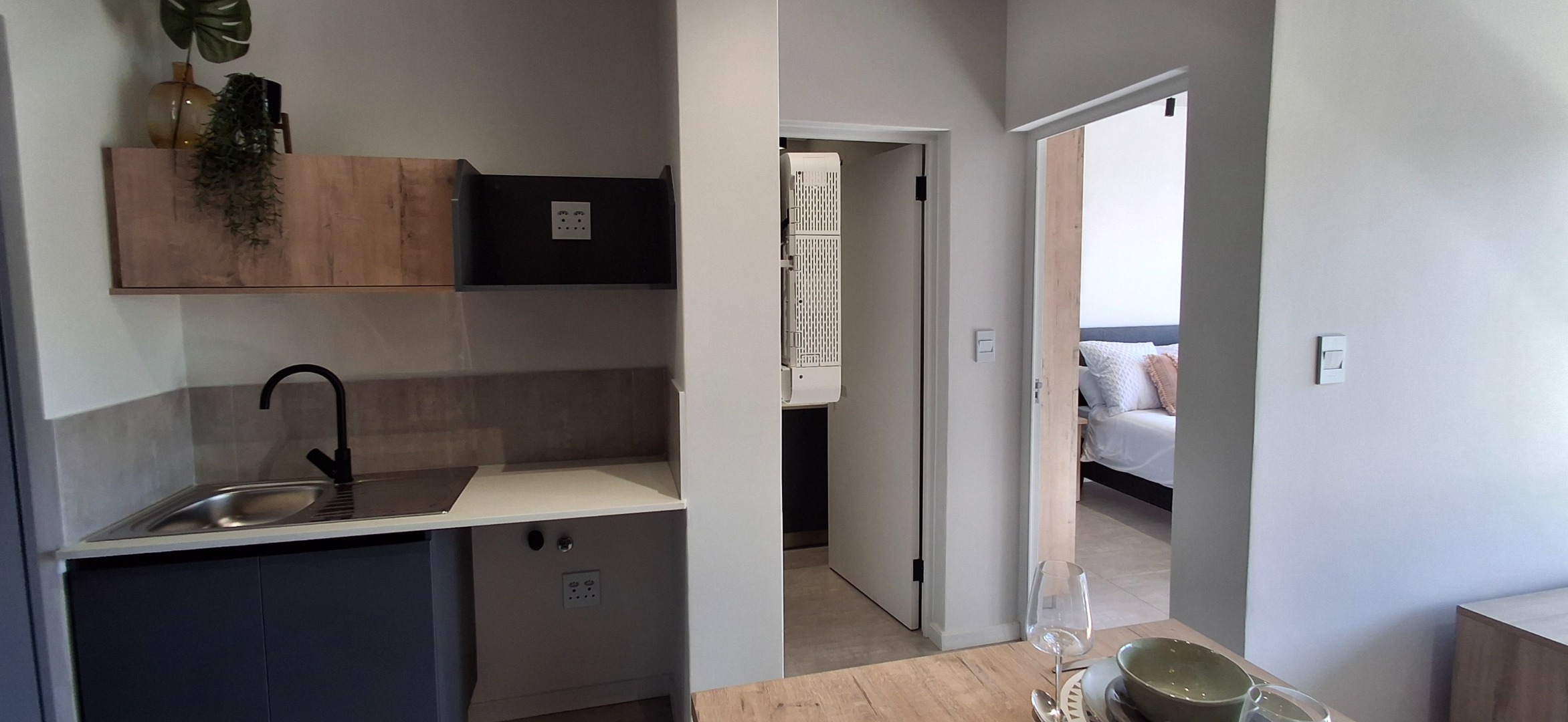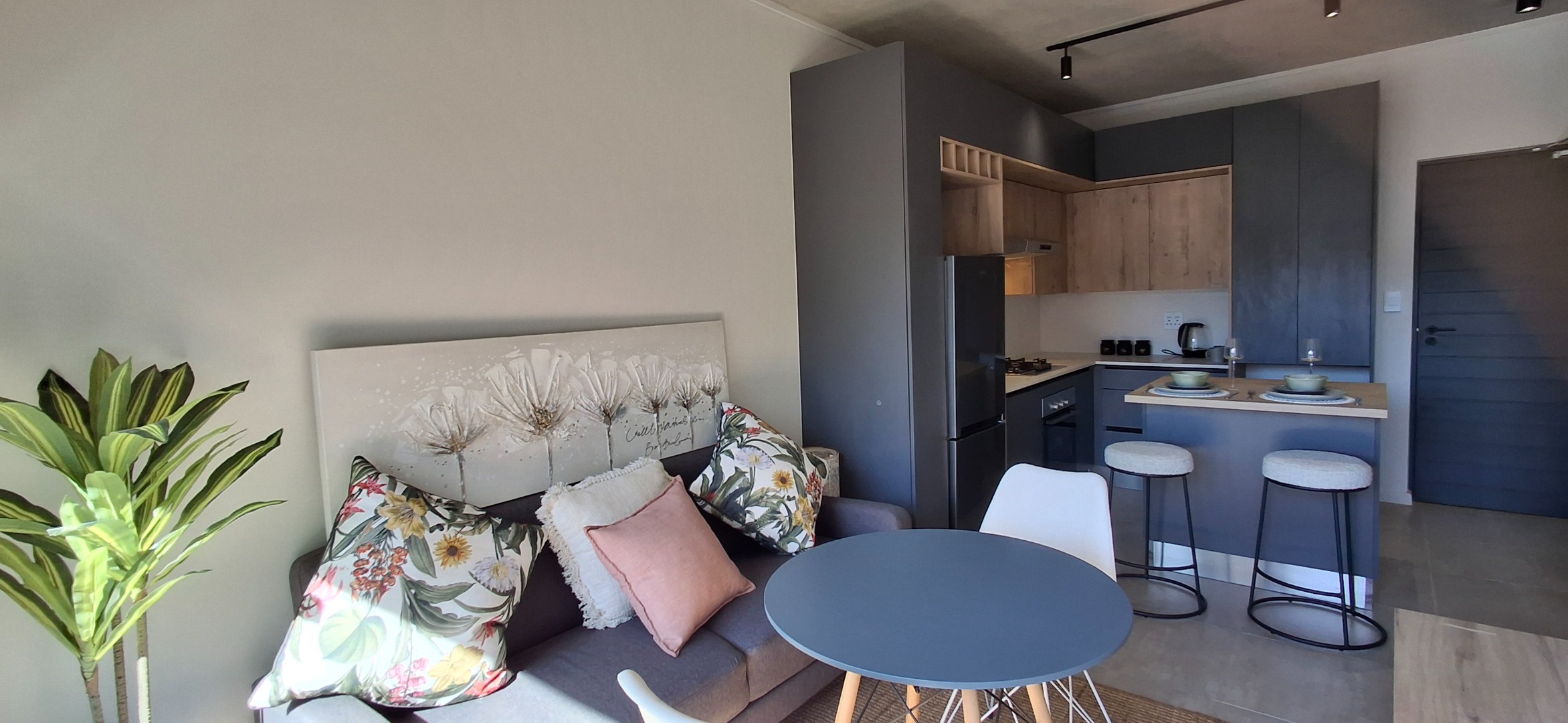 Discover an exquisite urban sanctuary in the heart of Brooklyn, Pretoria, where sophisticated design meets unparalleled convenience. This meticulously crafted 40 sqm apartment offers a singular bedroom and a luxurious bathroom, embodying modern elegance for the discerning individual or couple. The open-plan living area, bathed in natural light from expansive sliding doors, seamlessly integrates a state-of-the-art kitchen featuring sleek dark cabinetry, granite countertops and a gas hob and oven. An inviting breakfast bar provides a chic space for casual dining, while the exposed concrete ceiling with track lighting adds an industrial-chic touch. Step out onto your private balcony to enjoy the metropolitan ambiance, a perfect extension of your refined living space.