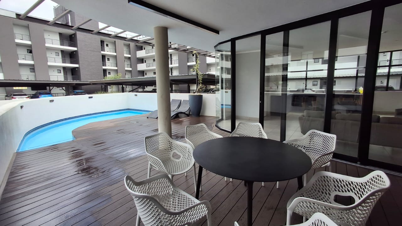 Discover an unparalleled lifestyle within this exquisite 103 sqm furnished residence, meticulously designed for sophisticated urban living in Pretoria's esteemed Brooklyn. This luxurious apartment boasts three opulent bedrooms and three pristine bathrooms, two of which are elegant en-suites, ensuring ultimate comfort and privacy. The expansive open-plan living area, complemented by state-of-the-art air conditioning, flows seamlessly to a perfectly positioned outdoor sanctuary featuring a modern plunge pool and an expansive deck, perfect for unwinding with friends and family. An integrated outdoor entertaining space, complete with a built-in bar, as well as board room facilities (that can be booked out for private use).