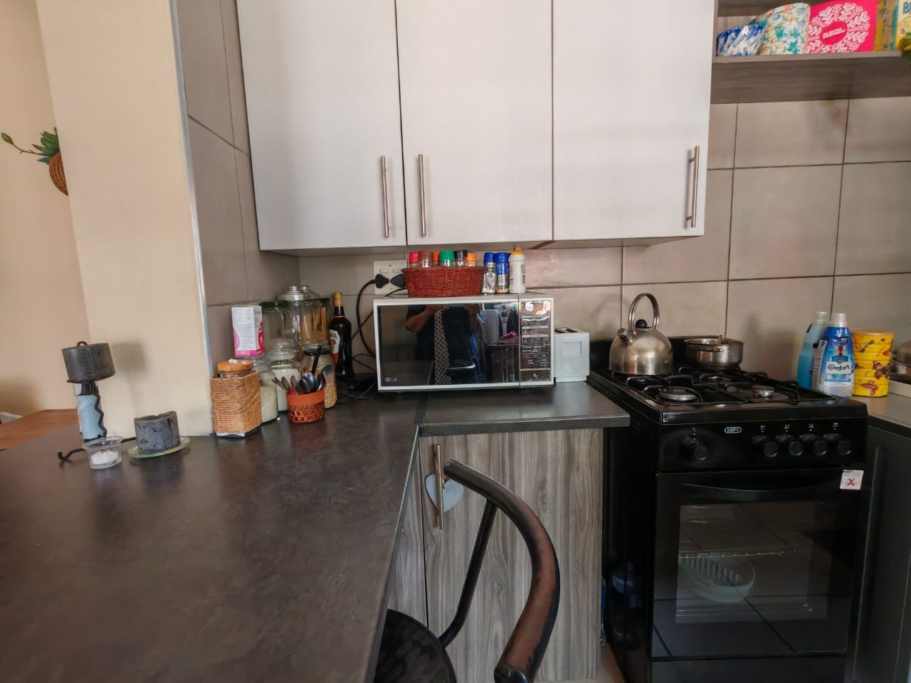 Modern 1 bed cottage nestled against the mountain. Open plan lounge and kitchen area. Tiled throughout. Kitchen has gas stove, many modern kitchen units, double zinc. Very big bedroom with built in cupboard, bathroom with shower and bath. Undercover parking. Gas geyser and stove. Electricity is metered at end of the month. Huge savings on electricity. Deposit required. Available 1 Feb 2026.