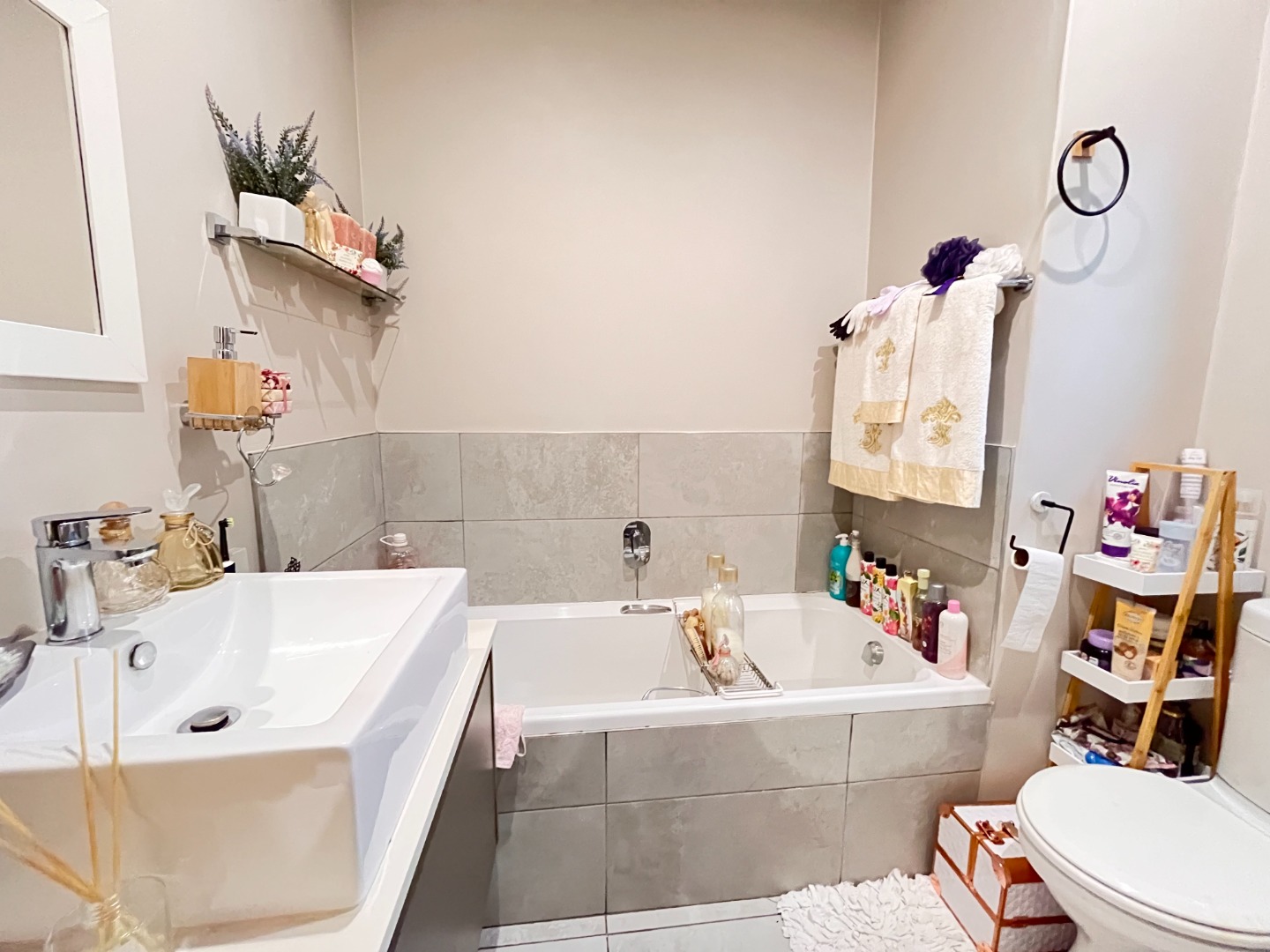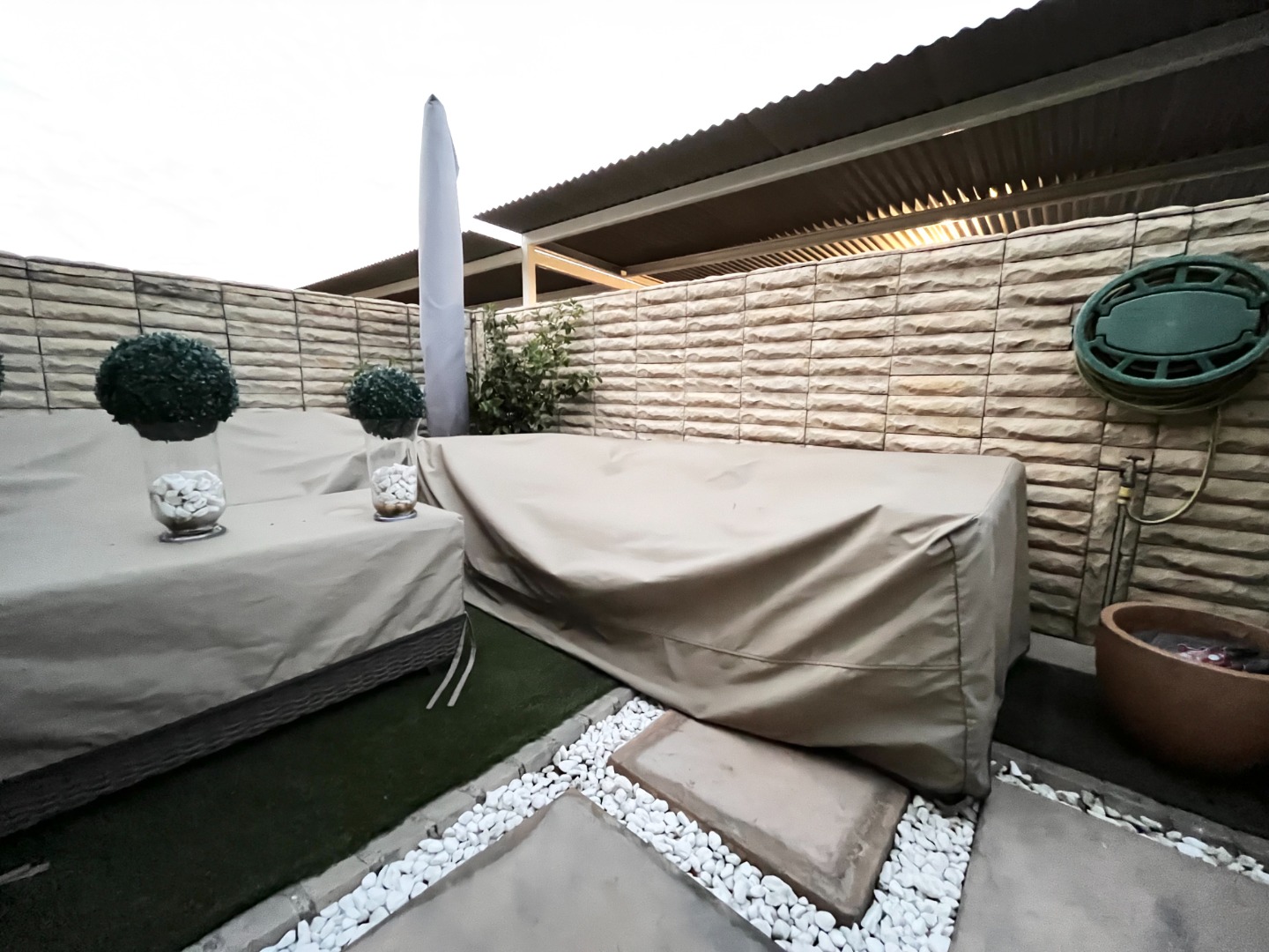 This pet-friendly rental is ideal for professionals or small families seeking comfort and convenience. The design promotes an effortless lifestyle, with a dedicated dining space perfect for entertaining. While laundry facilities are conveniently integrated into the living area, the focus remains on functional and aesthetically pleasing design elements. Step outside to a private, paved outdoor area, offering a low-maintenance space for relaxation or a small garden, complete with an awning and outdoor storage.