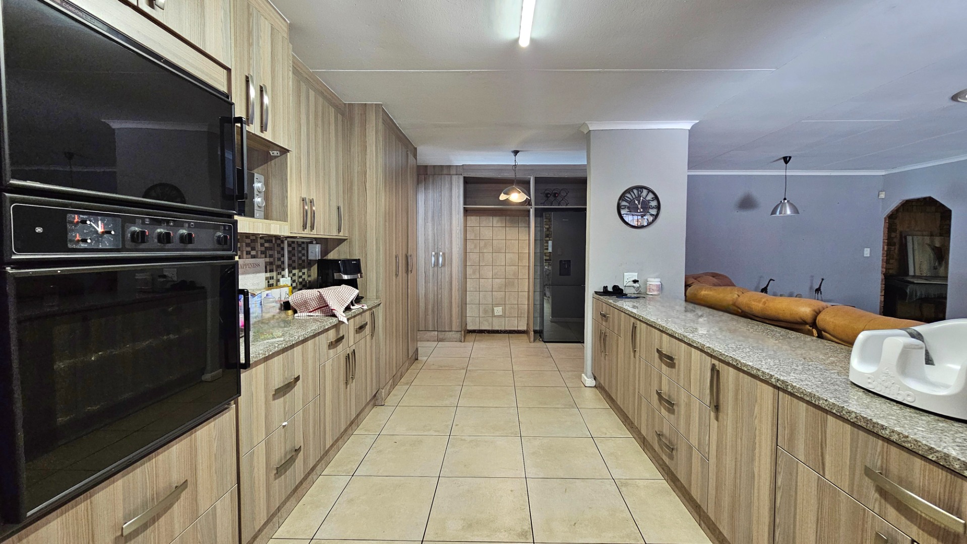 The kitchen is equipped with a double eye-level oven and 5 burner gas hob. Theres space for two large fridges. The scullery has space for a dishwasher. The separate laundry has space for many appliances and extra freezers/ fridges.