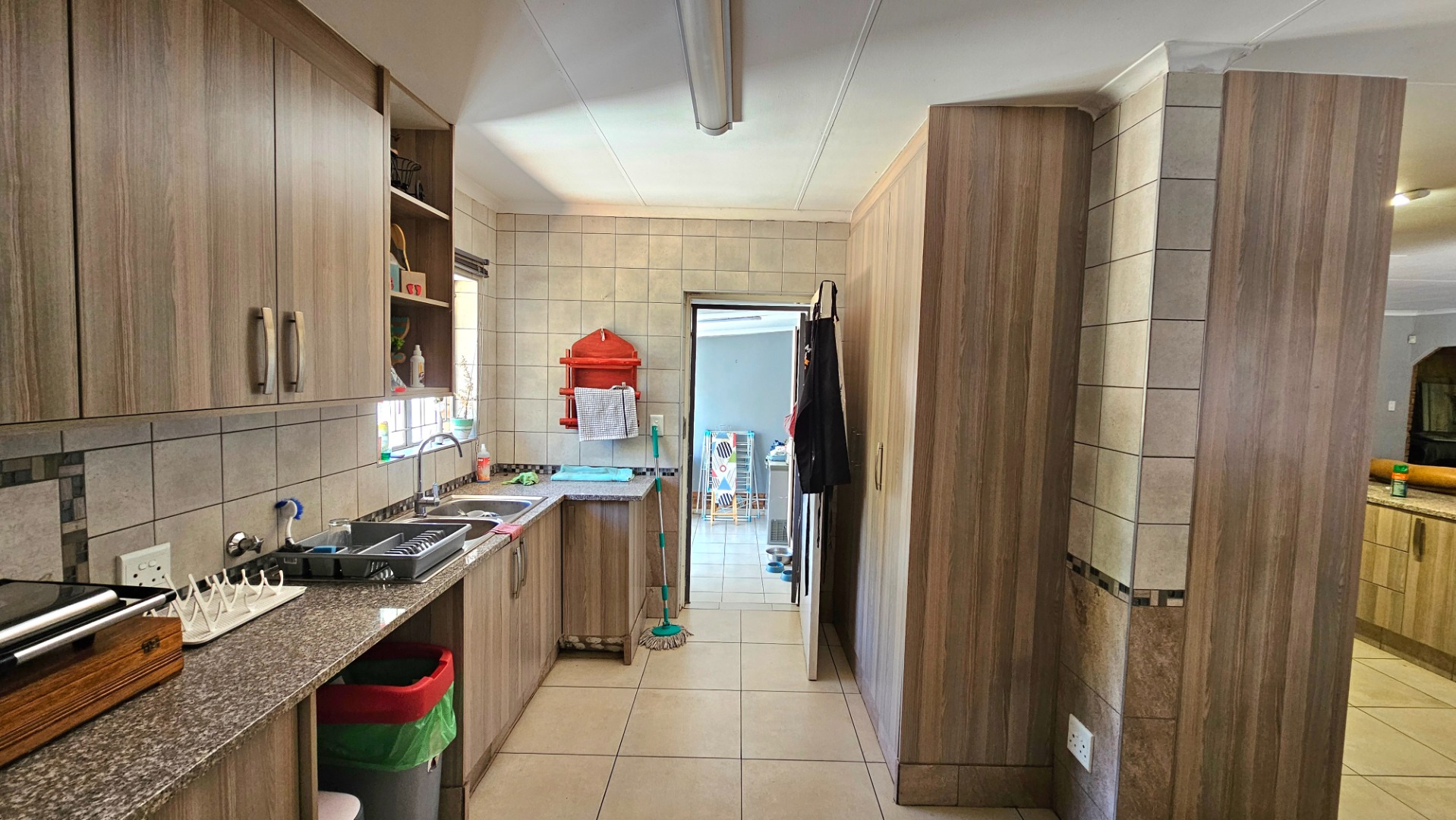 The kitchen is equipped with a double eye-level oven and 5 burner gas hob. Theres space for two large fridges. The scullery has space for a dishwasher. The separate laundry has space for many appliances and extra freezers/ fridges.