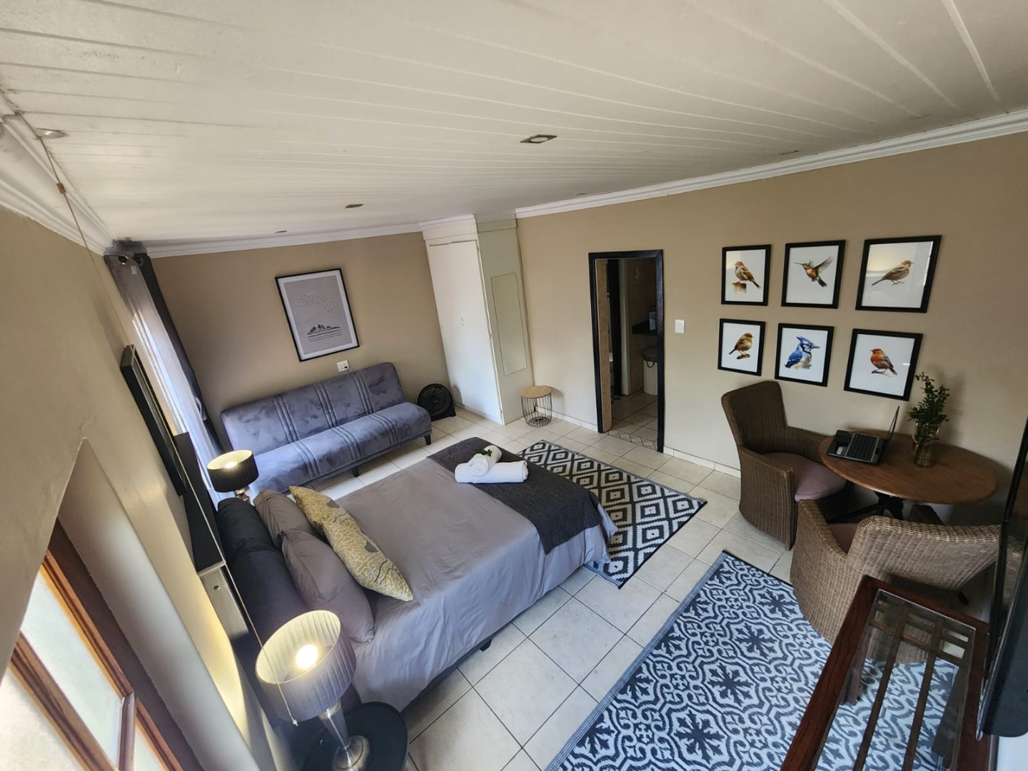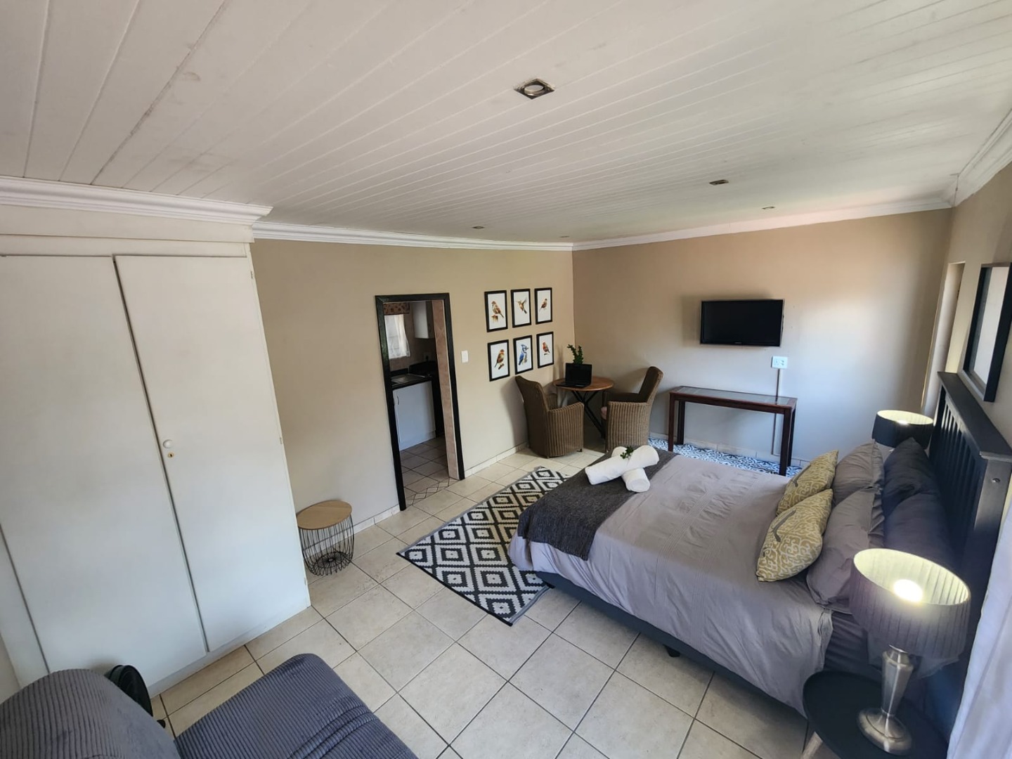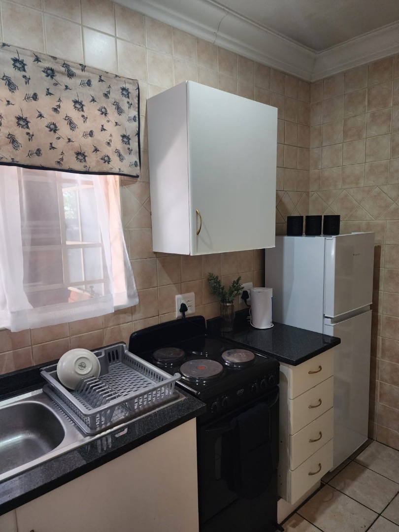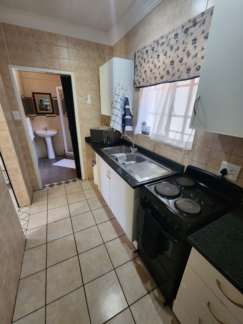 Fully furnished, spacious bachelor flat, neat furnishings, separate kitchen and bathroom, undercover parking. Rental includes water, electricity, wifi, and full package DSTV. It is centrally located, five minutes drive from two major shopping centers.