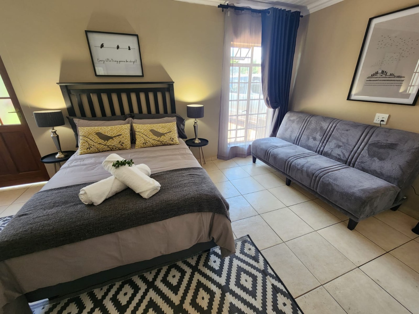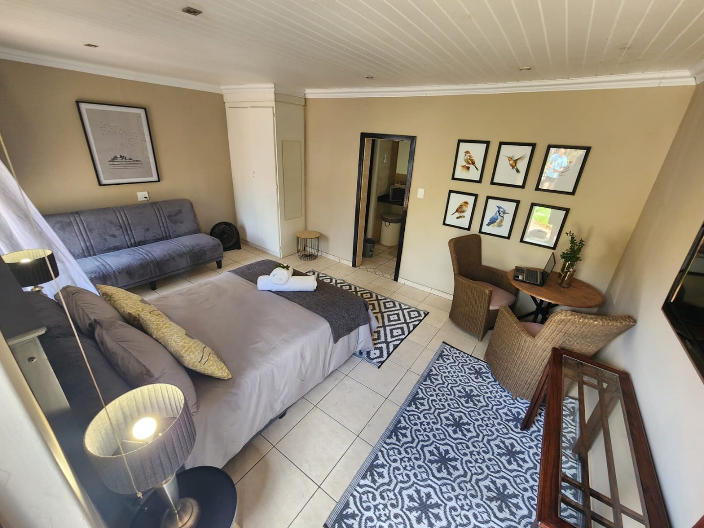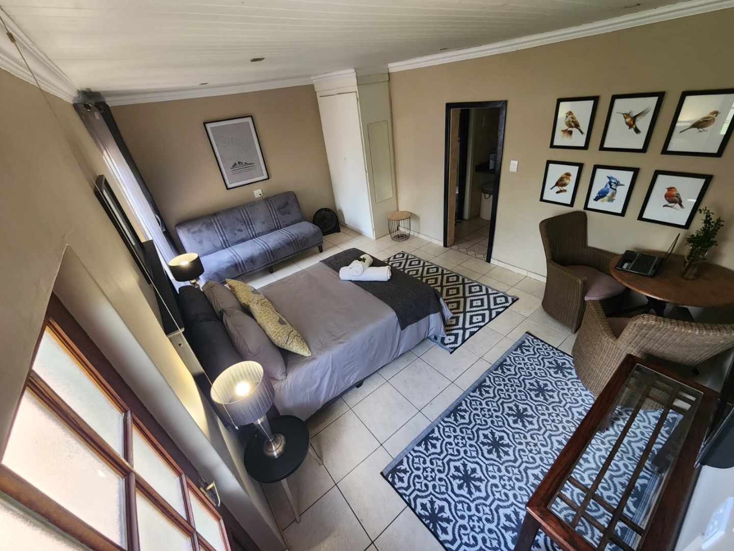 Fully furnished, spacious bachelor flat, neat furnishings, separate kitchen and bathroom, undercover parking. Rental includes water, electricity, wifi, and full package DSTV. It is centrally located, five minutes drive from two major shopping centers.
