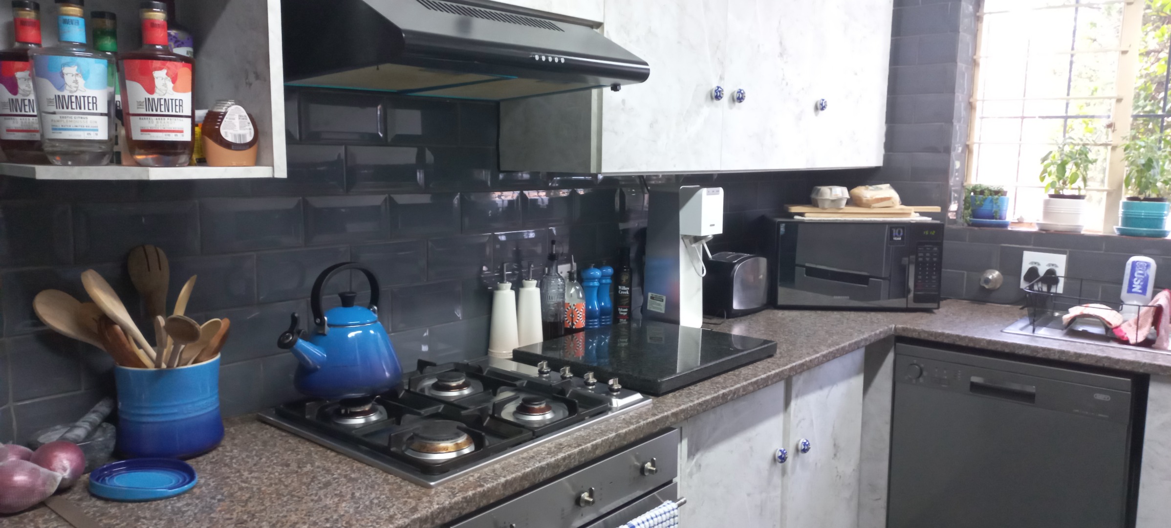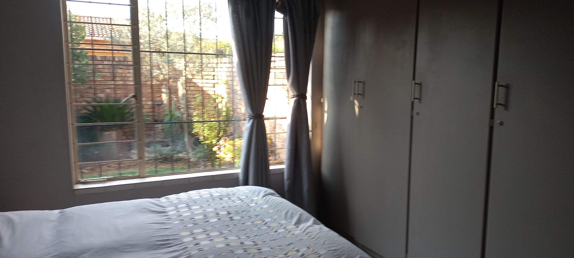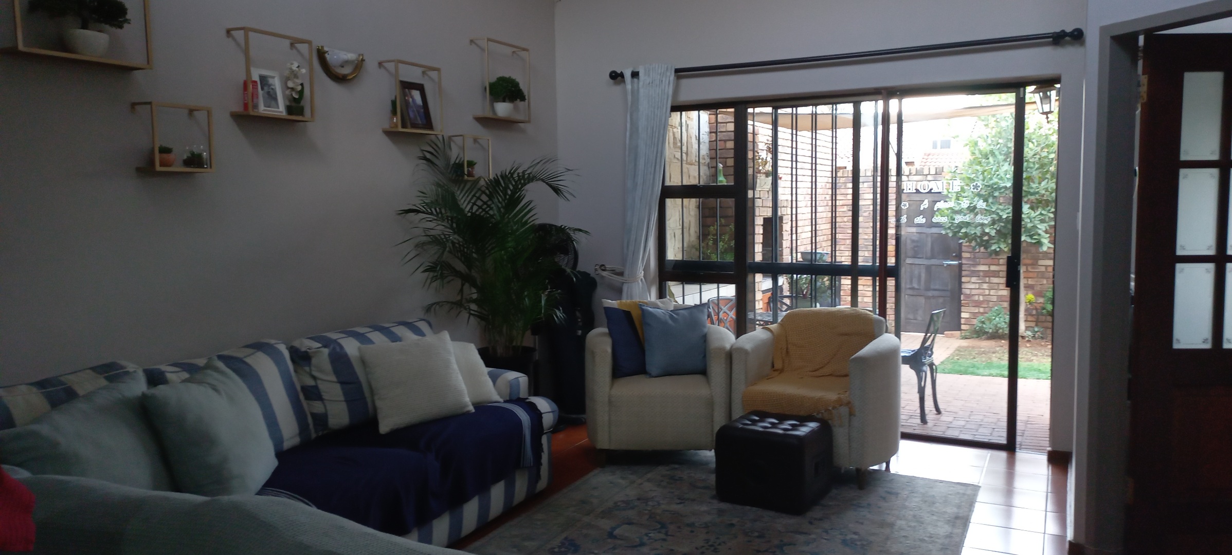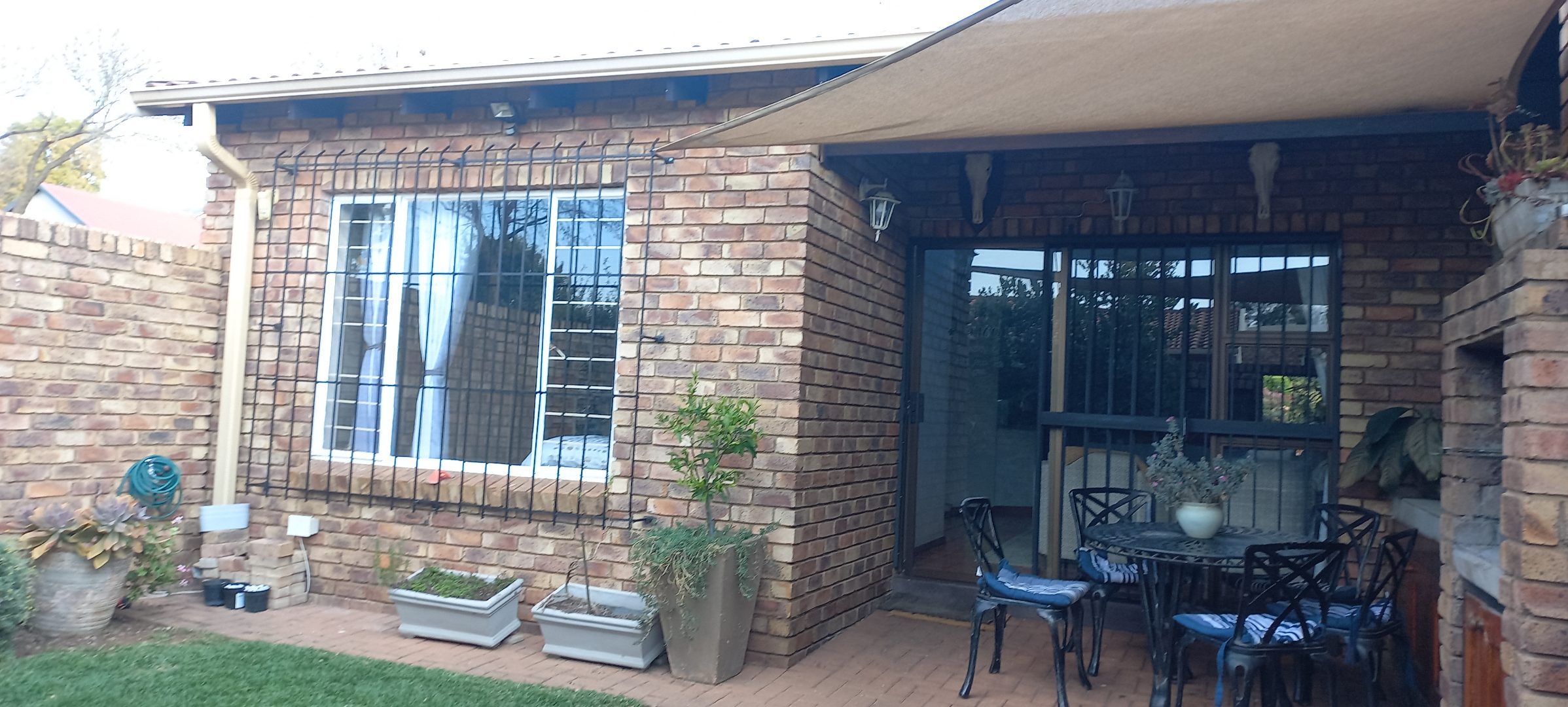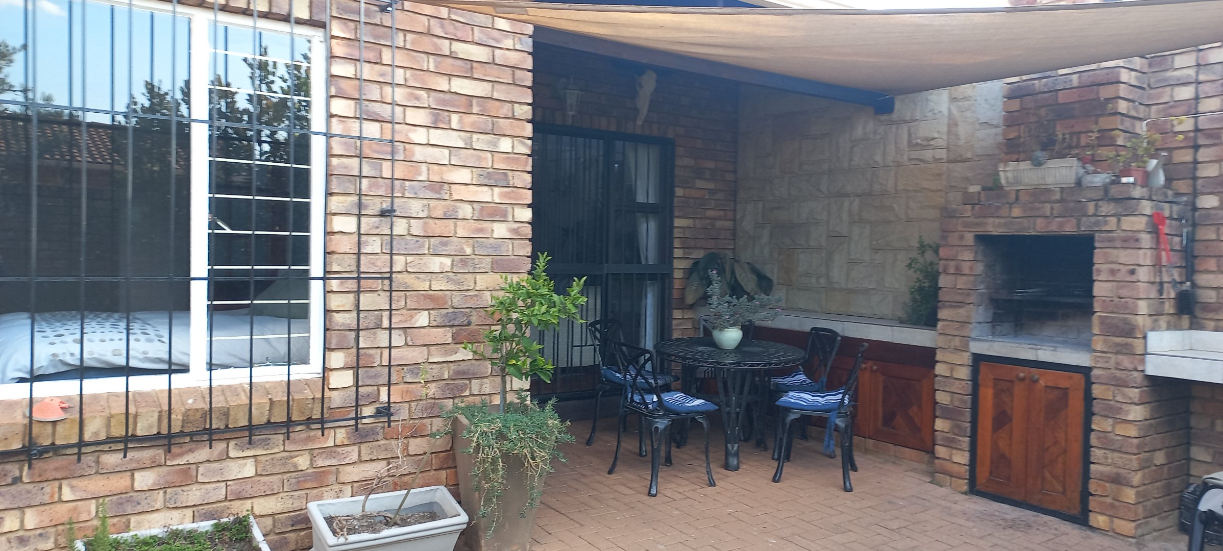 Stylishly finished simplex in security complex: This three bedroom, two bathroom (MES) and double auto garage unit offers many fine features such as a gas hob, remote fans/lights in all the bedrooms and a beautifully finished kitchen as are the bathrooms. The garden is lovingly cared for, and the braai area is covered with a stretch canopy - ideal for entertainment.