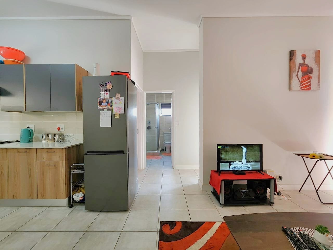 - The open-plan living and dining area flows into a modern kitchen styled with crisp, contemporary finishes for a clean, effortless feel.