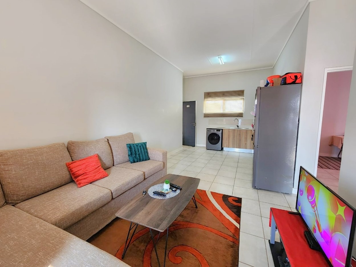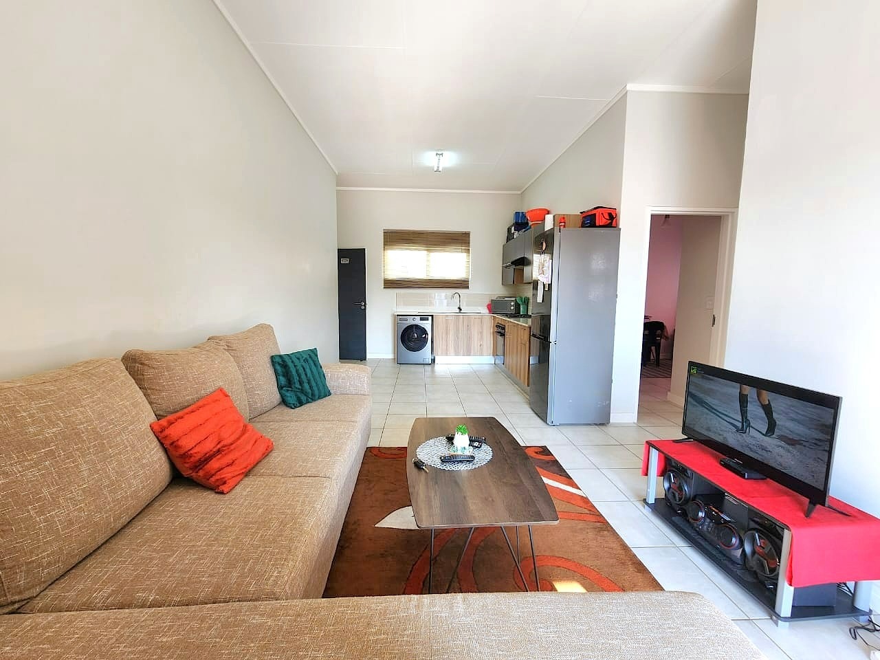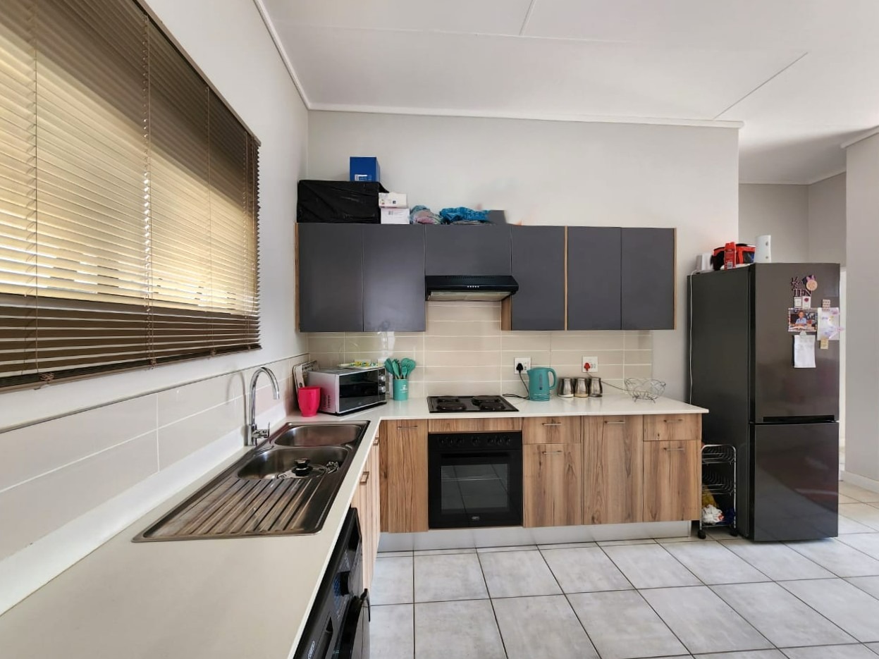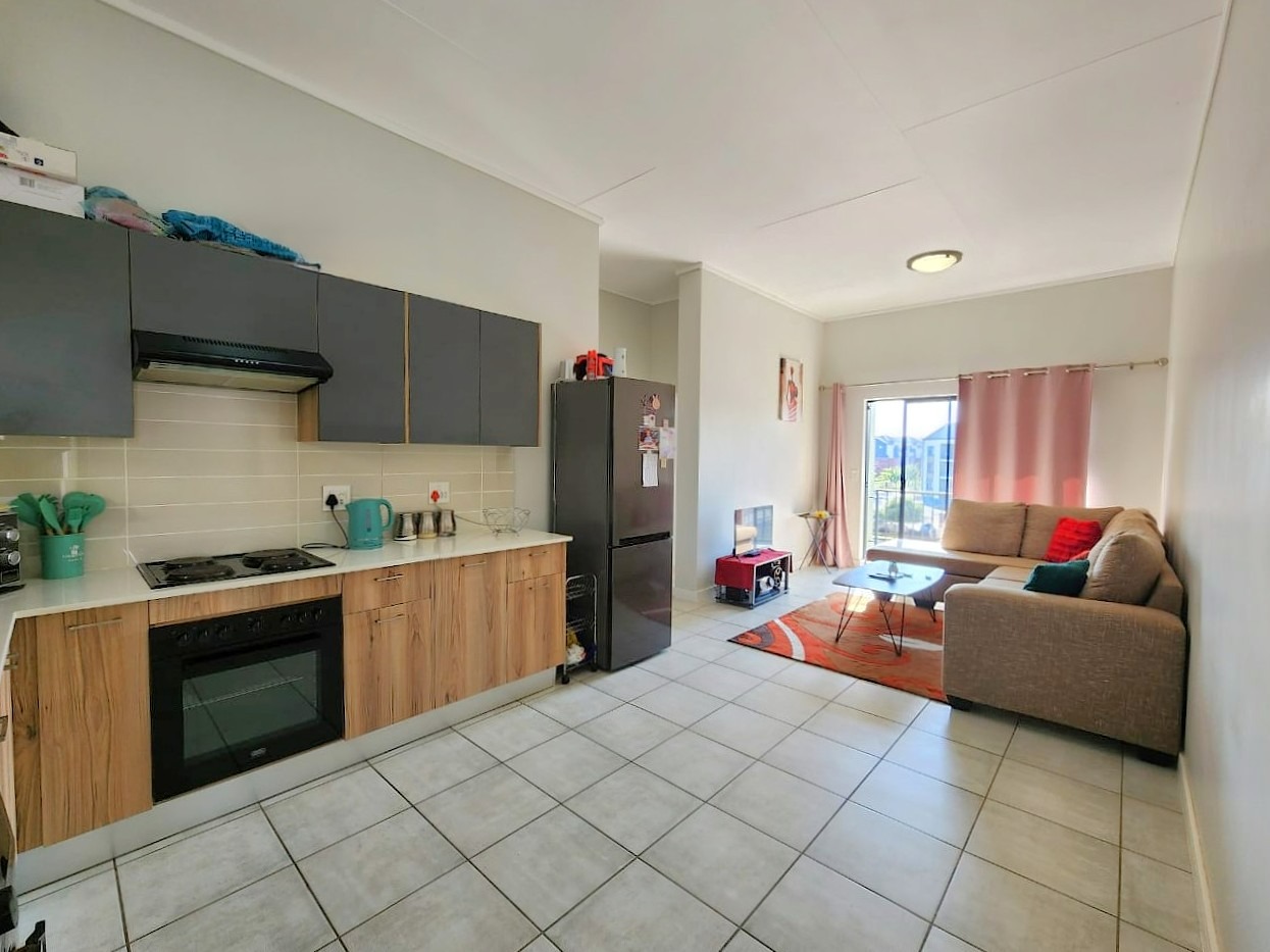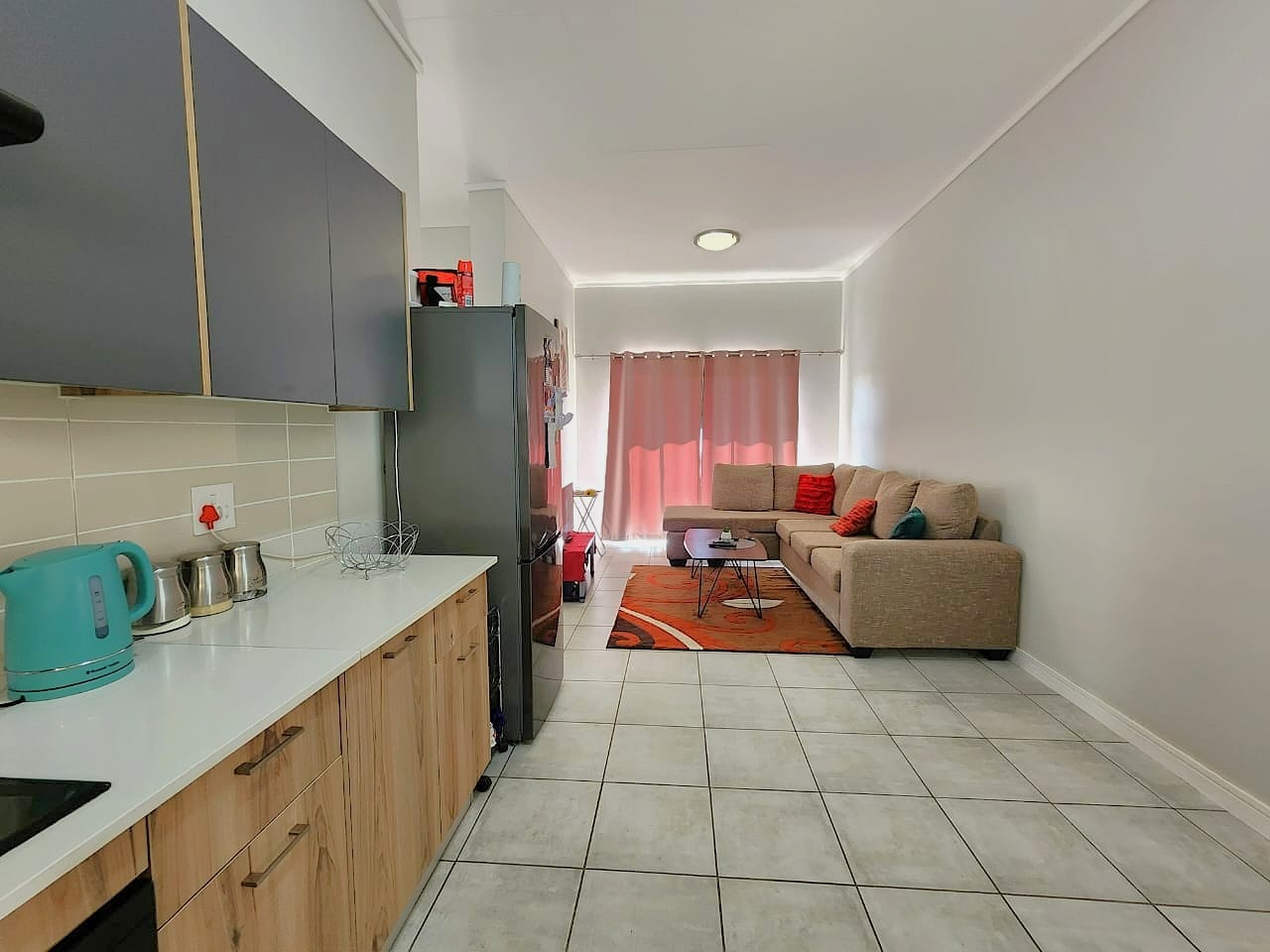 - The open-plan living and dining area flows into a modern kitchen styled with crisp, contemporary finishes for a clean, effortless feel.