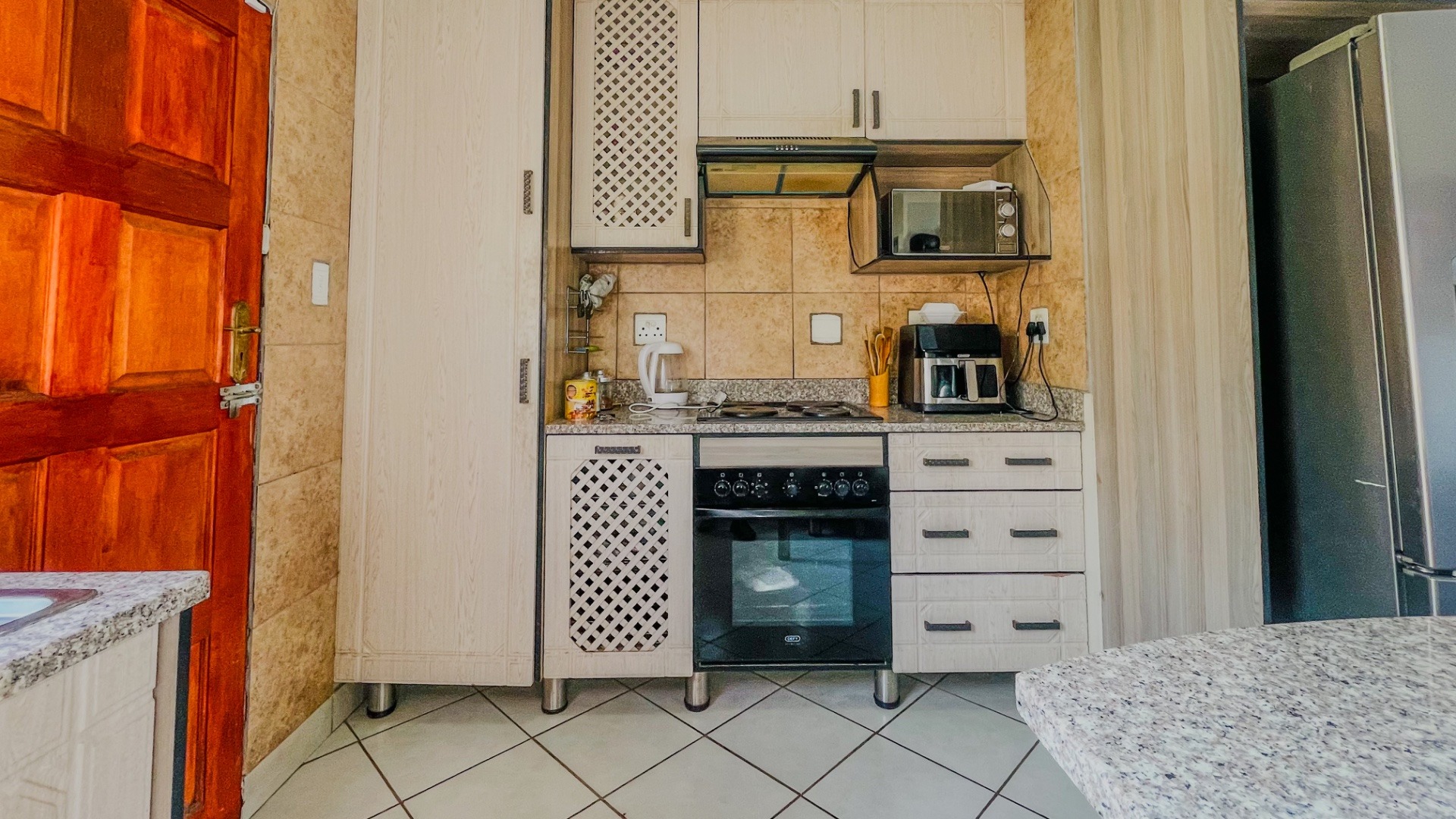 This compact two-bedroom, one-bathroom residence offers a functional living solution in Kirkney, Pretoria. Spanning 50.00 sqm, the interior features an open-plan lounge and kitchen area, designed for practical daily living. The kitchen is appointed with granite countertops, a tiled backsplash, and light-toned cabinetry, some featuring lattice details, alongside a built-in oven/stove and an integrated wine rack. A breakfast bar and double sink enhance its utility, while tiled flooring extends throughout for ease of maintenance. The property is situated on a 460.00 sqm erf, providing ample paved off-street parking for multiple vehicles, including a covered carport. Enhanced security measures are evident, featuring high perimeter walls, window bars, and a security gate, contributing to a secure environment. A solar water heater is installed, promoting energy efficiency. This property is ideally suited for individuals or small families seeking a low-maintenance rental in a well-established area. Its practical layout and robust security provisions offer a comfortable and secure lifestyle. Kirkney, located in Pretoria, South Africa, provides convenient access to local amenities and transport routes, making it a desirable residential location. Key Features: * Two Bedrooms, One Bathroom * Open-Plan Lounge and Kitchen * Granite Countertops & Built-in Oven/Stove * Tiled Flooring Throughout * Ample Paved Off-Street Parking * Covered Carport * Enhanced Security Features (Window bars, Security gate, High walls) * Solar Water Heater