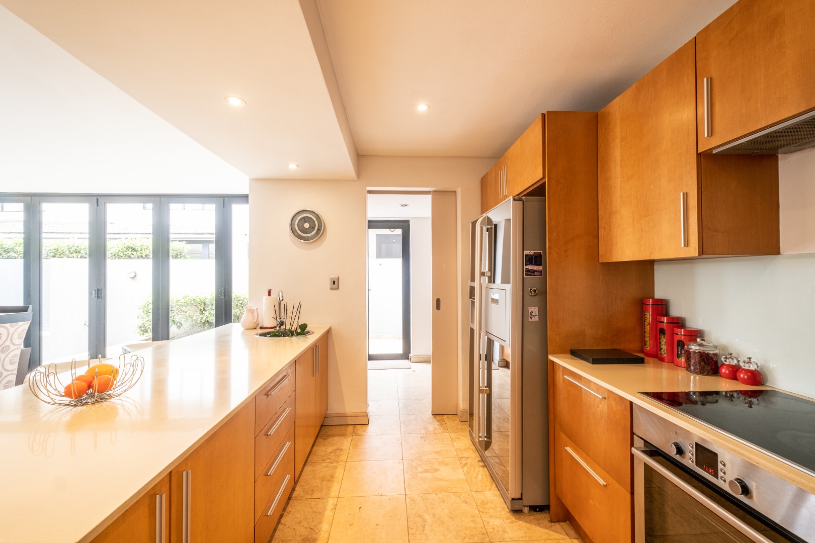 As you walk up through a large timber pivot door at the entrance you enter double volume entrance hall with a welcoming chandelier . A small sitting room is positioned below the stairs with kitchen and dinning room leading off of the hall. Caesar stone kitchen counter tops, a double door fridge and separate scullery that leads to a courtyard provides the ideal kitchen space.