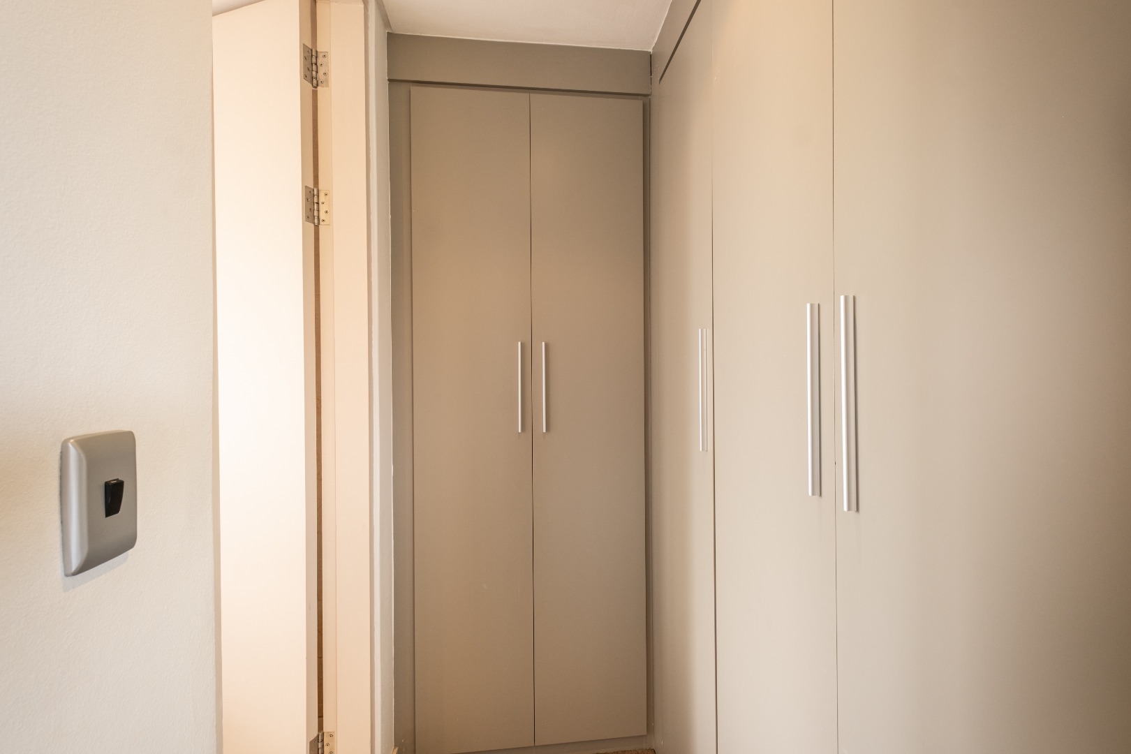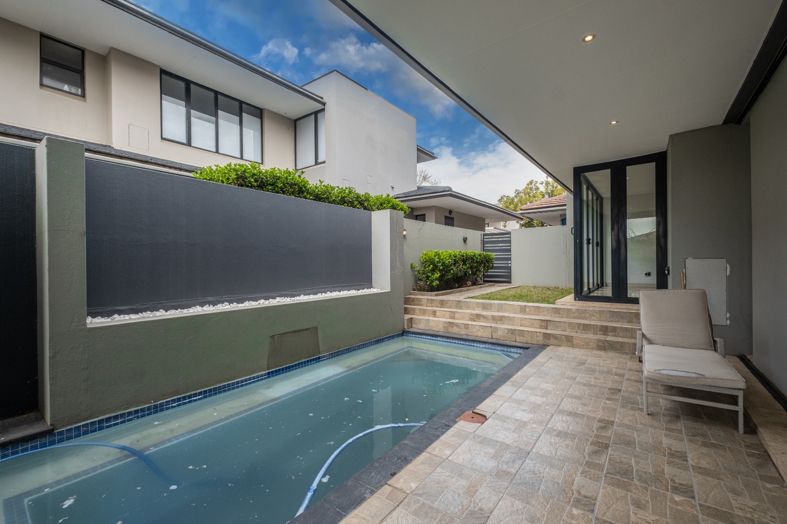 The patio consists of deck chairs, an outside lounge, dinning suite, built in braai, and of coarse, a crystal clear splash pool. A double garage to the front of the property houses a battery back up inverter system as well, meaning you never need to worry about load shedding in this home. A generator is also provided. Uncapped wifi is included in the rent and the north facing garden is maintained by the estate.