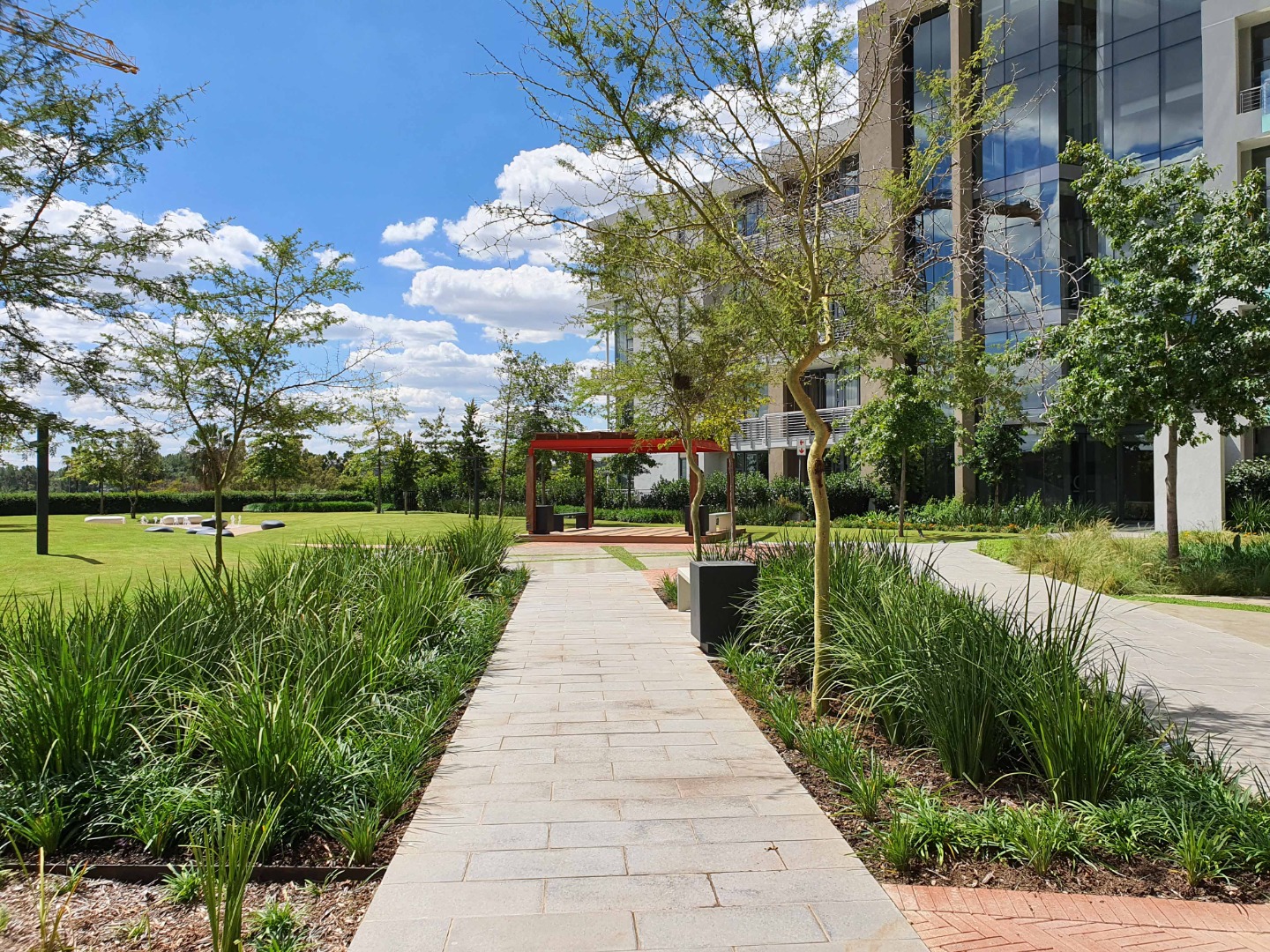 - Beautiful communal gardens with walkways and impressive sculptures