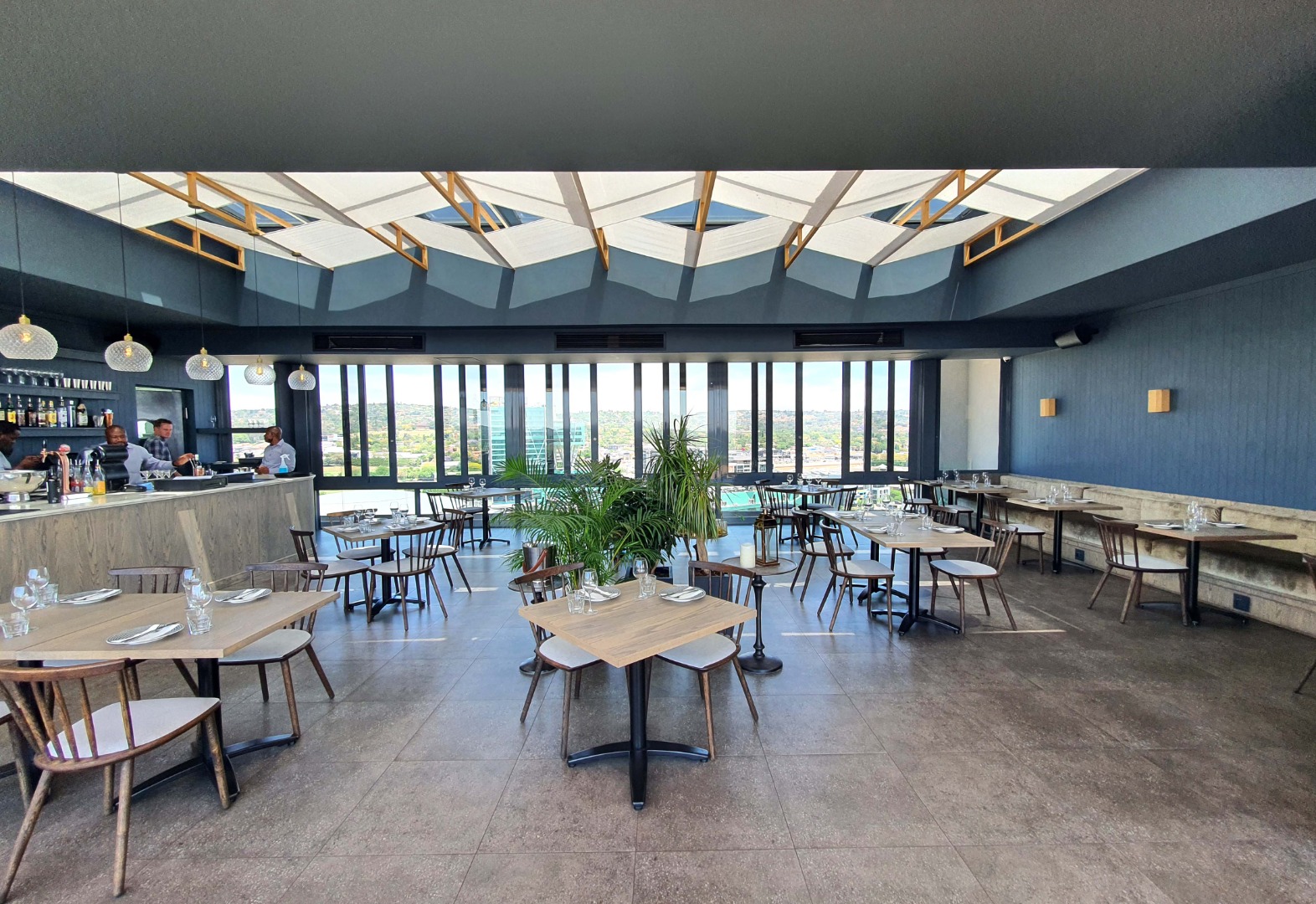 Rooftop swimming pool and restaurant.