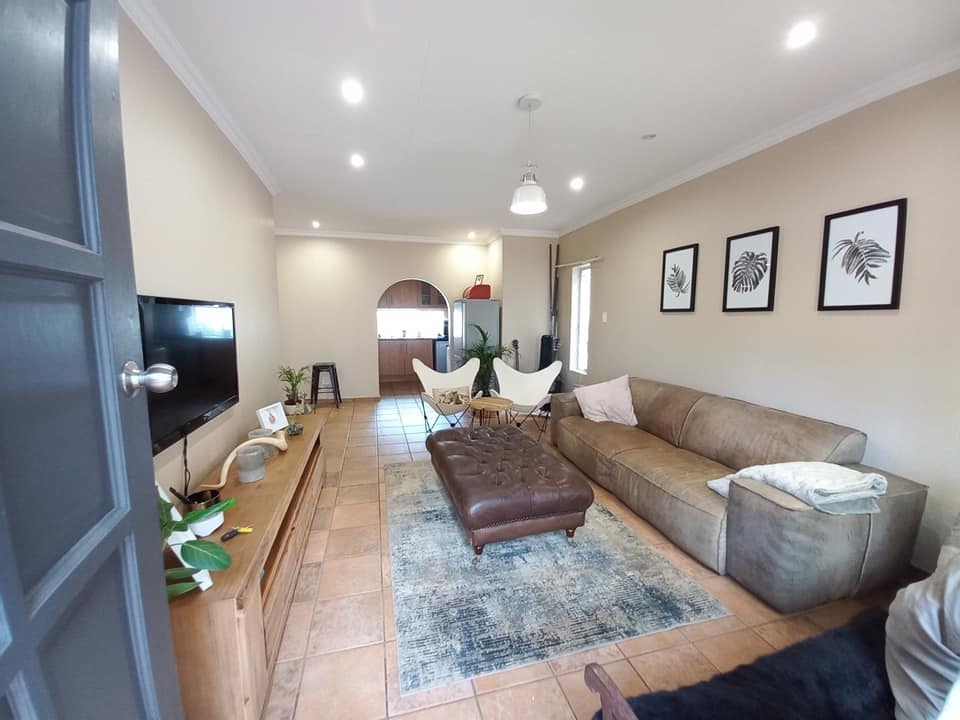 Spanning 100 square meters of floor space on a 500 square meter erf, this property offers a practical and well-appointed layout. The interior features durable tiled flooring throughout, complemented by neutral walls. The modern kitchen is a highlight, equipped with light wood cabinetry, sleek black granite countertops, gas hob with extractor and undrr cointer oven. An open-plan lounge and dining area provide ample space for relaxation and entertaining.