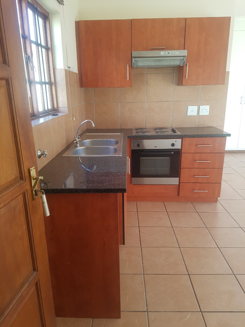 Looking for a comfy and secure spot to call home in Pretoria? Check out this lovely 1-bedroom, 1-bathroom rental unit nestled in a well-kept security complex in Olympus AH. It’s perfect for a single professional or a couple seeking a convenient and low-maintenance lifestyle. Step inside and you'll find a compact kitchen that's ready for your culinary adventures. It comes with light wooden cabinetry, dark granite-look countertops, a built-in electric oven, hob, and an extractor fan, plus a handy double sink. The tiled floors throughout the unit make for easy cleaning, and the neutral walls are a blank canvas for your personal touch. The main living area gets plenty of natural light, creating a bright and inviting atmosphere. Your bedroom is a cozy retreat, featuring a built-in white wardrobe with both shelving and hanging space, so you’ll have no trouble keeping things tidy. The bathroom is functional and neat, offering a white bathtub and tiled finishes for a fresh feel. Outside, the property boasts a well-maintained exterior with a modern architectural style, surrounded by green lawns and young trees, giving it a pleasant residential vibe. Parking is sorted with your very own garage and an additional parking space, making coming and going a breeze. Living in a gated community and security complex means you can enjoy peace of mind, knowing you're in a safe environment. Olympus AH is a quiet and pleasant residential area in Pretoria, offering a relaxed suburban feel while still being conveniently located. Key Features: * 1 Bedroom, 1 Bathroom (ensuite) * Compact Kitchen with built-in oven, hob & extractor * Built-in wardrobe for ample storage * 1 Garage and 1 additional parking space * Located within a secure, gated community * Well-maintained exterior and grounds * Tiled flooring throughout for easy upkeep * Plenty of natural light
