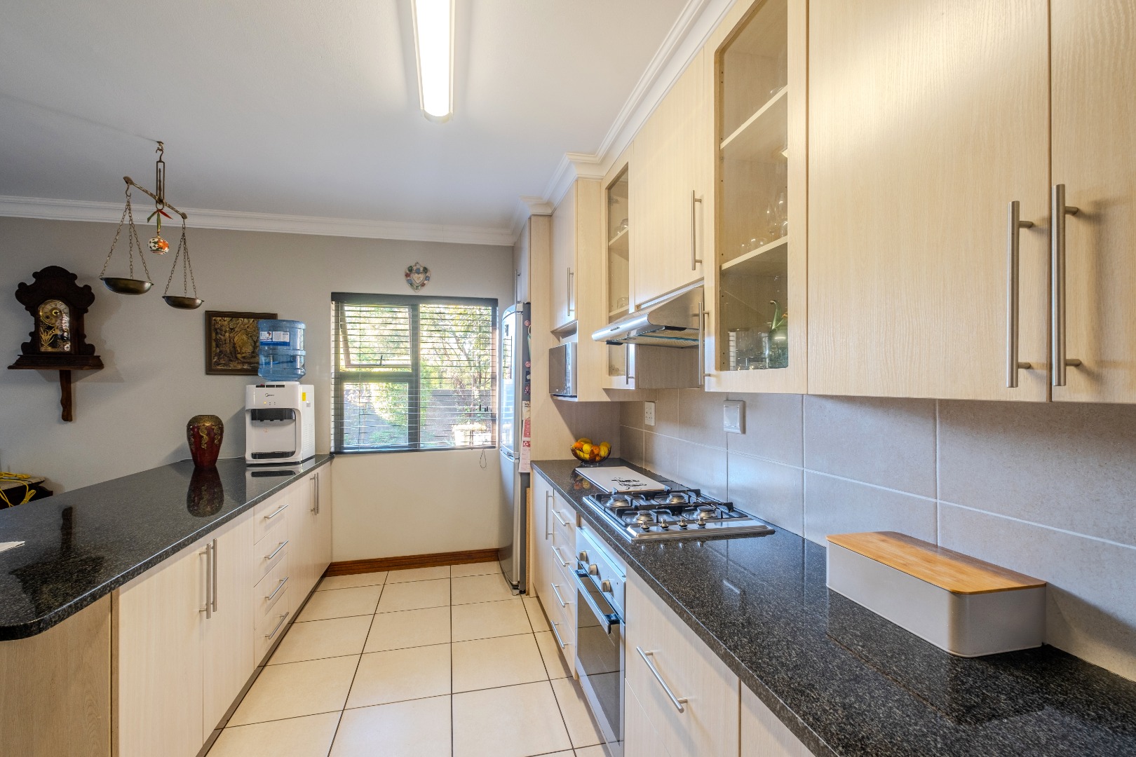 The kitchen features a gas oven and electric oven plus granite finishes.