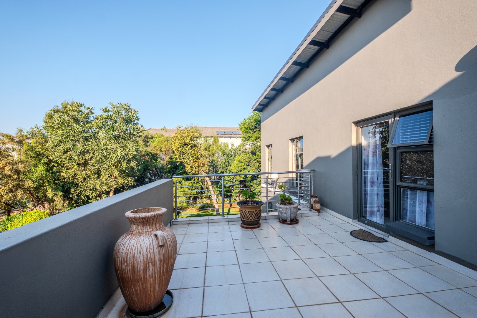Plaster home with aluminium frame windows and doors.