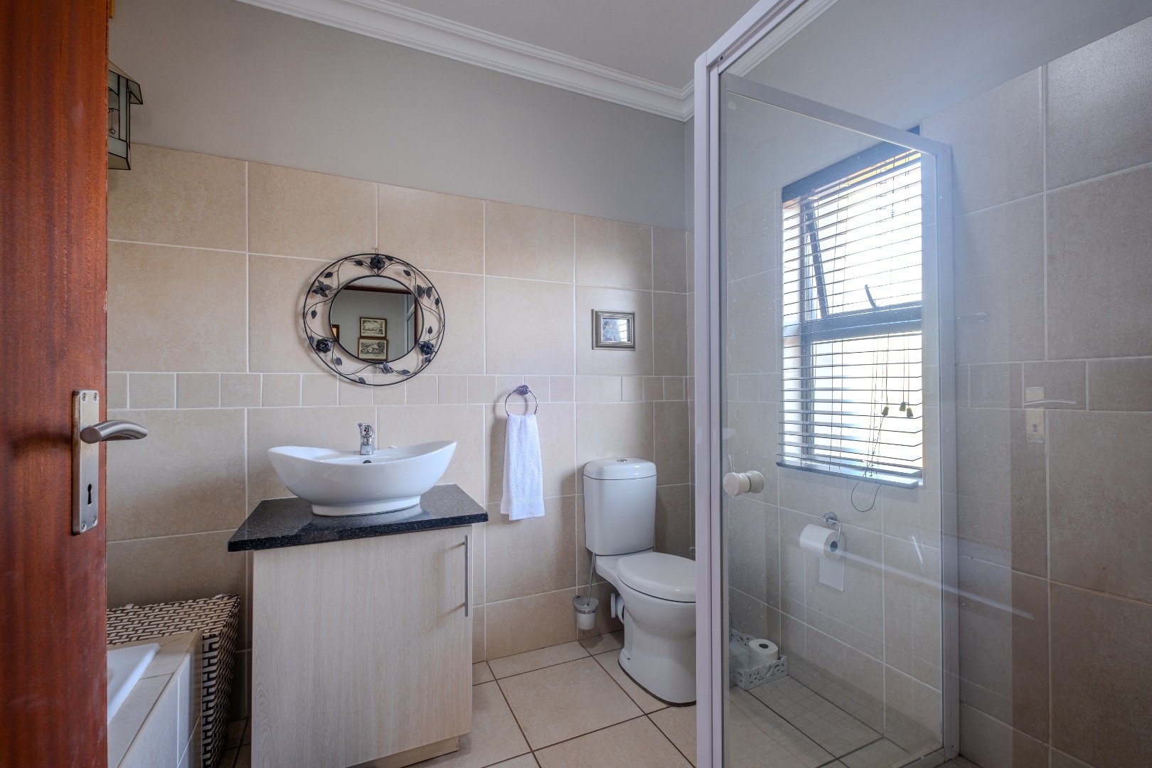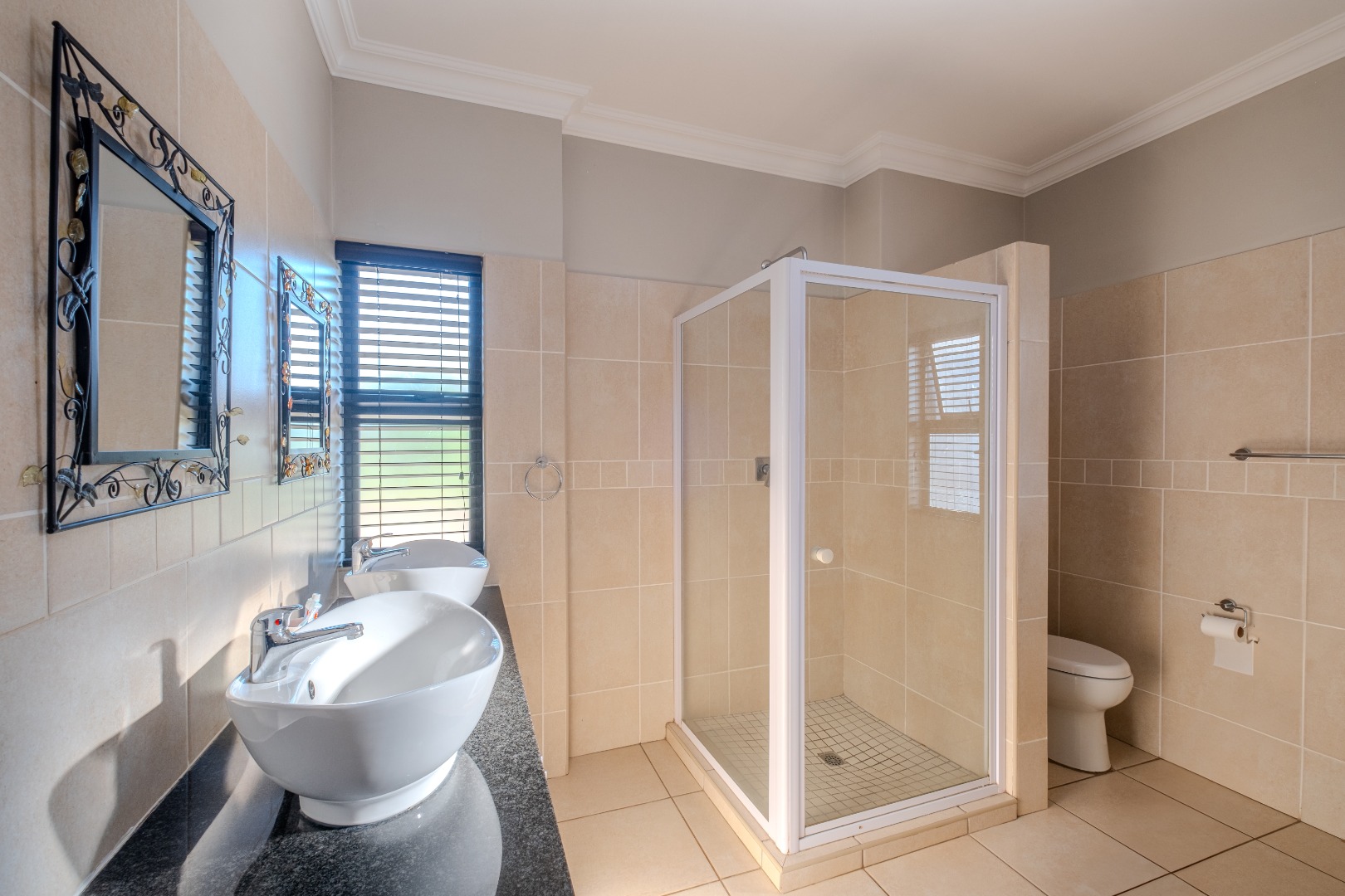 Main bedroom spacious with full en-suite bathroom (including double basins) plus a balcony with view.