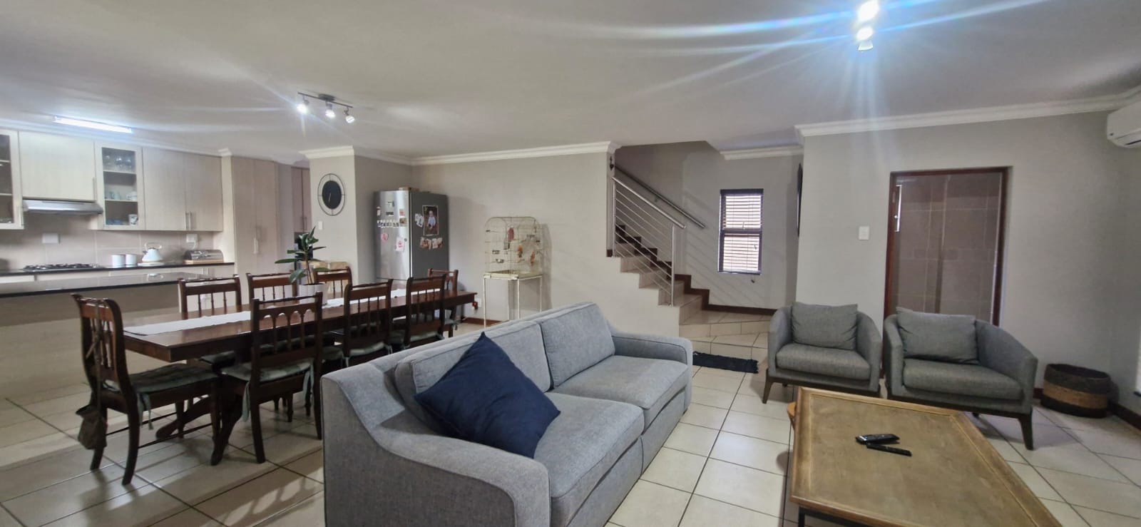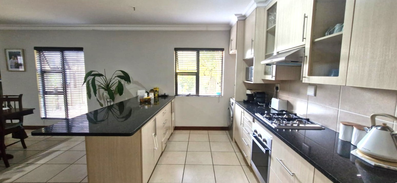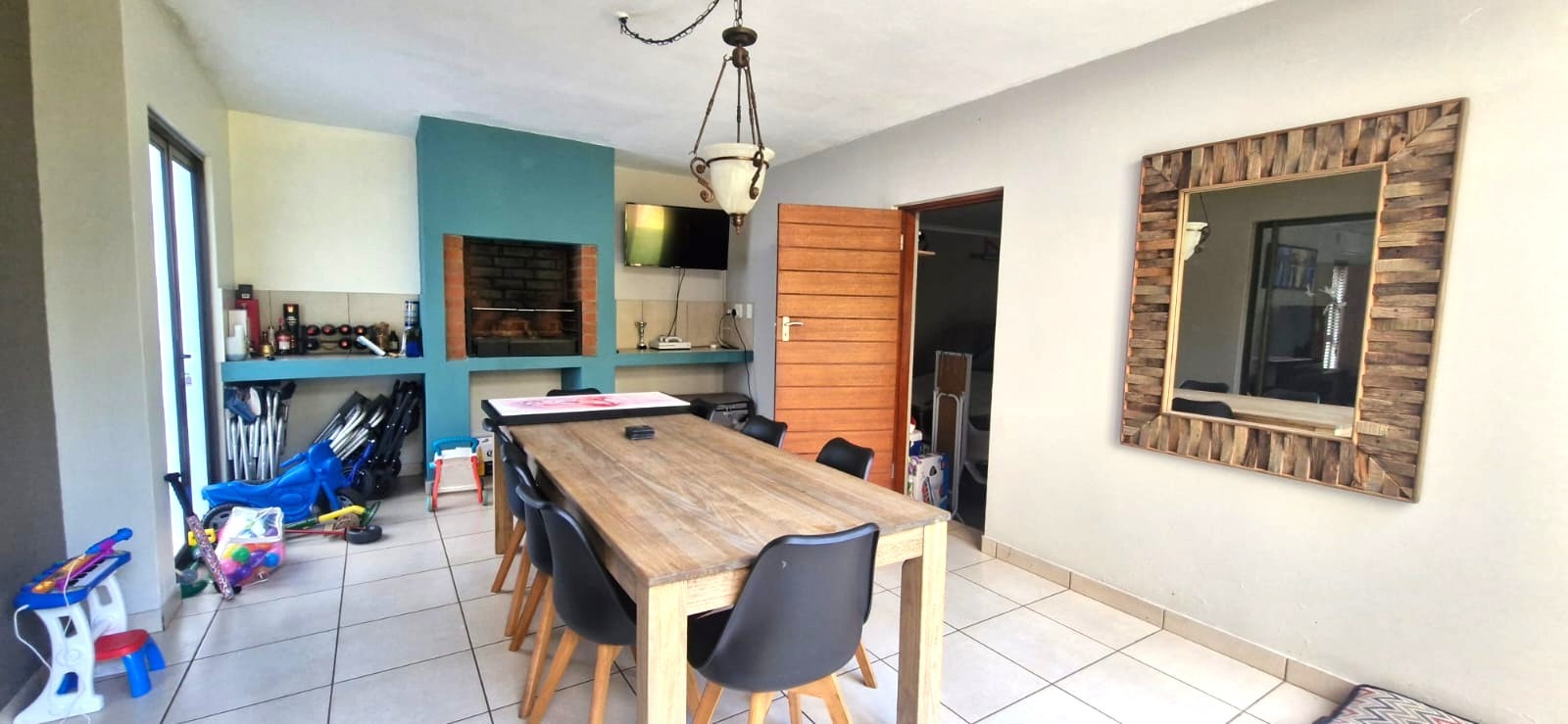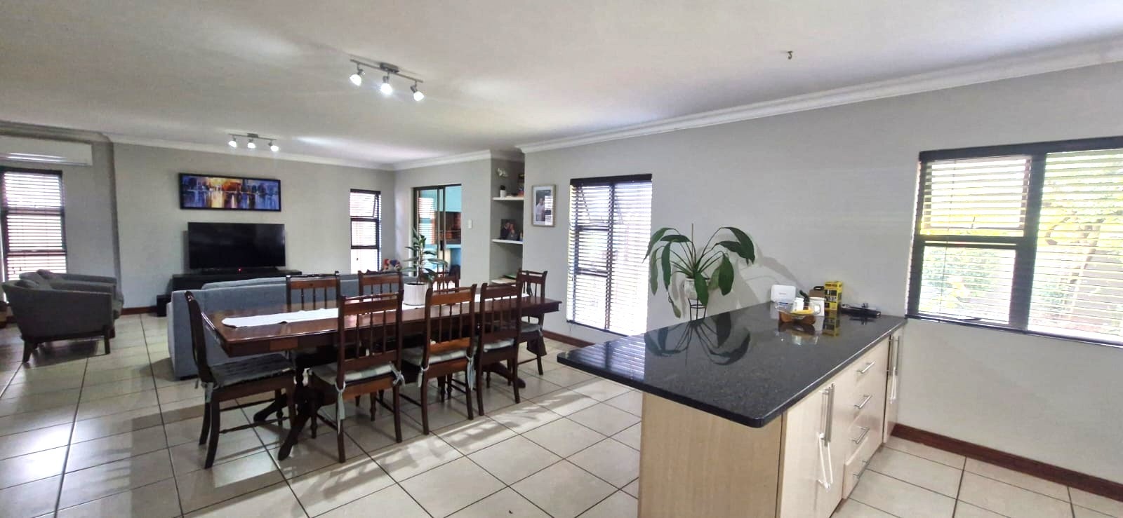 Open-plan and airy flowing living areas include a lounge (with aircon), dining area, kitchen with separate scullery and braai room that can serve as a play room for children as well - all leading out to an established garden by means of aluminium stack doors. Guest toilet as well.