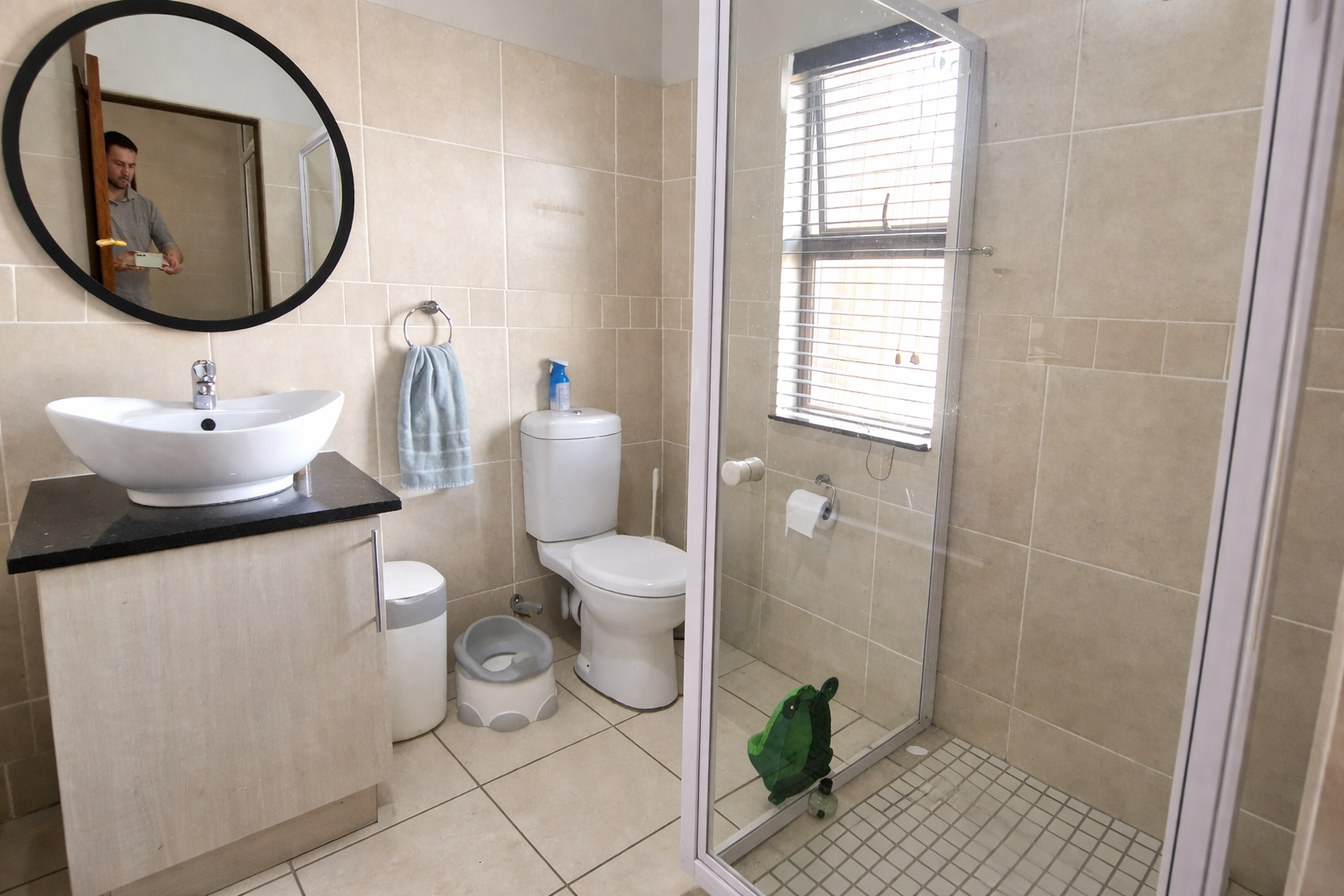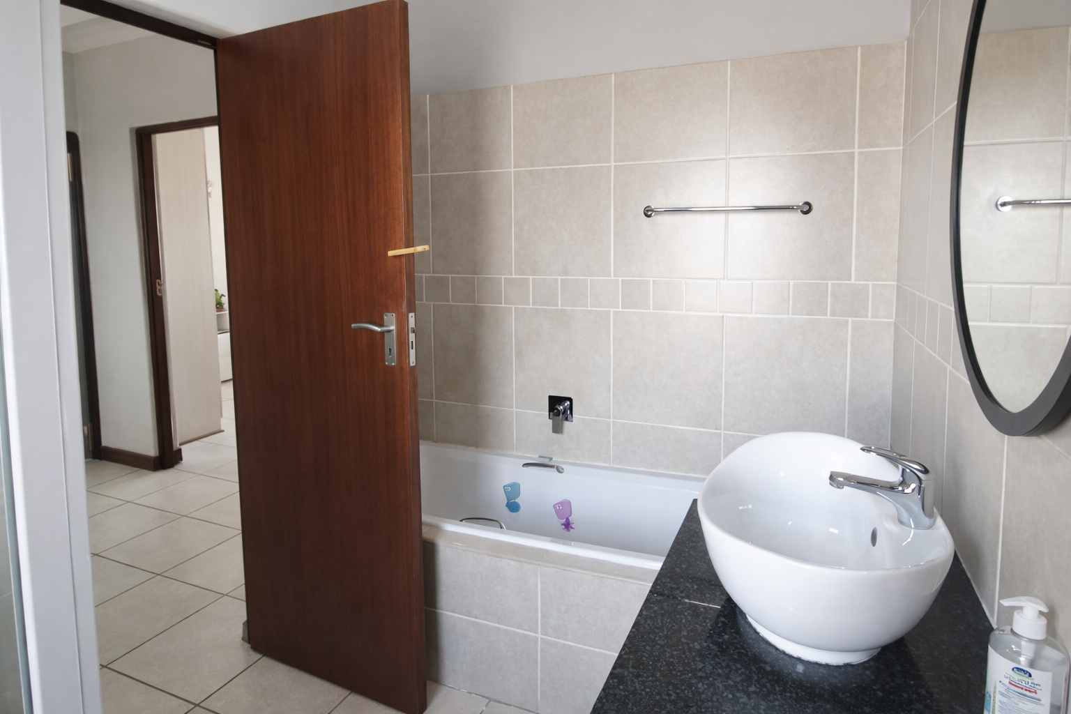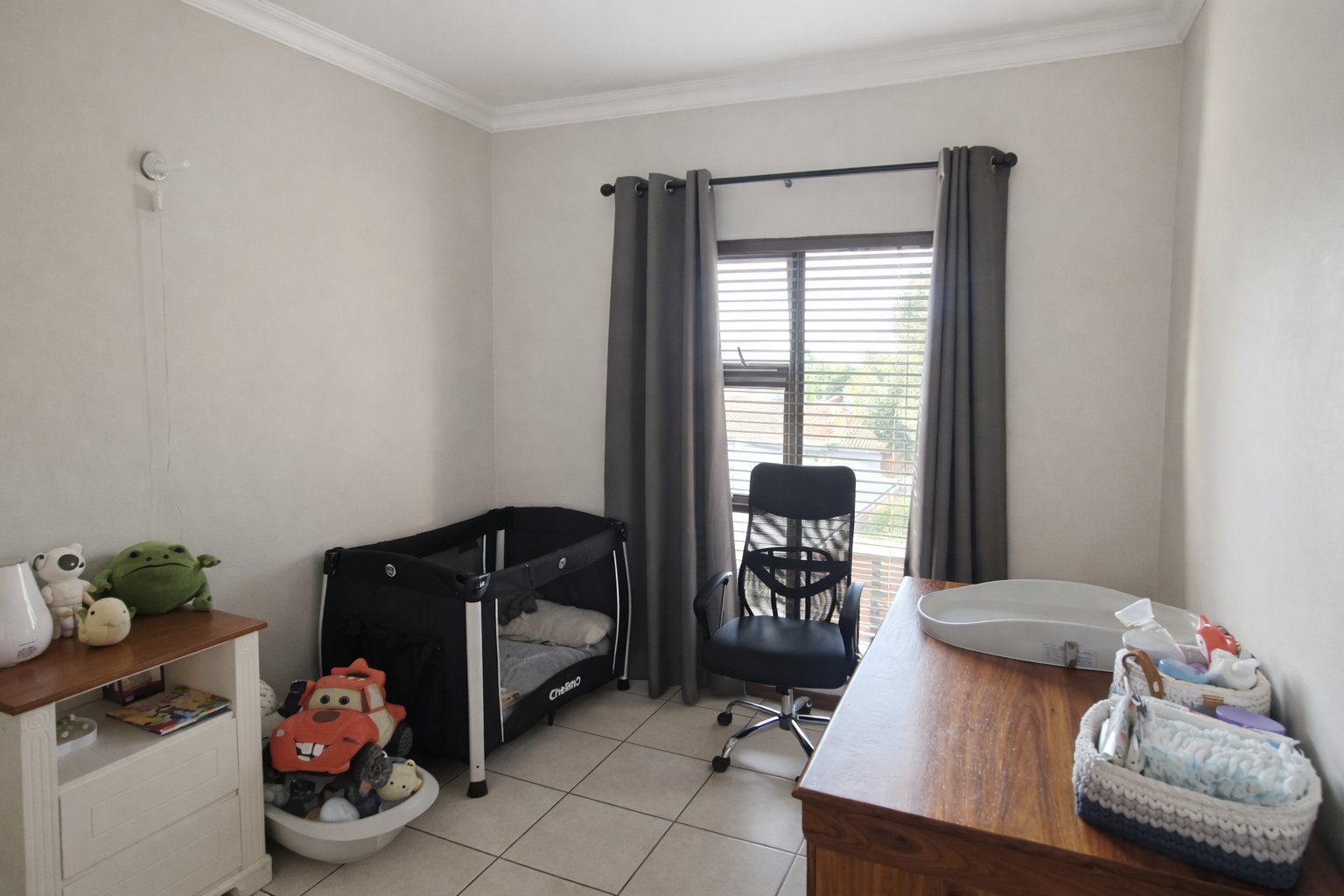Open-plan and airy flowing living areas include a lounge (with aircon), dining area, kitchen with separate scullery and braai room that can serve as a play room for children as well - all leading out to an established garden by means of aluminium stack doors. Guest toilet as well.