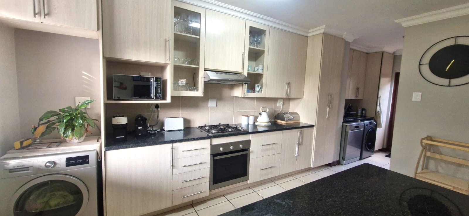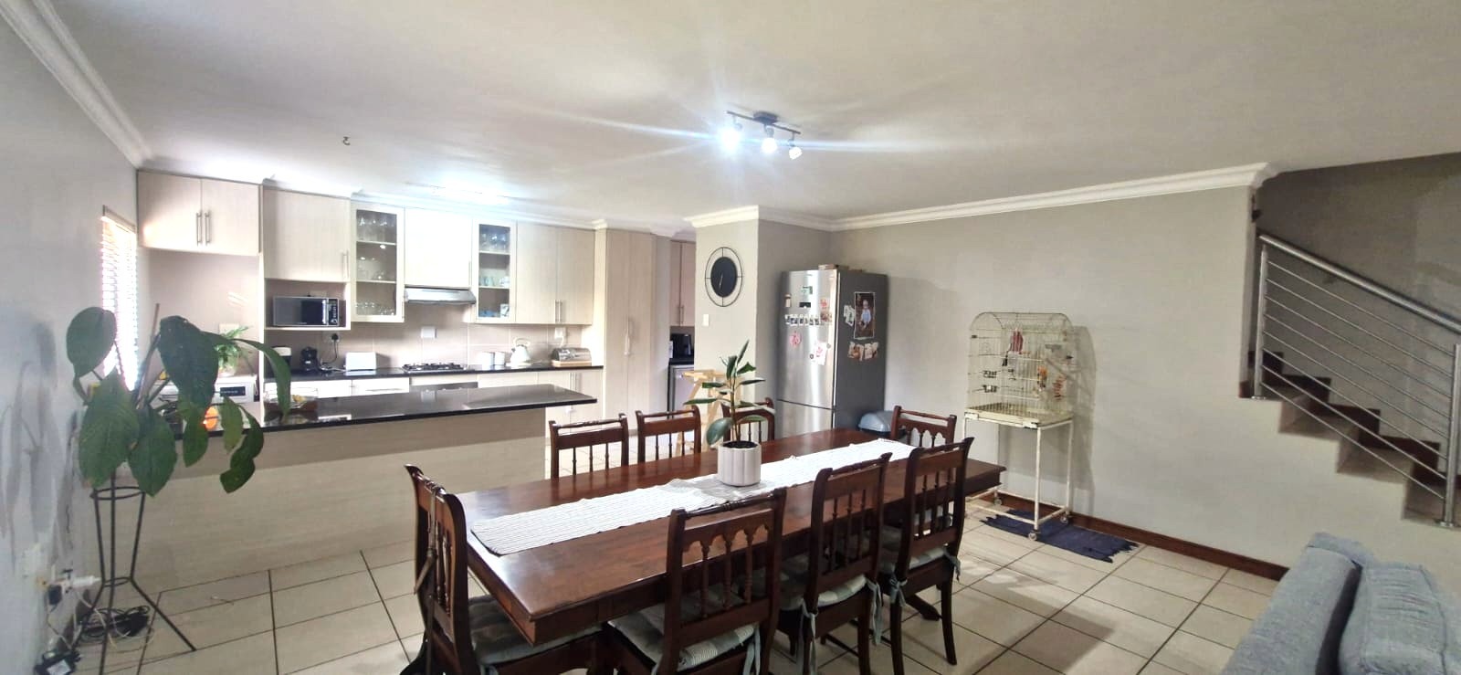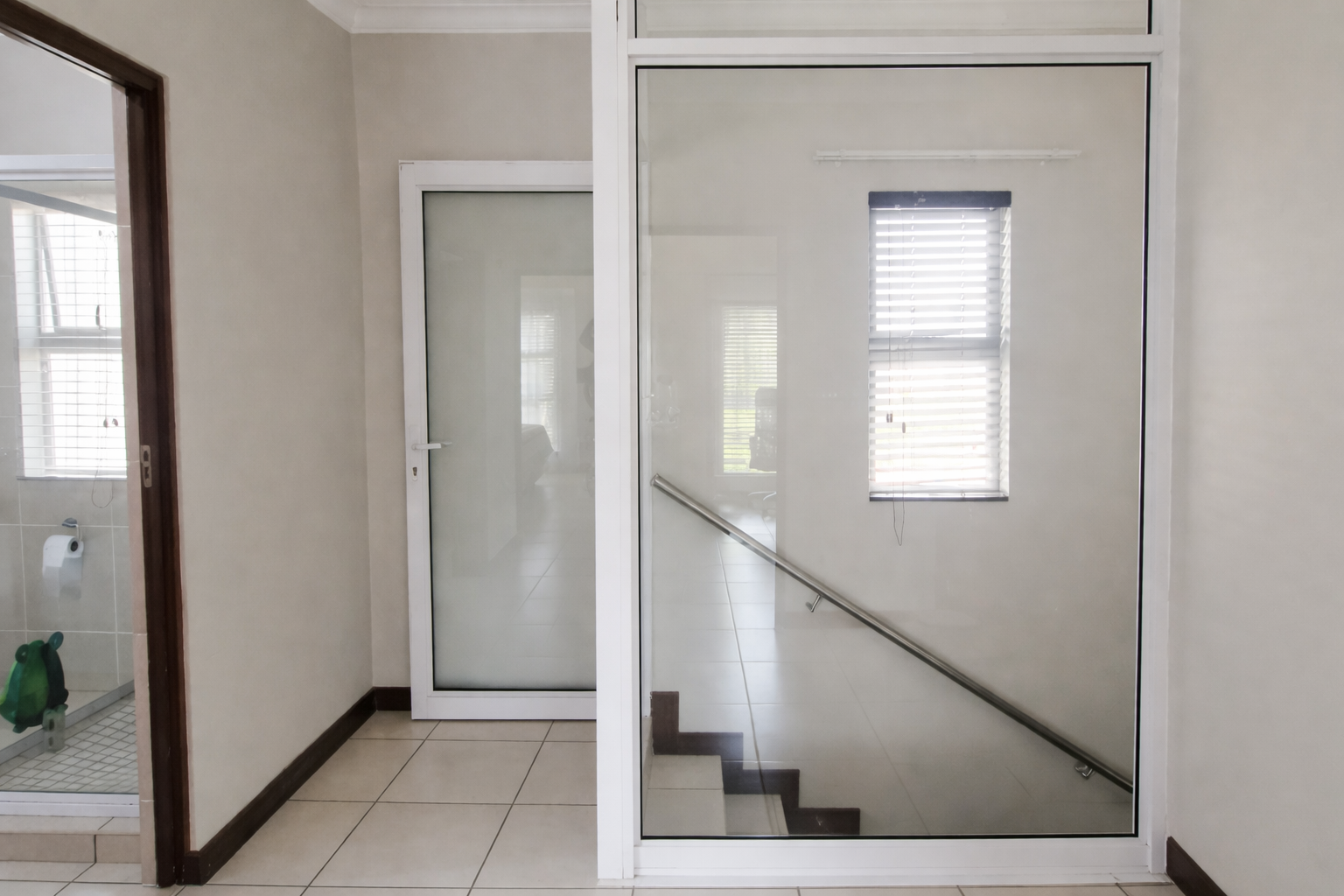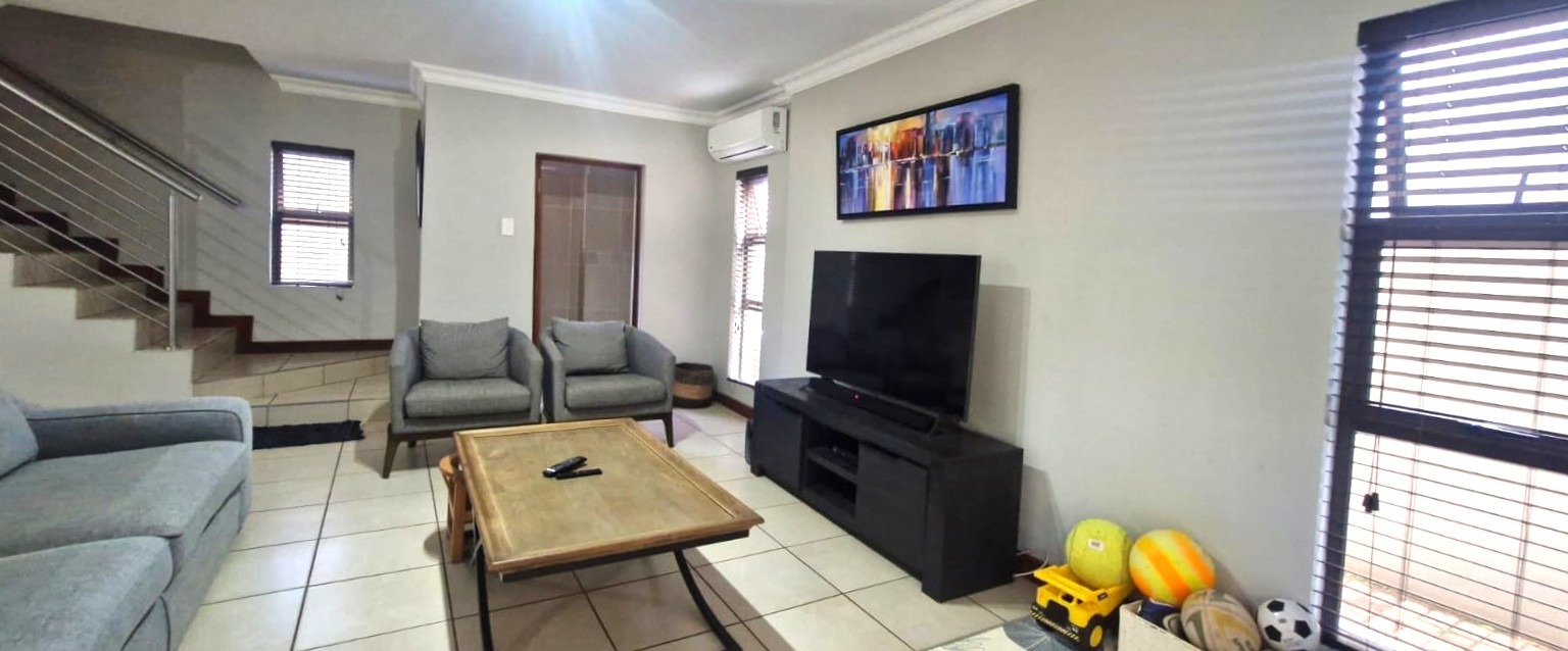 Open-plan and airy flowing living areas include a lounge (with aircon), dining area, kitchen with separate scullery and braai room that can serve as a play room for children as well - all leading out to an established garden by means of aluminium stack doors. Guest toilet as well.