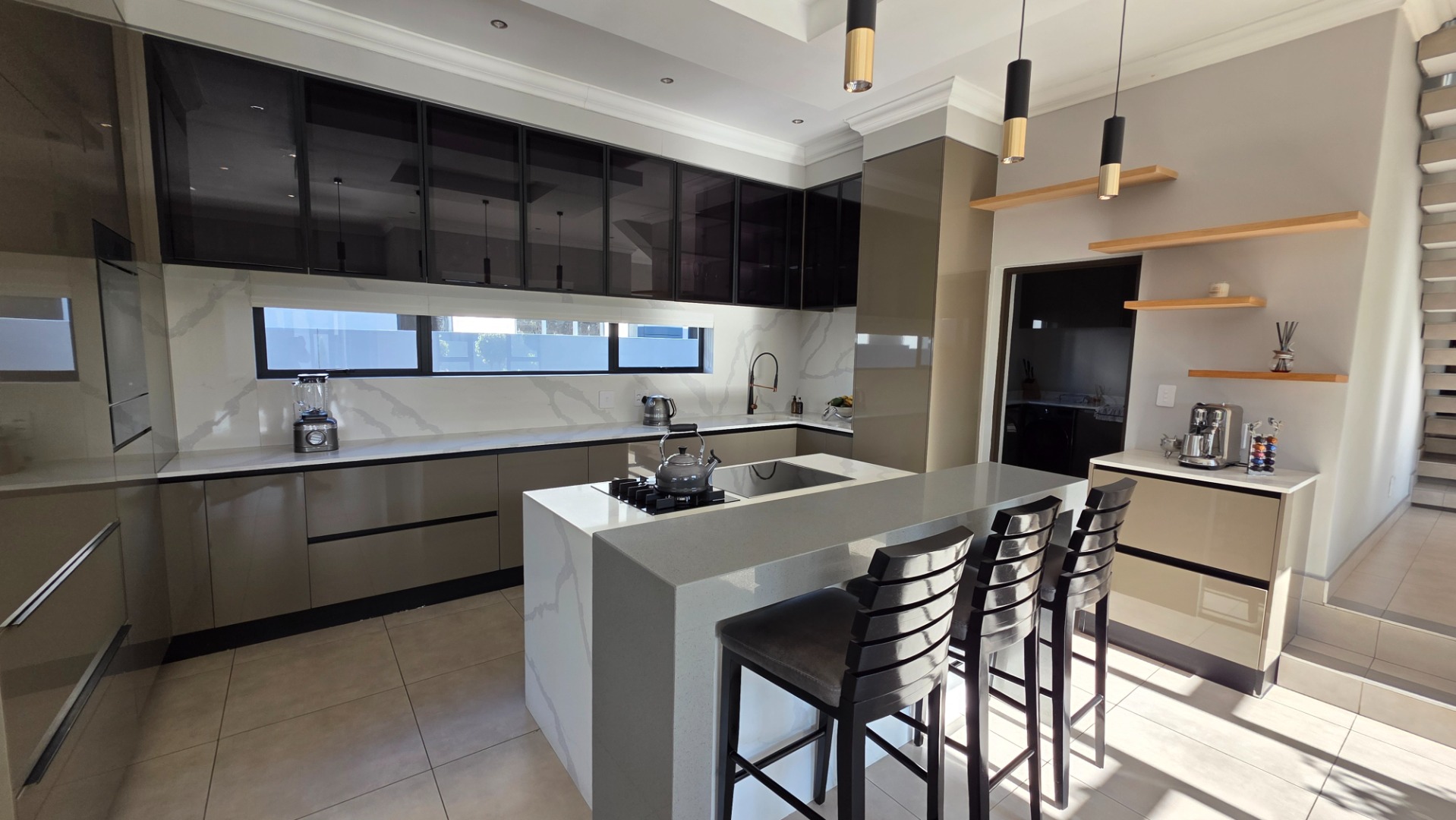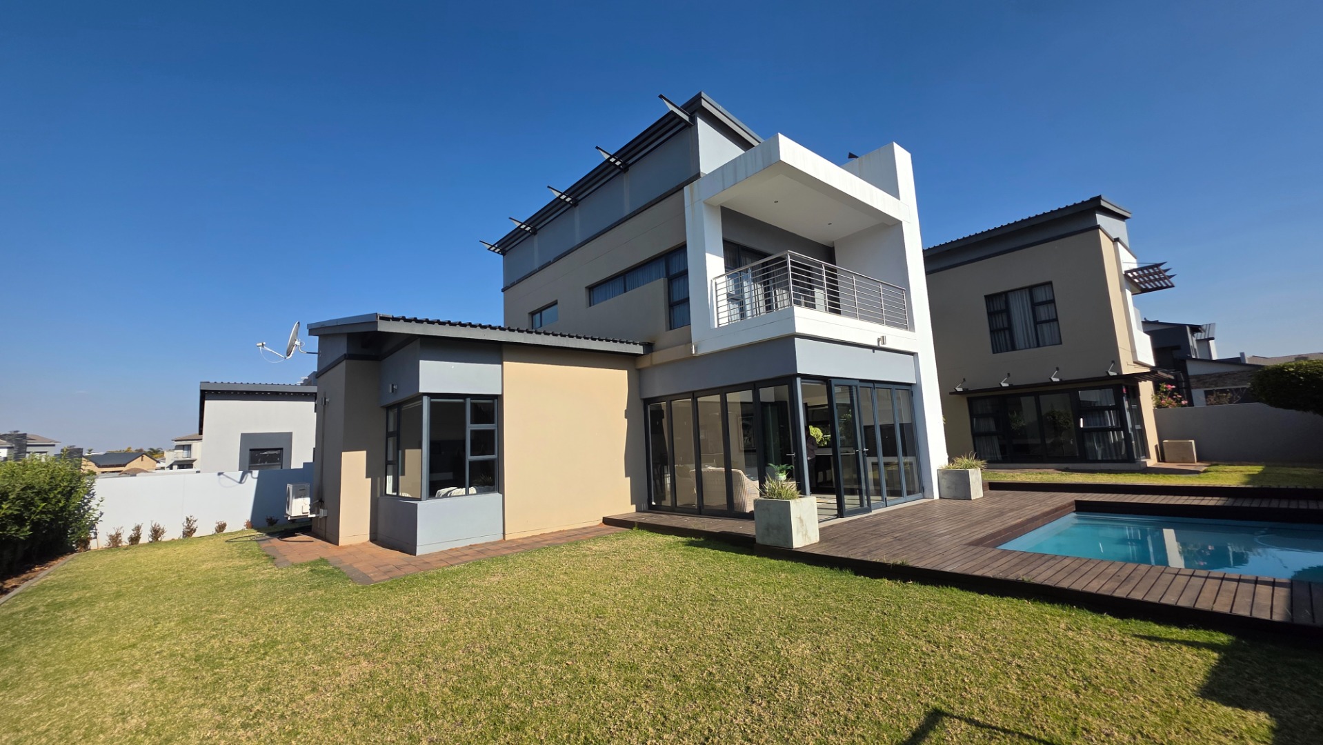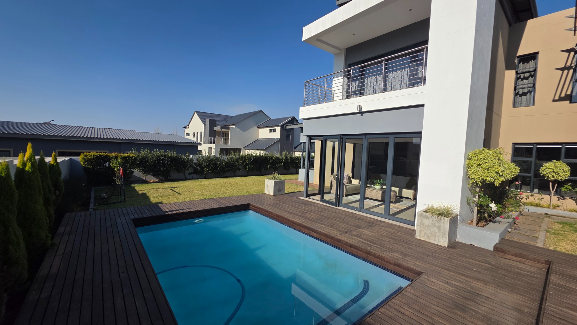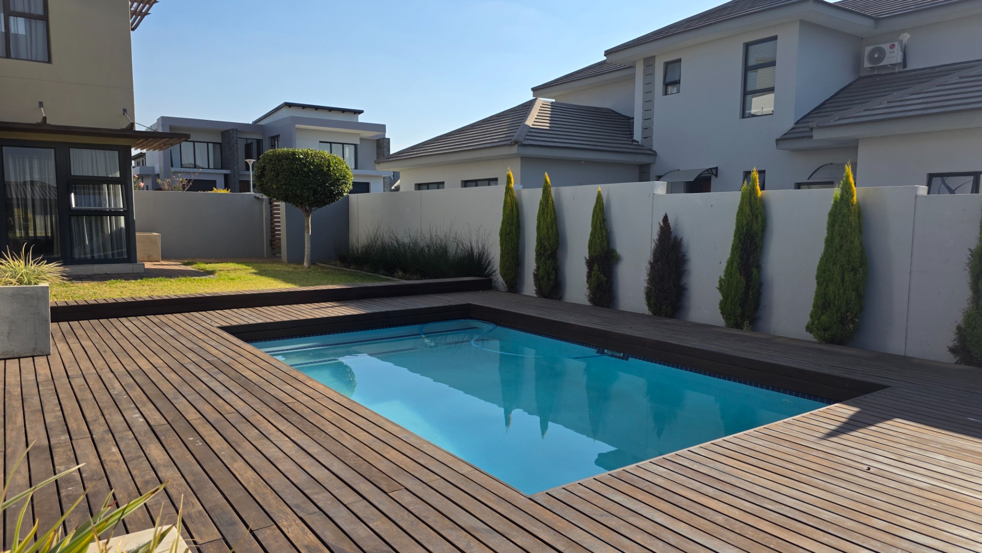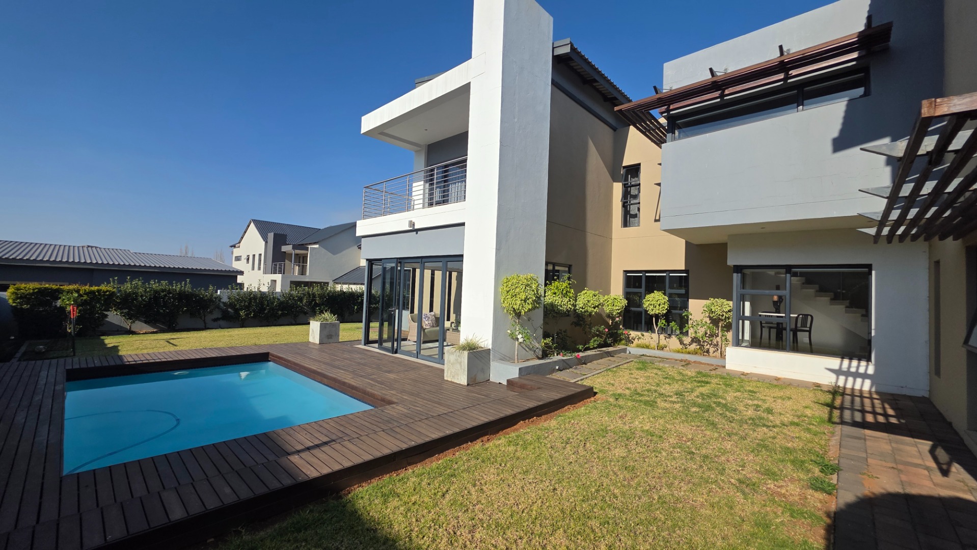 Experience unparalleled luxury and sophisticated design in this stunning 4-bedroom, 4-bathroom family home, perfectly situated in the highly sought-after Six Fountains Residential Estate in Pretoria East. Upon entering, you are greeted by bright, open-plan living spaces that flow seamlessly throughout the ground floor. The heart of the home is a gourmet kitchen, featuring sleek cabinetry and a large centre island, which integrates effortlessly with the dining and living zones. This sense of openness is enhanced by stacking doors that lead to a magnificent enclosed entertainment patio, complete with a built-in braai for year-round hosting. Upstairs, a stylish pajama lounge provides a private and comfortable retreat for the family. The residence boasts four generously sized bedrooms, each offering a tranquil escape, complemented by four spa-like modern bathrooms featuring premium fixtures such as a freestanding tub and spacious walk-in showers. Outside, the property transforms into a private oasis with a sparkling swimming pool surrounded by a modern wooden deck and a beautifully manicured garden. Complete with a double automated garage and the exceptional 24-hour security of Six Fountains Estate, this property offers a lifestyle of comfort, elegance, and peace of mind. To make this incredible property your new home, contact us today to schedule your exclusive viewing.