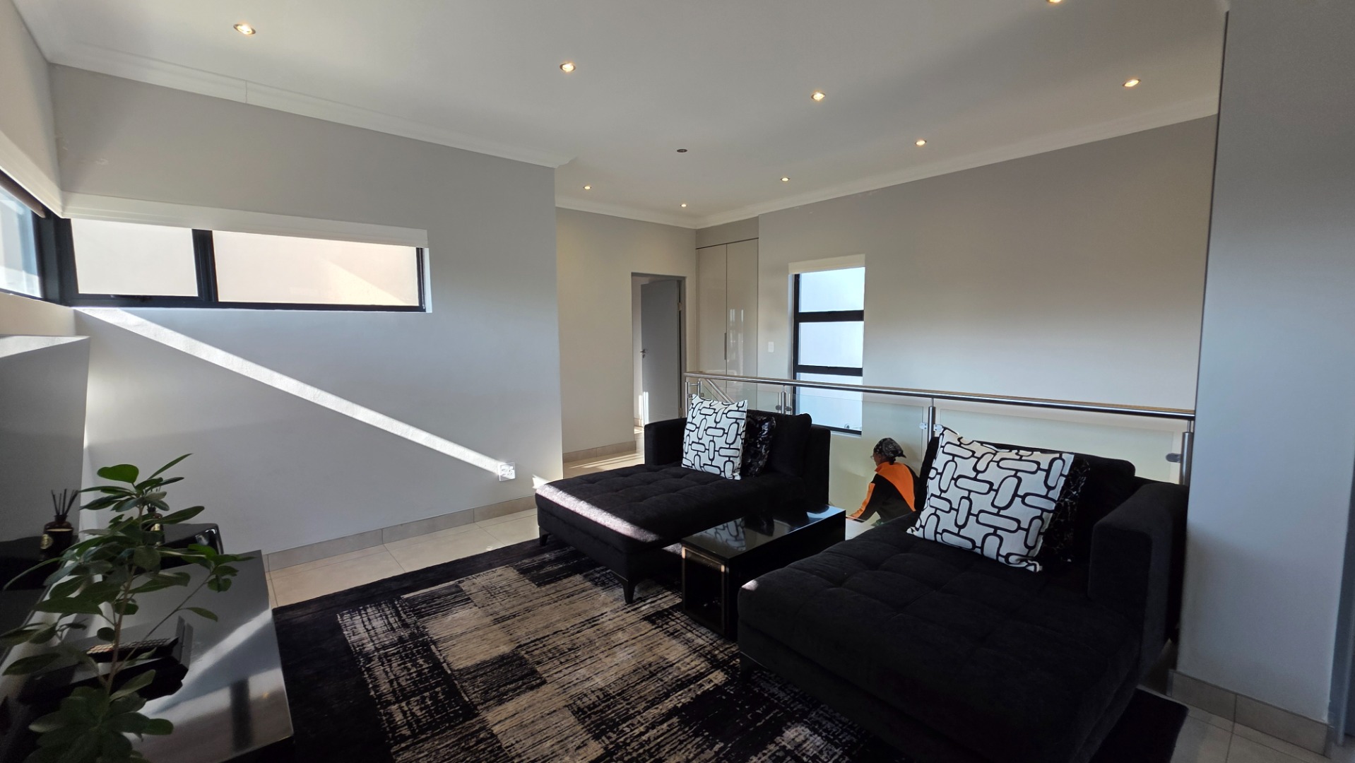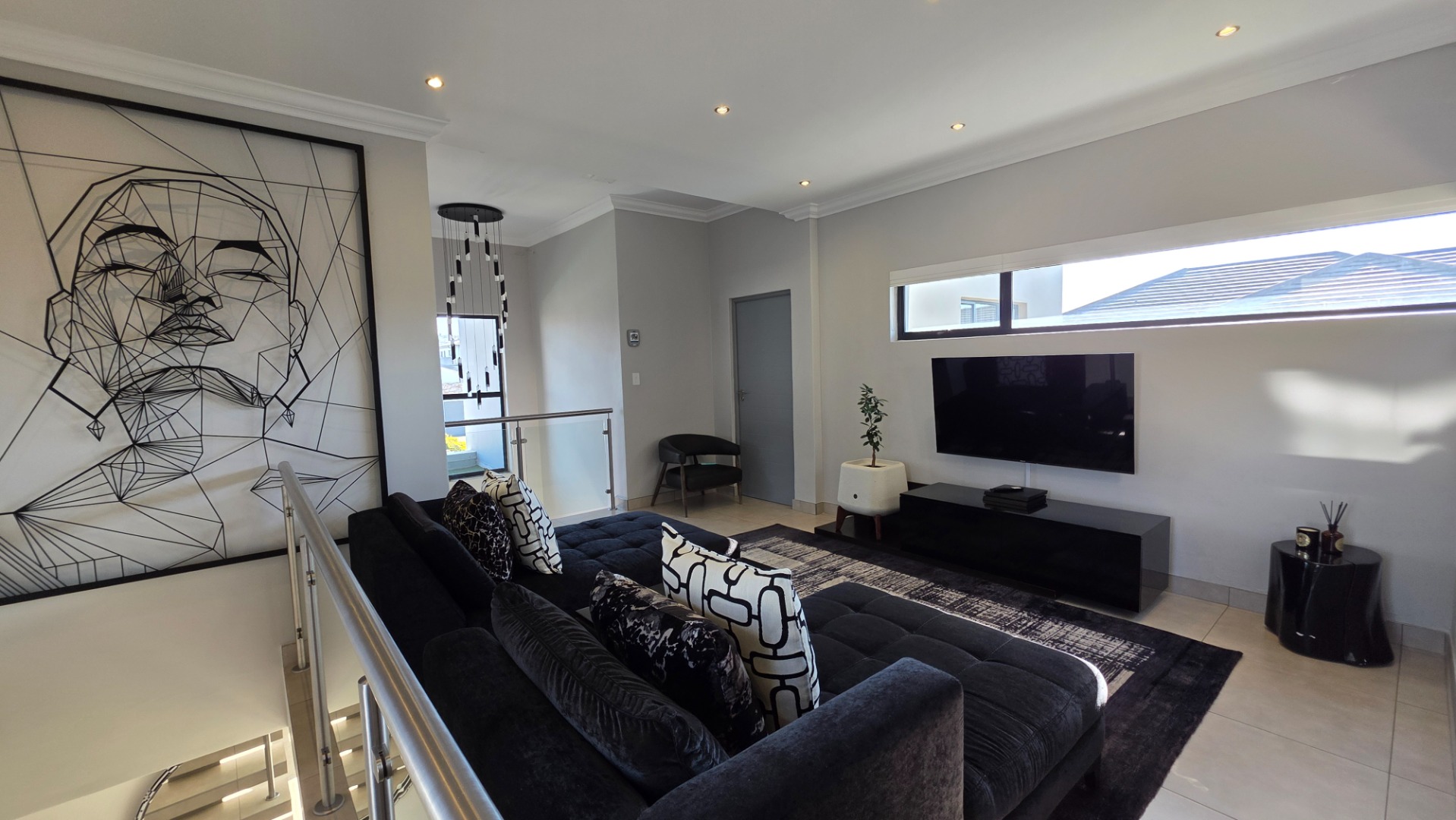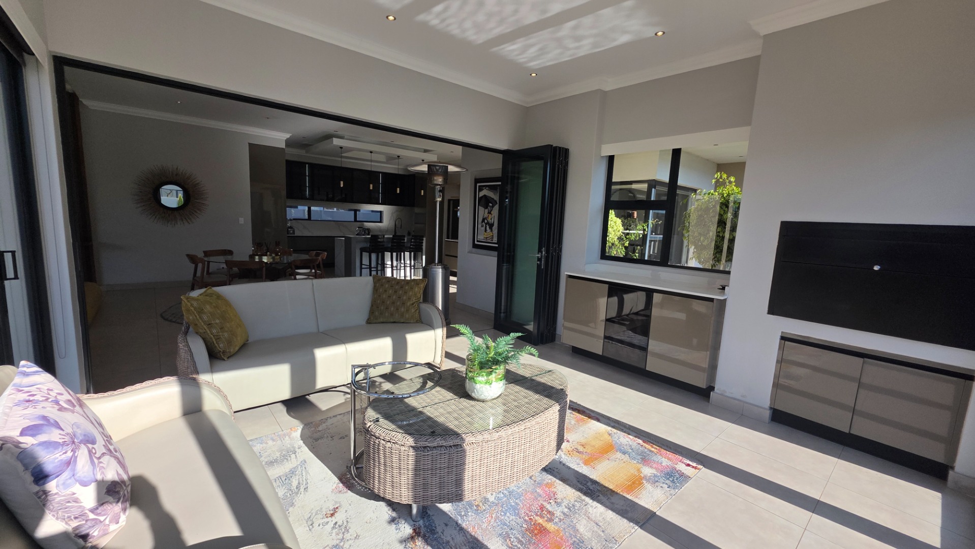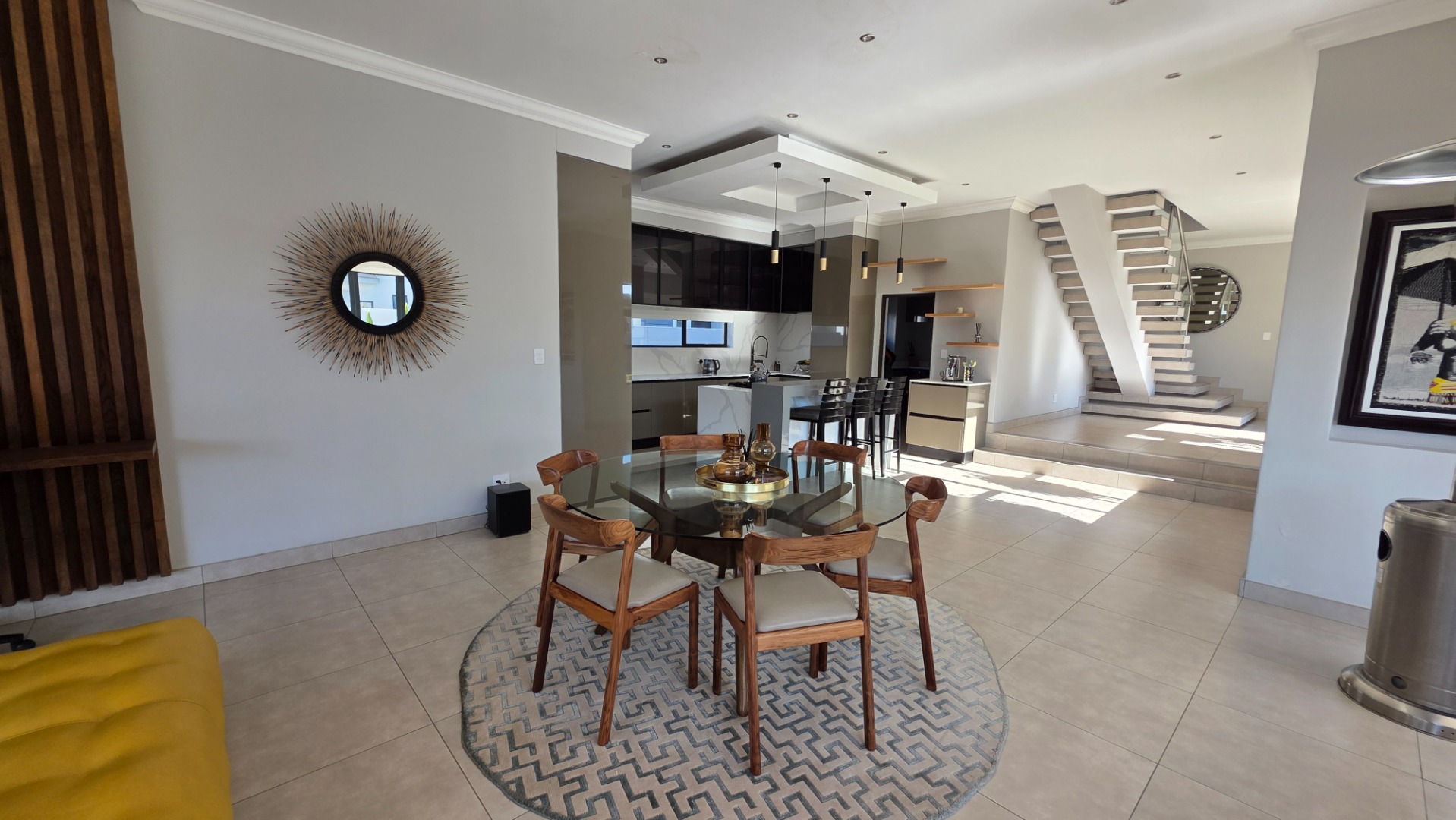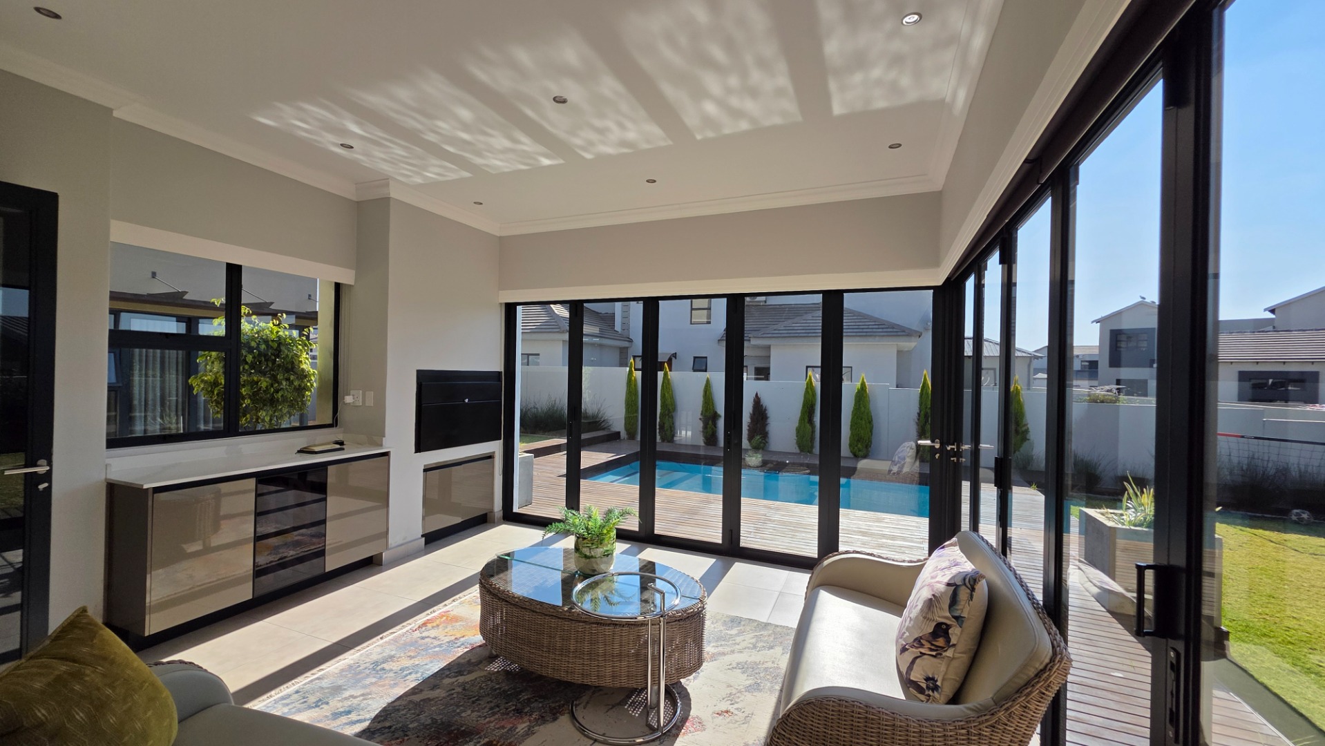 Experience unparalleled luxury and sophisticated design in this stunning 4-bedroom, 4-bathroom family home, perfectly situated in the highly sought-after Six Fountains Residential Estate in Pretoria East. Upon entering, you are greeted by bright, open-plan living spaces that flow seamlessly throughout the ground floor. The heart of the home is a gourmet kitchen, featuring sleek cabinetry and a large centre island, which integrates effortlessly with the dining and living zones. This sense of openness is enhanced by stacking doors that lead to a magnificent enclosed entertainment patio, complete with a built-in braai for year-round hosting. Upstairs, a stylish pajama lounge provides a private and comfortable retreat for the family. The residence boasts four generously sized bedrooms, each offering a tranquil escape, complemented by four spa-like modern bathrooms featuring premium fixtures such as a freestanding tub and spacious walk-in showers. Outside, the property transforms into a private oasis with a sparkling swimming pool surrounded by a modern wooden deck and a beautifully manicured garden. Complete with a double automated garage and the exceptional 24-hour security of Six Fountains Estate, this property offers a lifestyle of comfort, elegance, and peace of mind. To make this incredible property your new home, contact us today to schedule your exclusive viewing.
