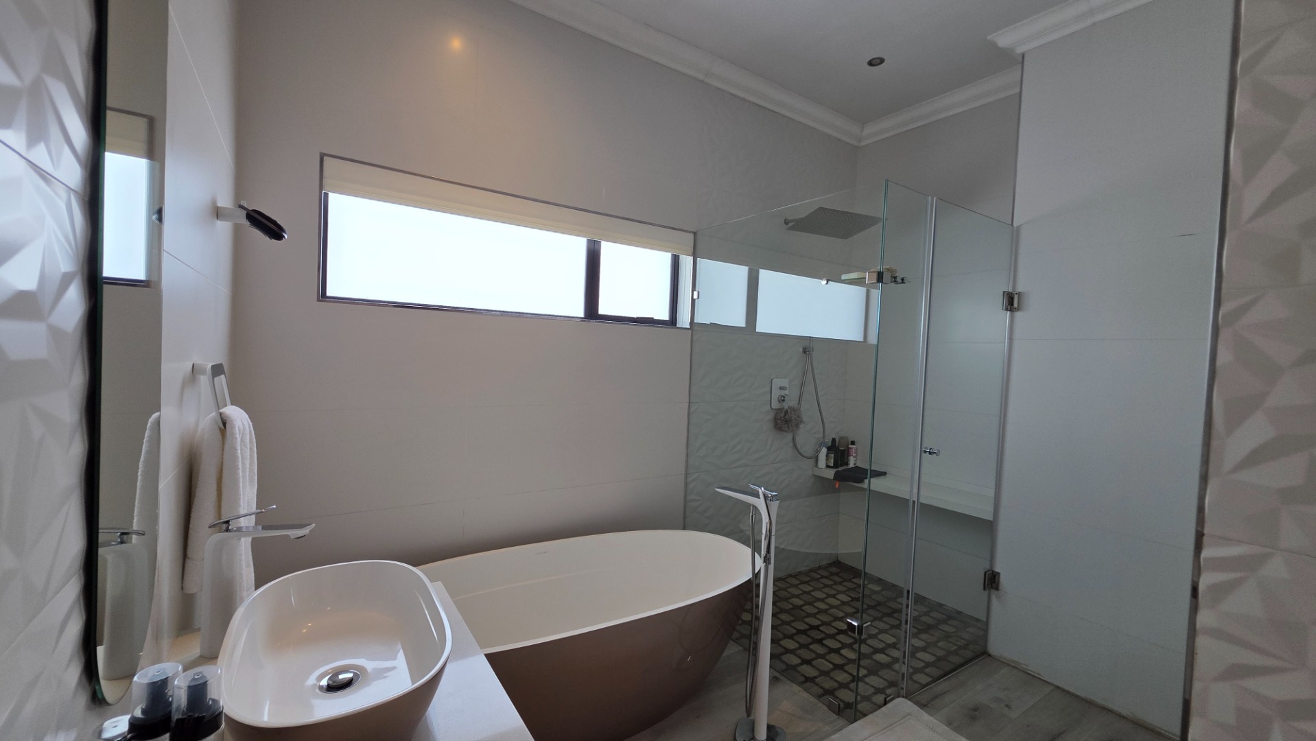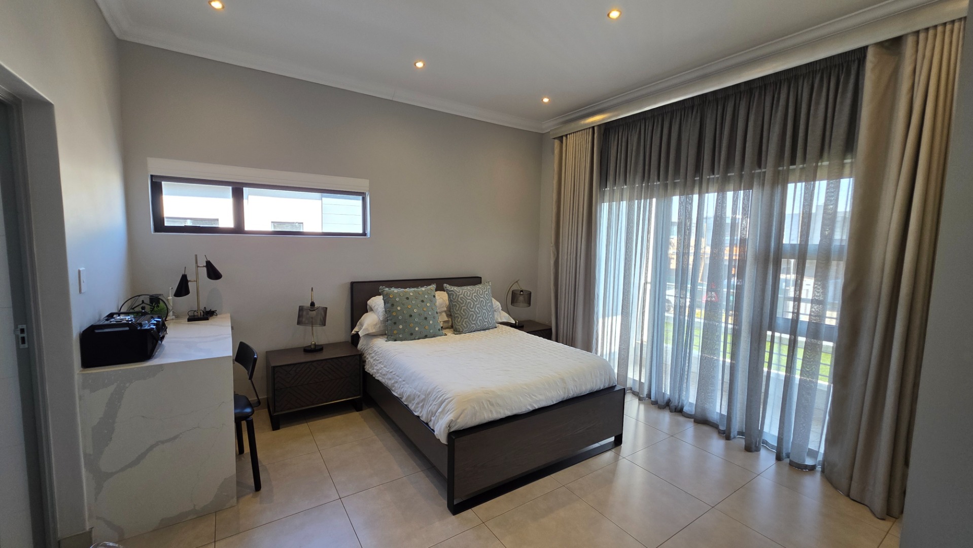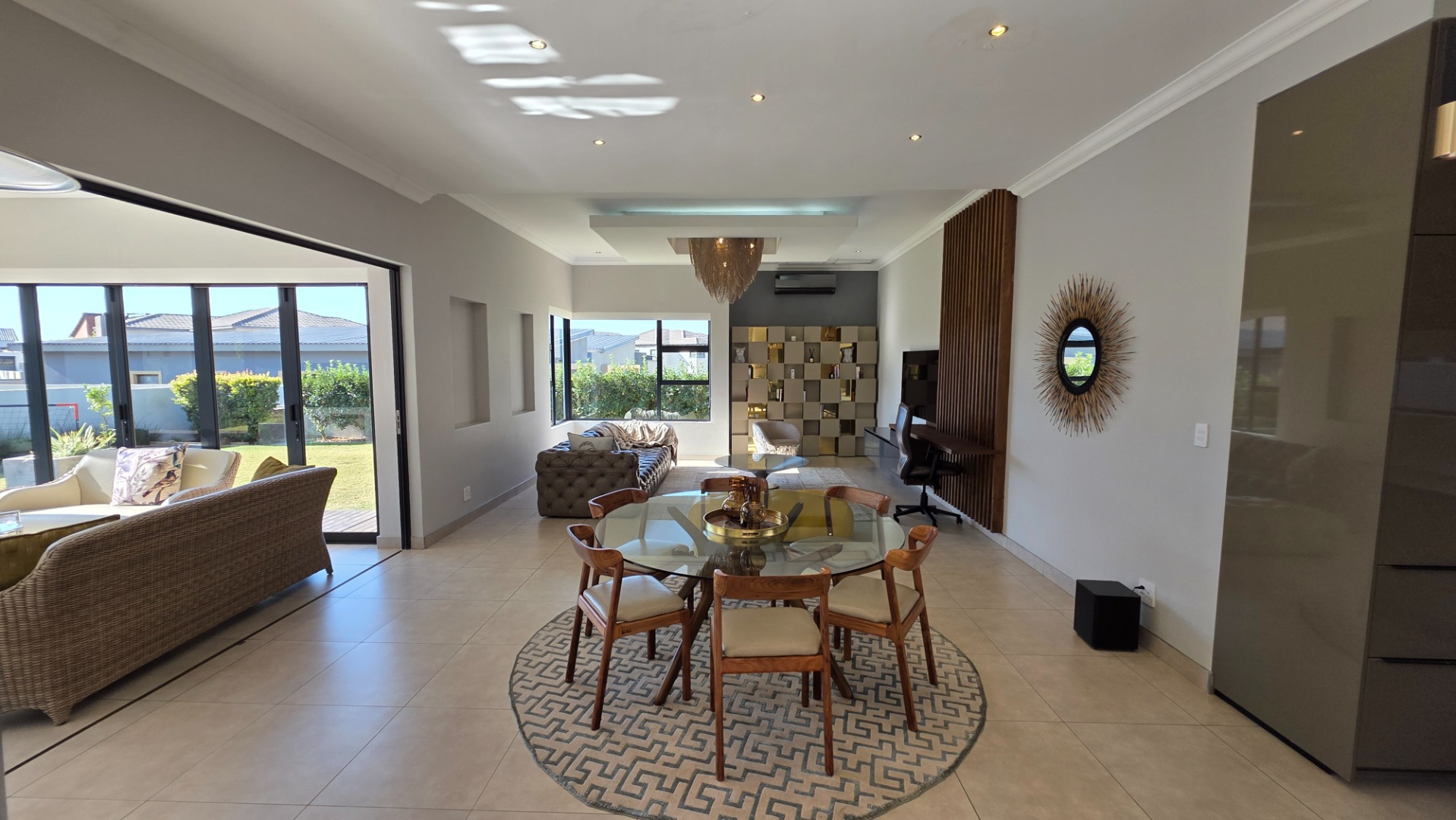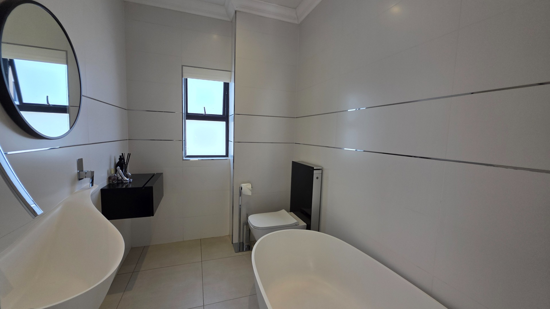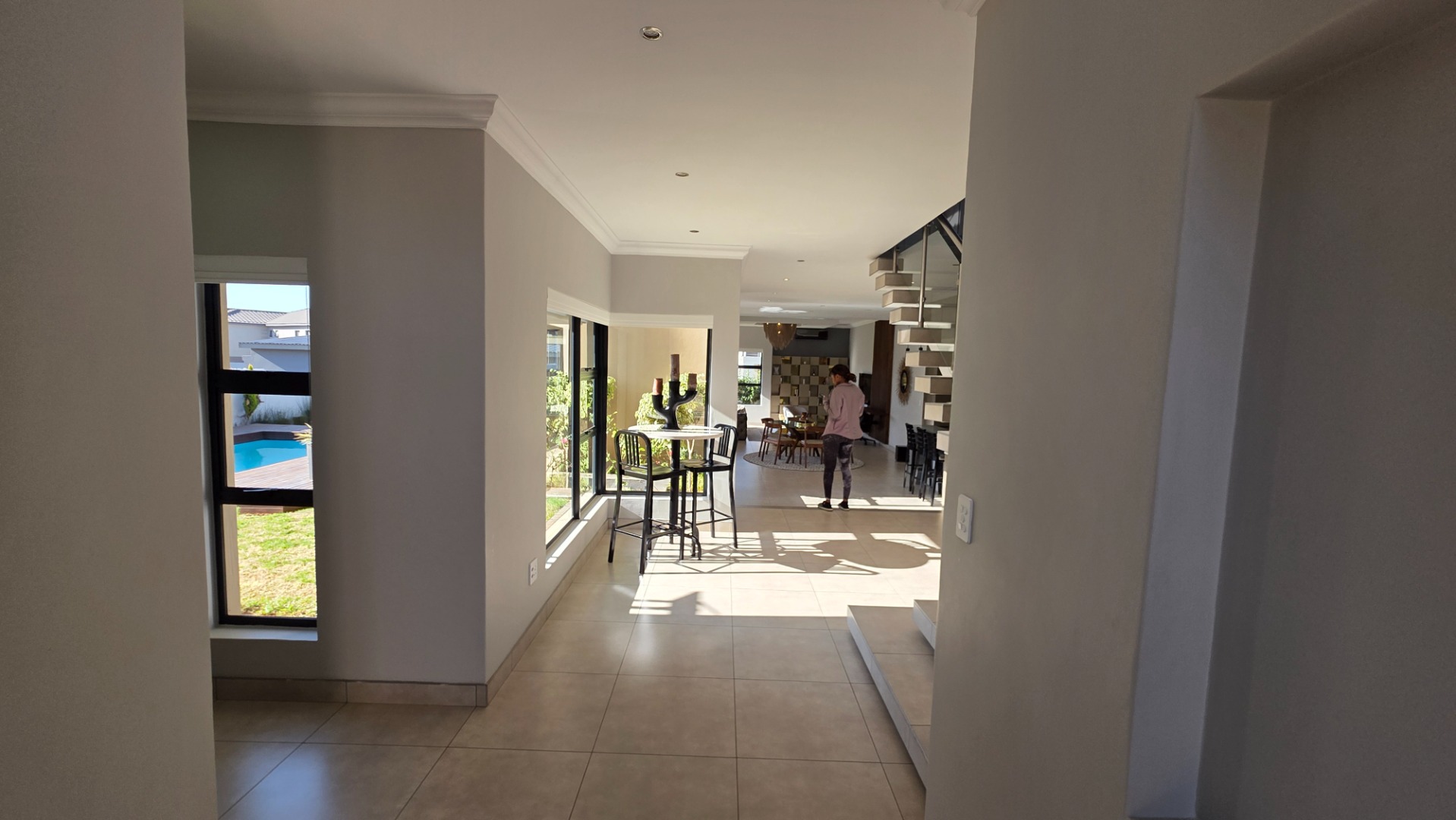 Experience unparalleled luxury and sophisticated design in this stunning 4-bedroom, 4-bathroom family home, perfectly situated in the highly sought-after Six Fountains Residential Estate in Pretoria East. Upon entering, you are greeted by bright, open-plan living spaces that flow seamlessly throughout the ground floor. The heart of the home is a gourmet kitchen, featuring sleek cabinetry and a large centre island, which integrates effortlessly with the dining and living zones. This sense of openness is enhanced by stacking doors that lead to a magnificent enclosed entertainment patio, complete with a built-in braai for year-round hosting. Upstairs, a stylish pajama lounge provides a private and comfortable retreat for the family. The residence boasts four generously sized bedrooms, each offering a tranquil escape, complemented by four spa-like modern bathrooms featuring premium fixtures such as a freestanding tub and spacious walk-in showers. Outside, the property transforms into a private oasis with a sparkling swimming pool surrounded by a modern wooden deck and a beautifully manicured garden. Complete with a double automated garage and the exceptional 24-hour security of Six Fountains Estate, this property offers a lifestyle of comfort, elegance, and peace of mind. To make this incredible property your new home, contact us today to schedule your exclusive viewing.