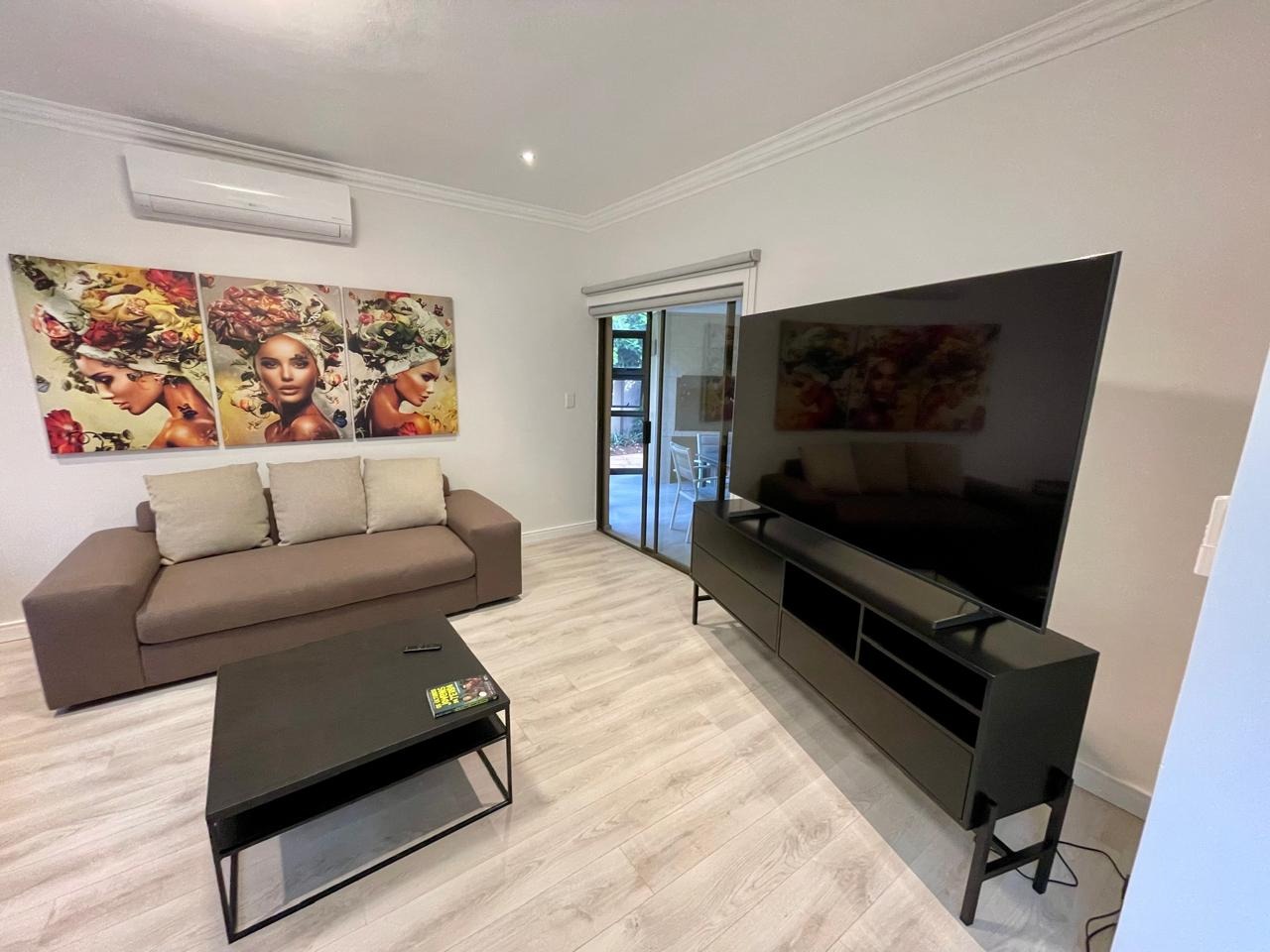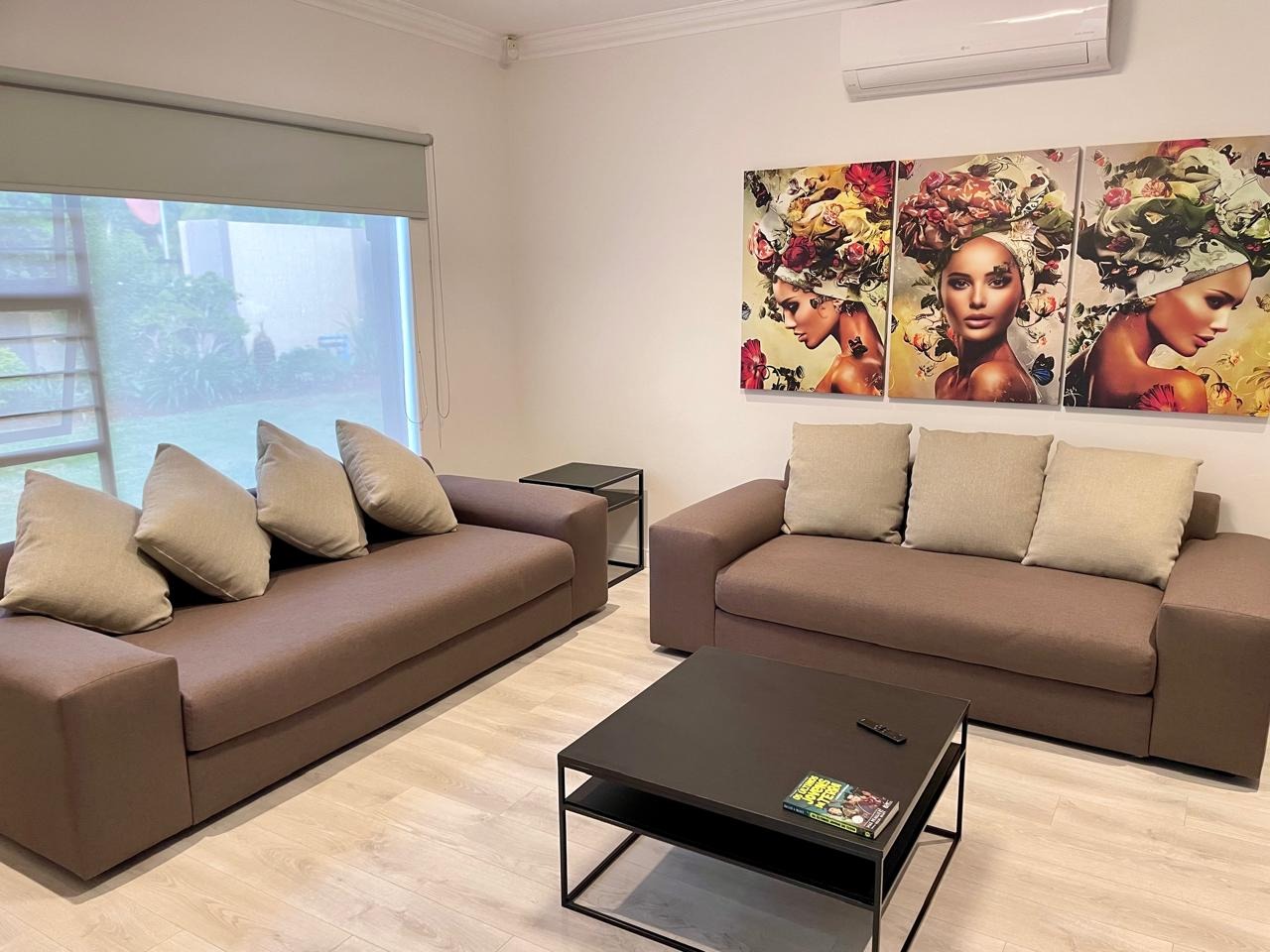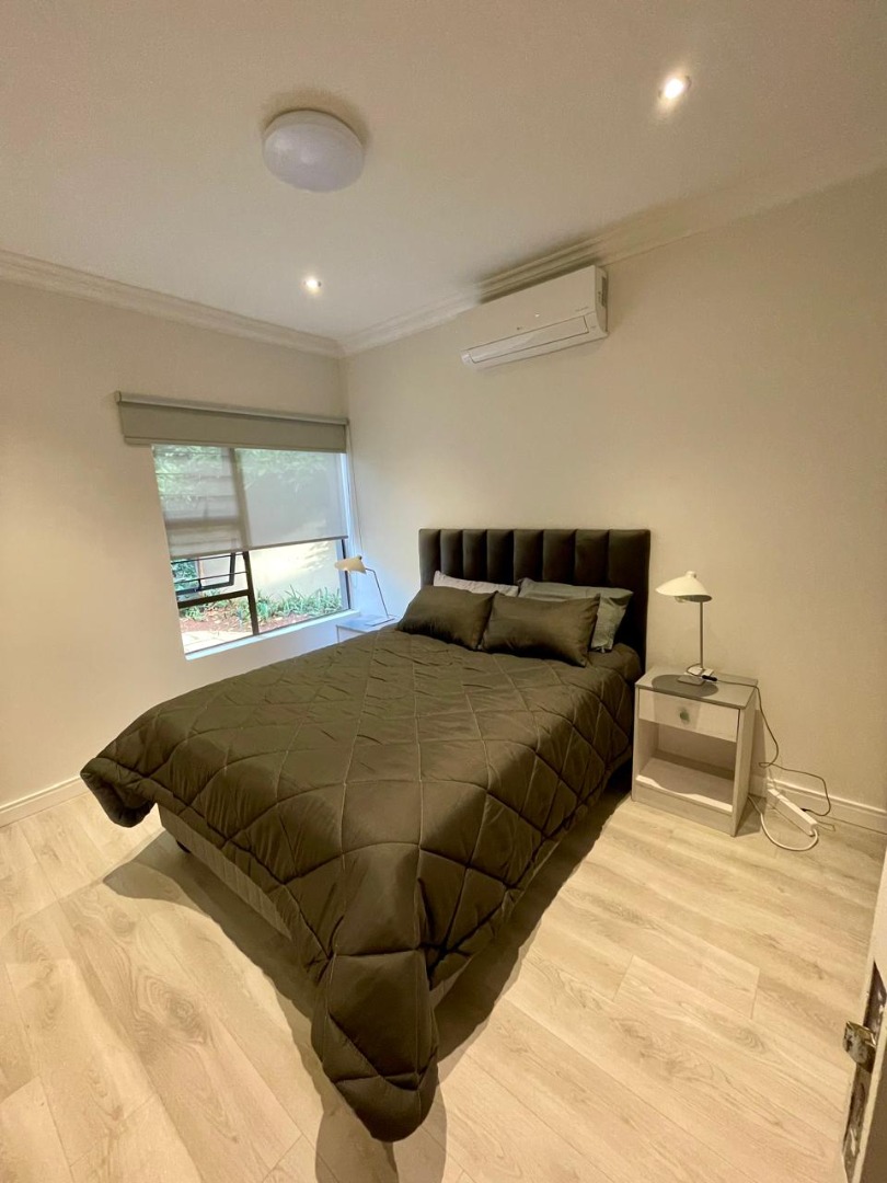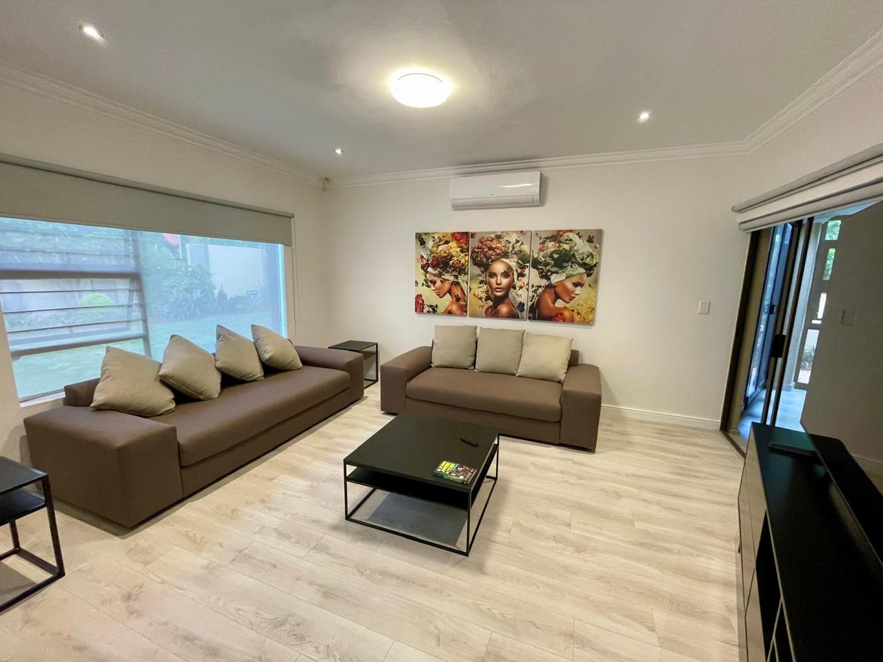 Discover this modern and inviting furnished home available for rent in the prestigious The Wilds Estate, Pretoria. This property boasts a unique architectural design, immediately noticeable with its distinctive tall window feature and well-maintained front landscaping. Inside, the residence offers a spacious and contemporary layout, featuring three comfortable bedrooms and two bathrooms, including a private en-suite. The living spaces are designed for both relaxation and entertaining, comprising two generous lounges, a dedicated dining room, and a modern kitchen equipped for your convenience. Enjoy the clean aesthetic with light wood-look and tiled flooring throughout, complemented by ample natural light and air conditioning for year-round comfort.