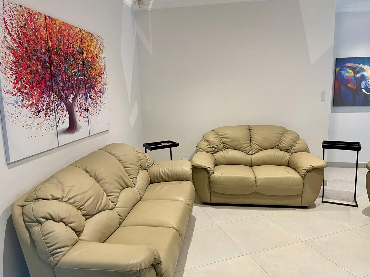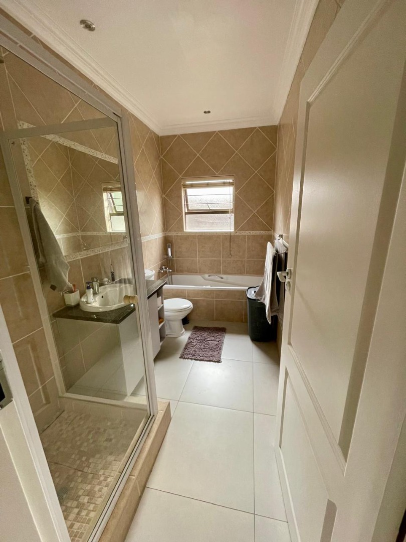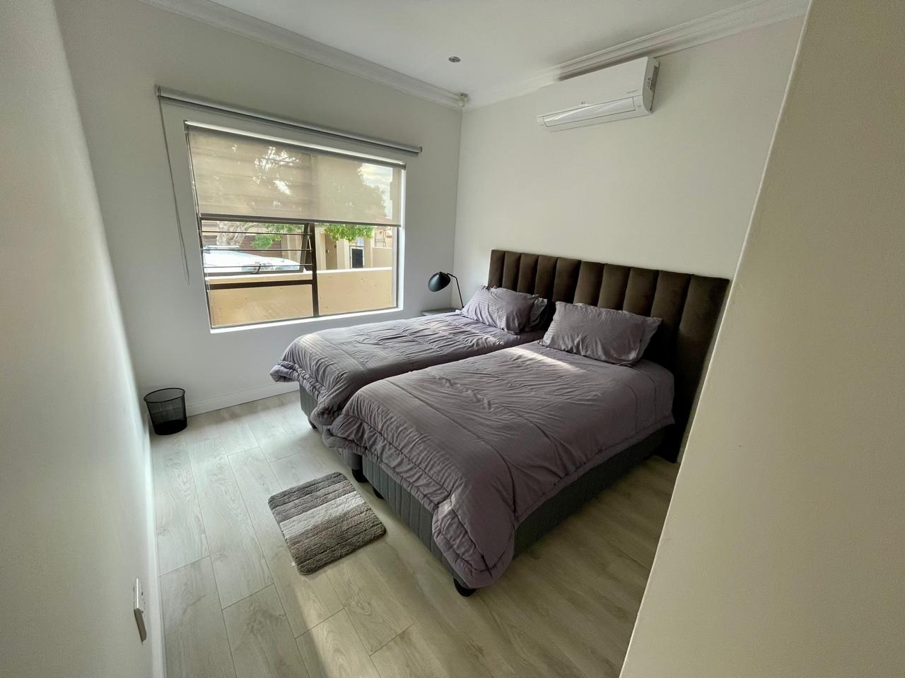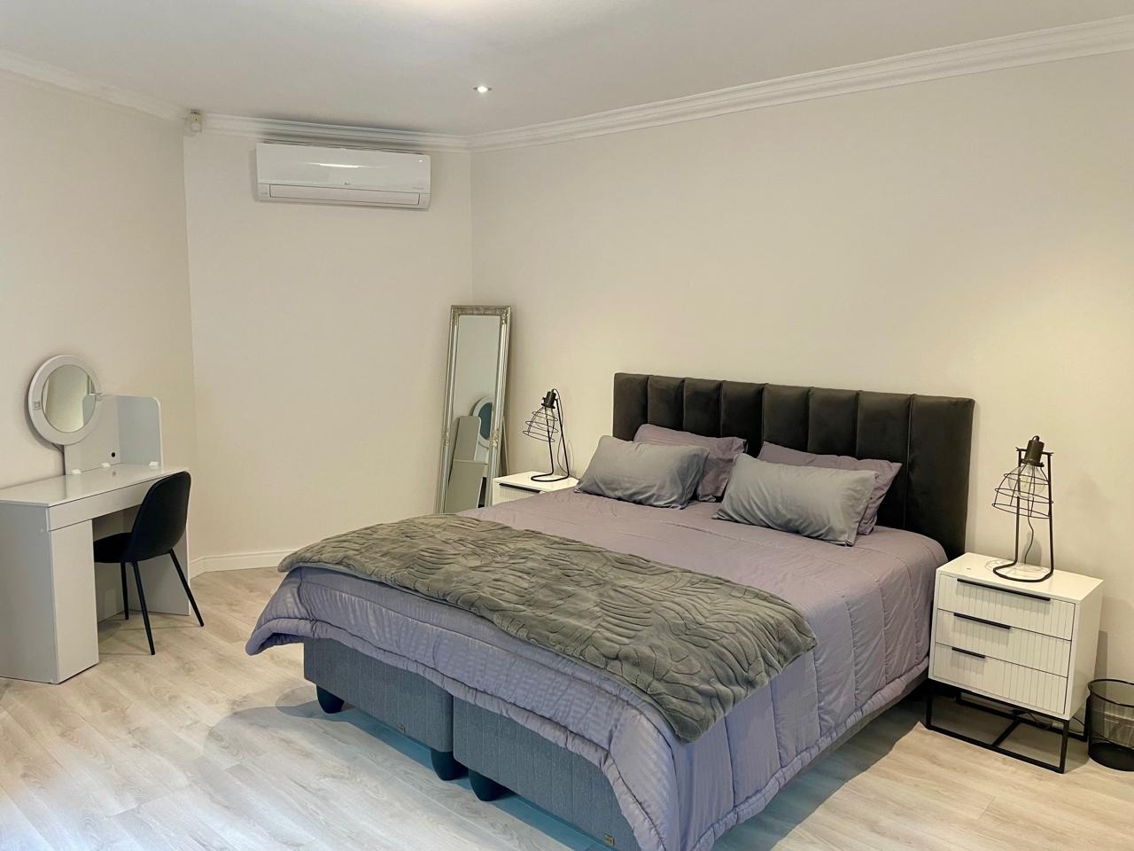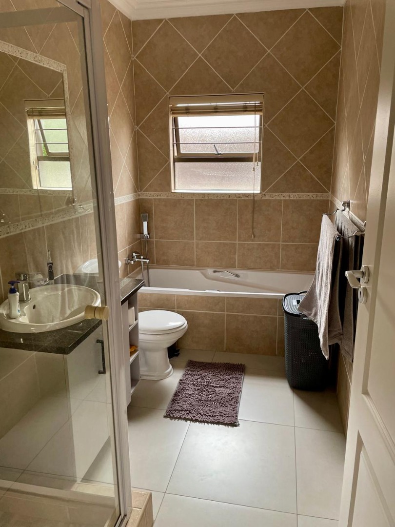 Discover this modern and inviting furnished home available for rent in the prestigious The Wilds Estate, Pretoria. This property boasts a unique architectural design, immediately noticeable with its distinctive tall window feature and well-maintained front landscaping. Inside, the residence offers a spacious and contemporary layout, featuring three comfortable bedrooms and two bathrooms, including a private en-suite. The living spaces are designed for both relaxation and entertaining, comprising two generous lounges, a dedicated dining room, and a modern kitchen equipped for your convenience. Enjoy the clean aesthetic with light wood-look and tiled flooring throughout, complemented by ample natural light and air conditioning for year-round comfort.