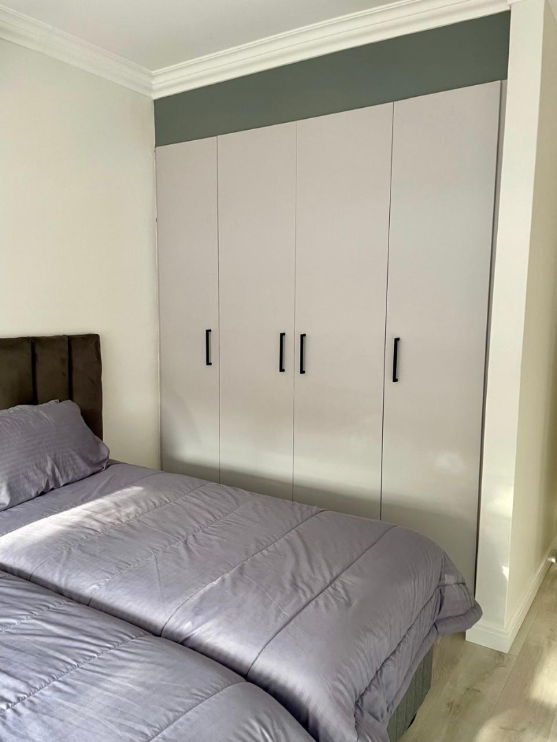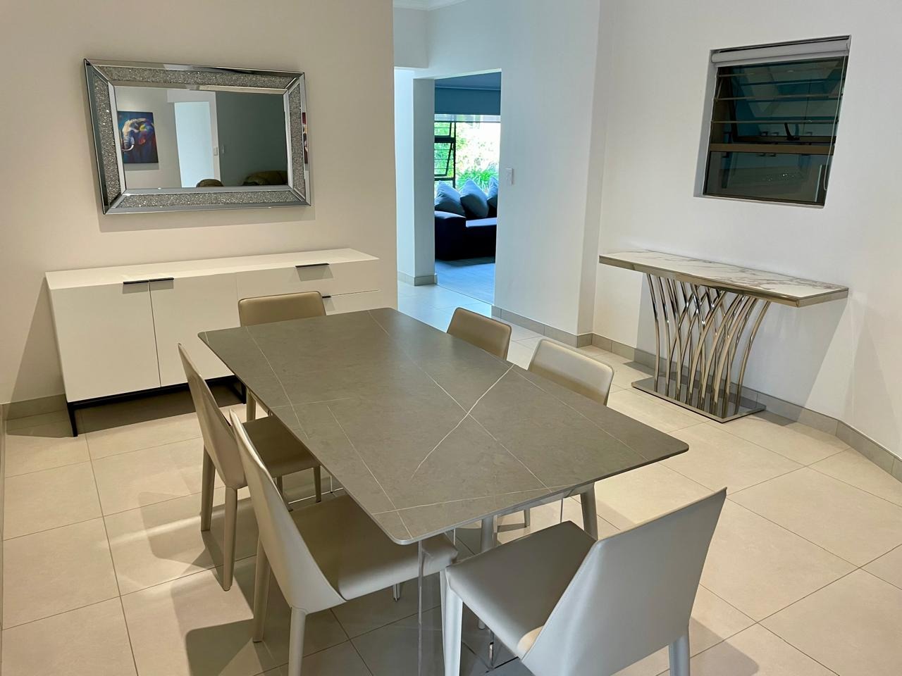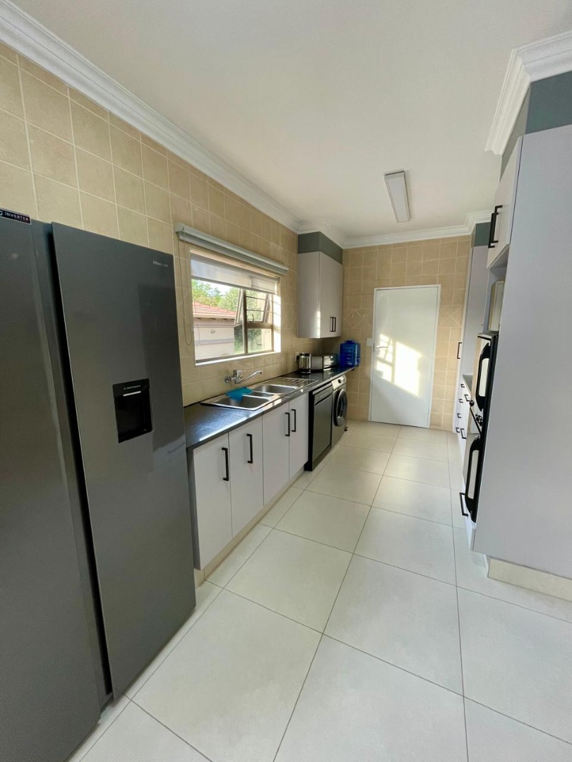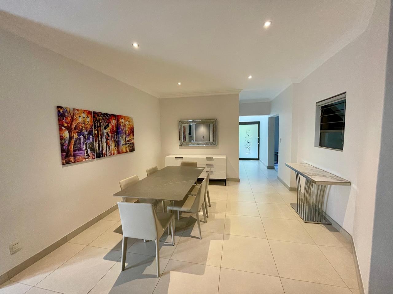 Discover this modern and inviting furnished home available for rent in the prestigious The Wilds Estate, Pretoria. This property boasts a unique architectural design, immediately noticeable with its distinctive tall window feature and well-maintained front landscaping. Inside, the residence offers a spacious and contemporary layout, featuring three comfortable bedrooms and two bathrooms, including a private en-suite. The living spaces are designed for both relaxation and entertaining, comprising two generous lounges, a dedicated dining room, and a modern kitchen equipped for your convenience. Enjoy the clean aesthetic with light wood-look and tiled flooring throughout, complemented by ample natural light and air conditioning for year-round comfort.