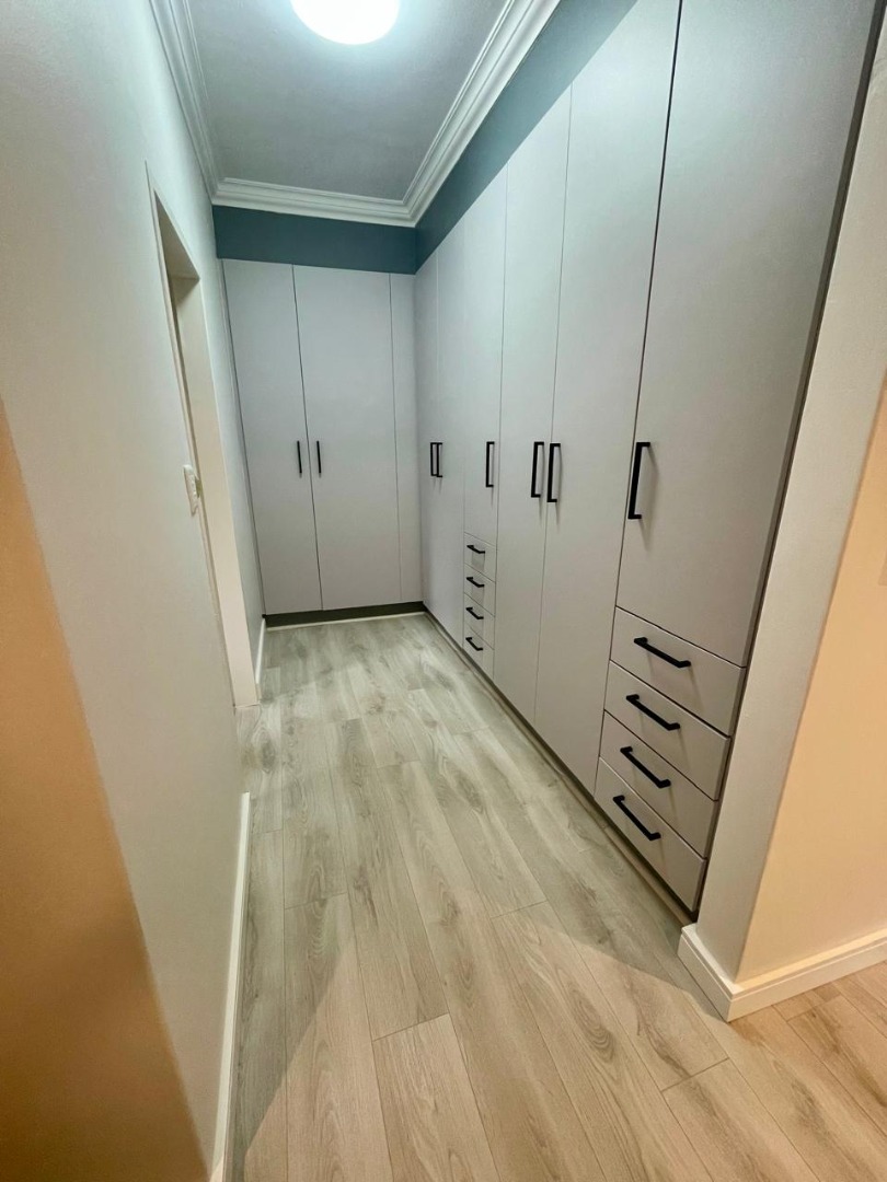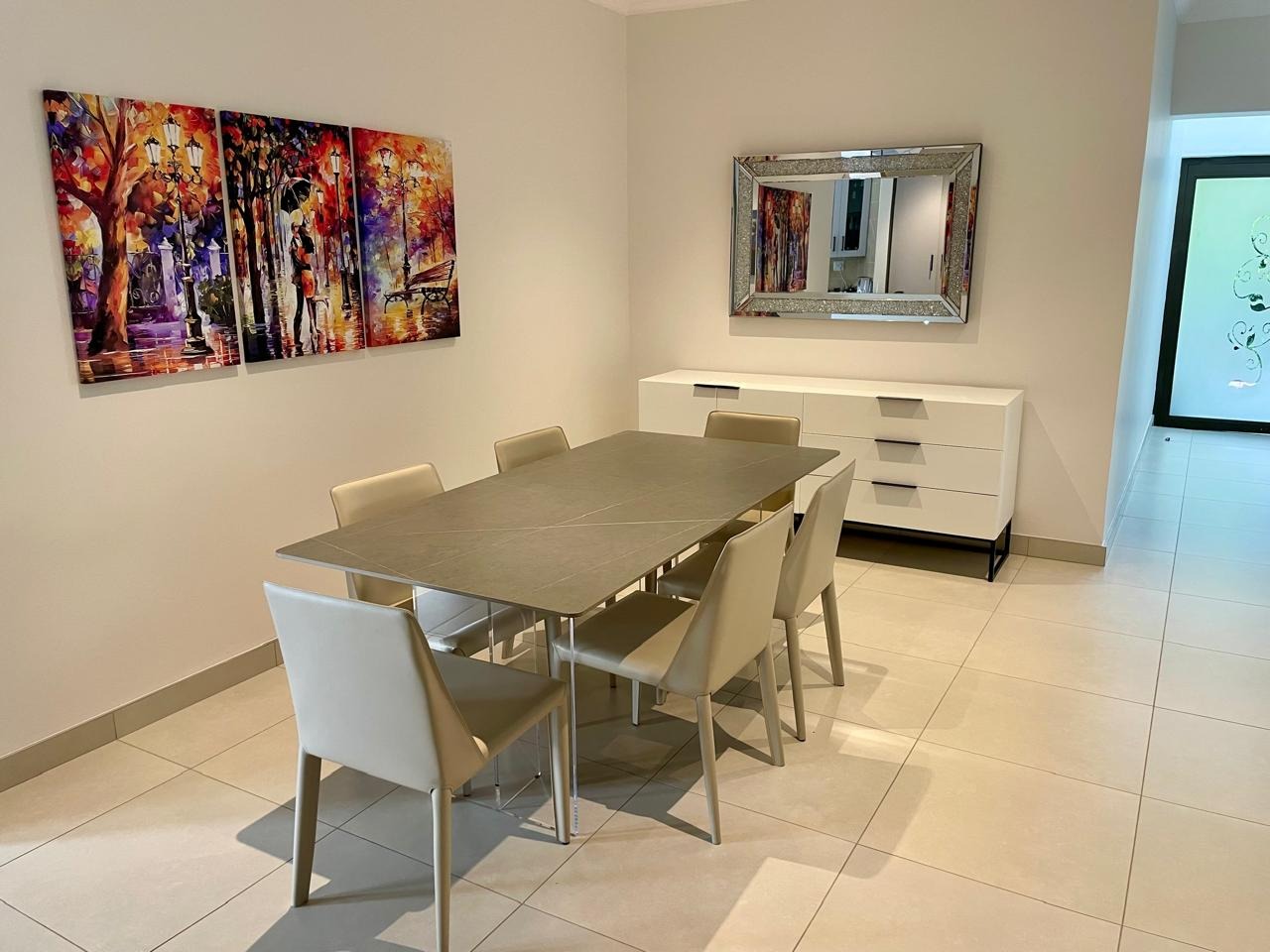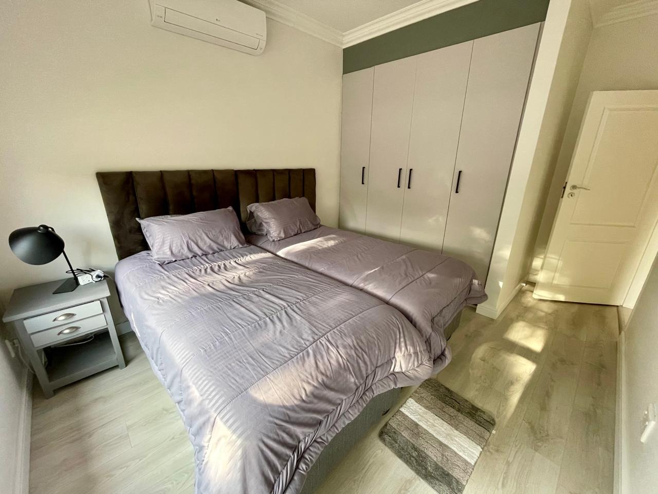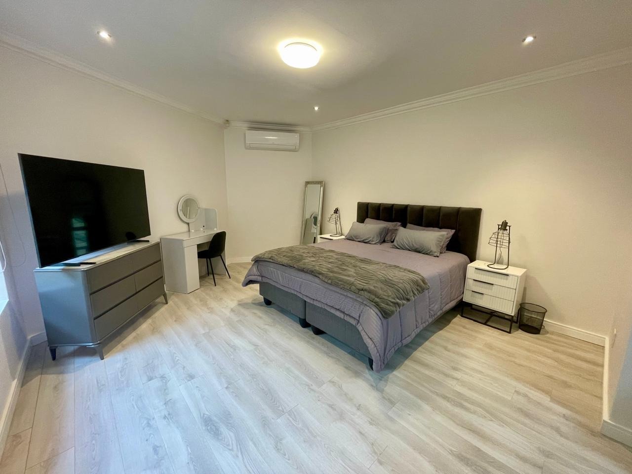 Discover this modern and inviting furnished home available for rent in the prestigious The Wilds Estate, Pretoria. This property boasts a unique architectural design, immediately noticeable with its distinctive tall window feature and well-maintained front landscaping. Inside, the residence offers a spacious and contemporary layout, featuring three comfortable bedrooms and two bathrooms, including a private en-suite. The living spaces are designed for both relaxation and entertaining, comprising two generous lounges, a dedicated dining room, and a modern kitchen equipped for your convenience. Enjoy the clean aesthetic with light wood-look and tiled flooring throughout, complemented by ample natural light and air conditioning for year-round comfort.