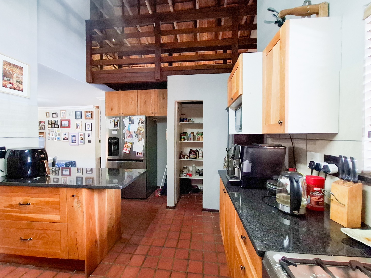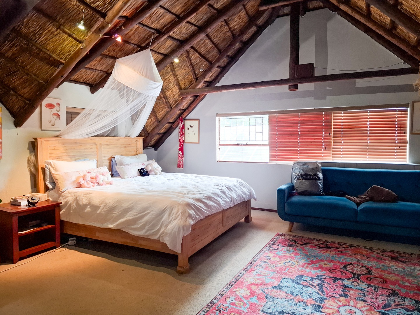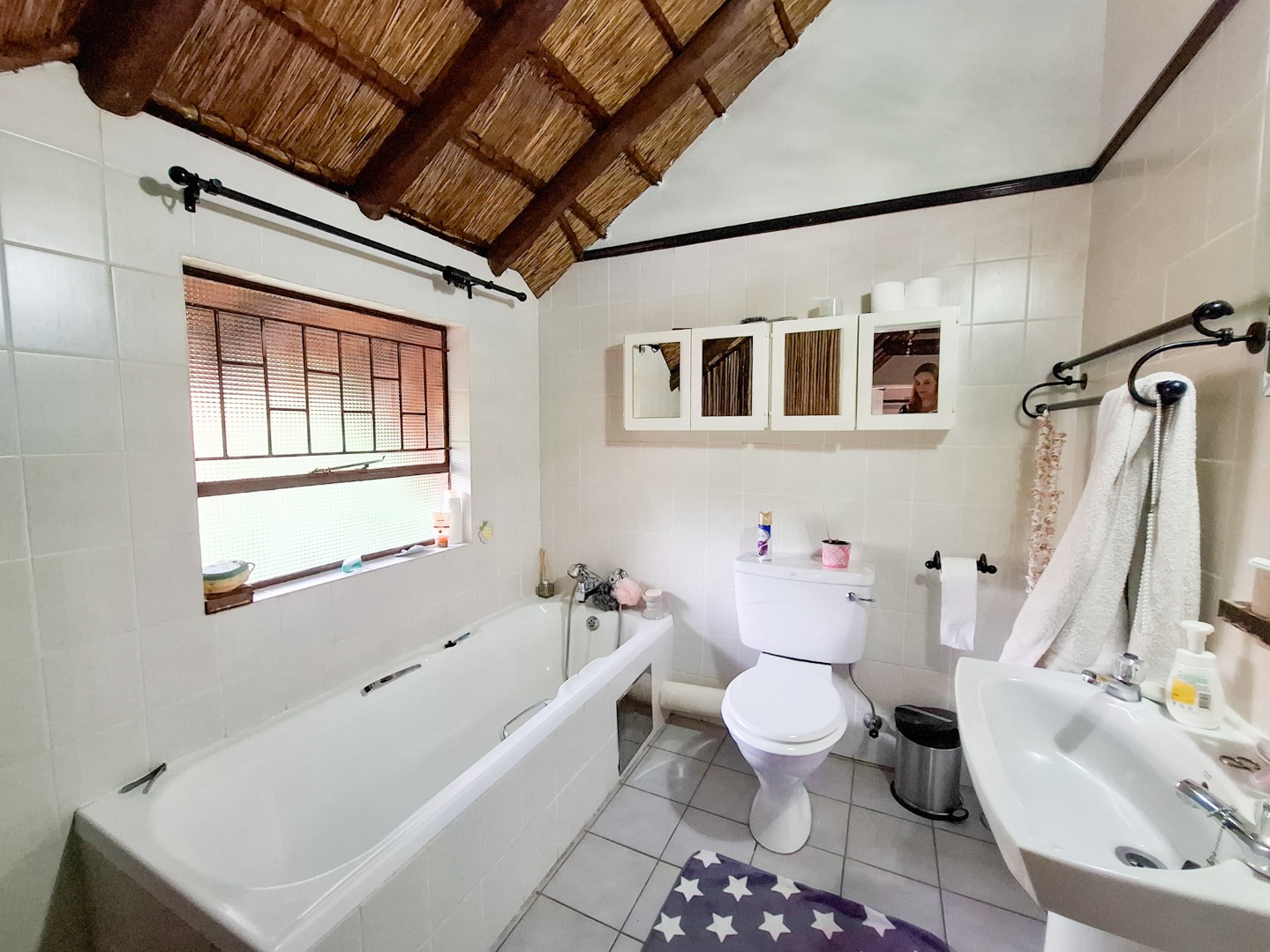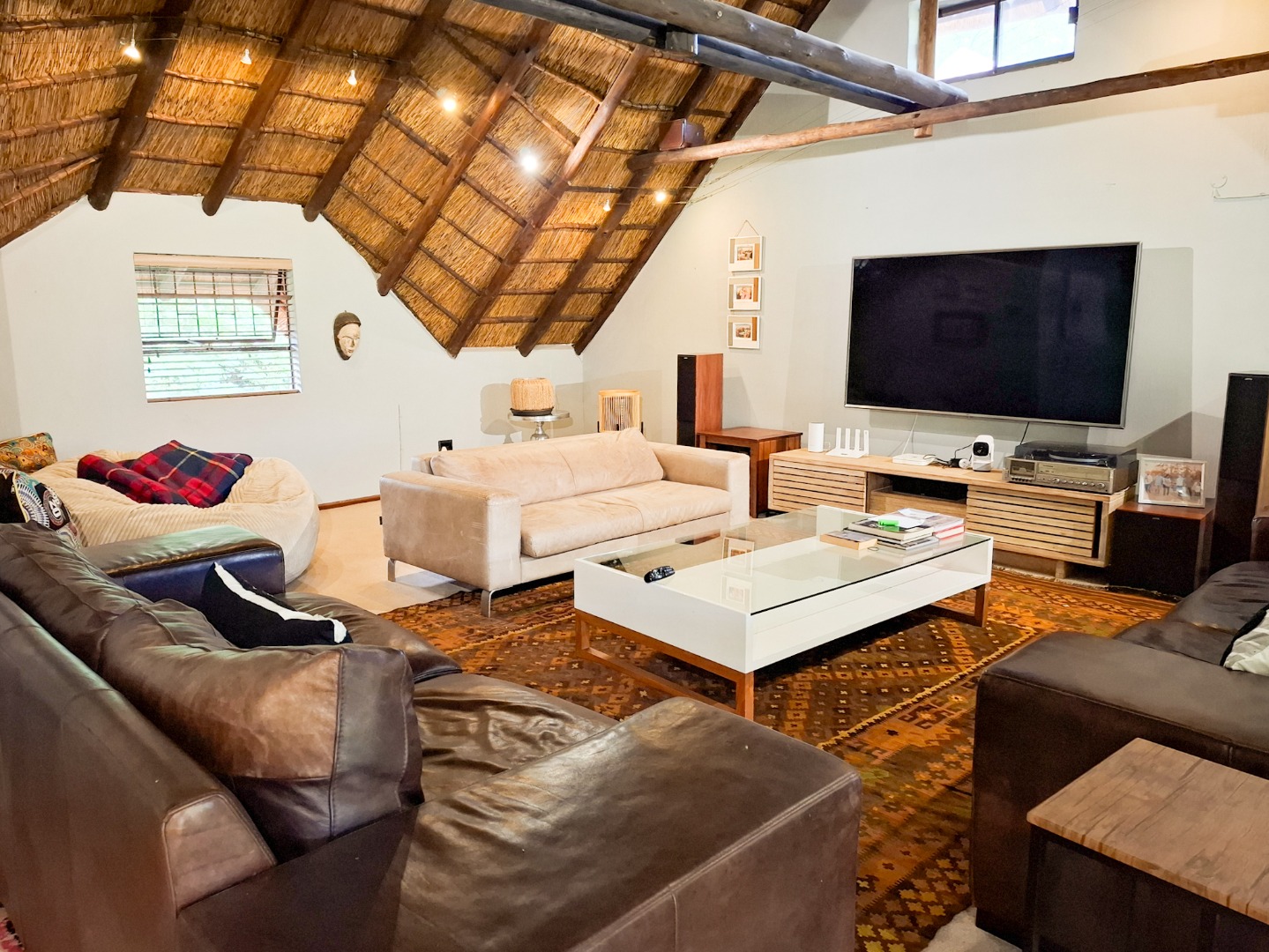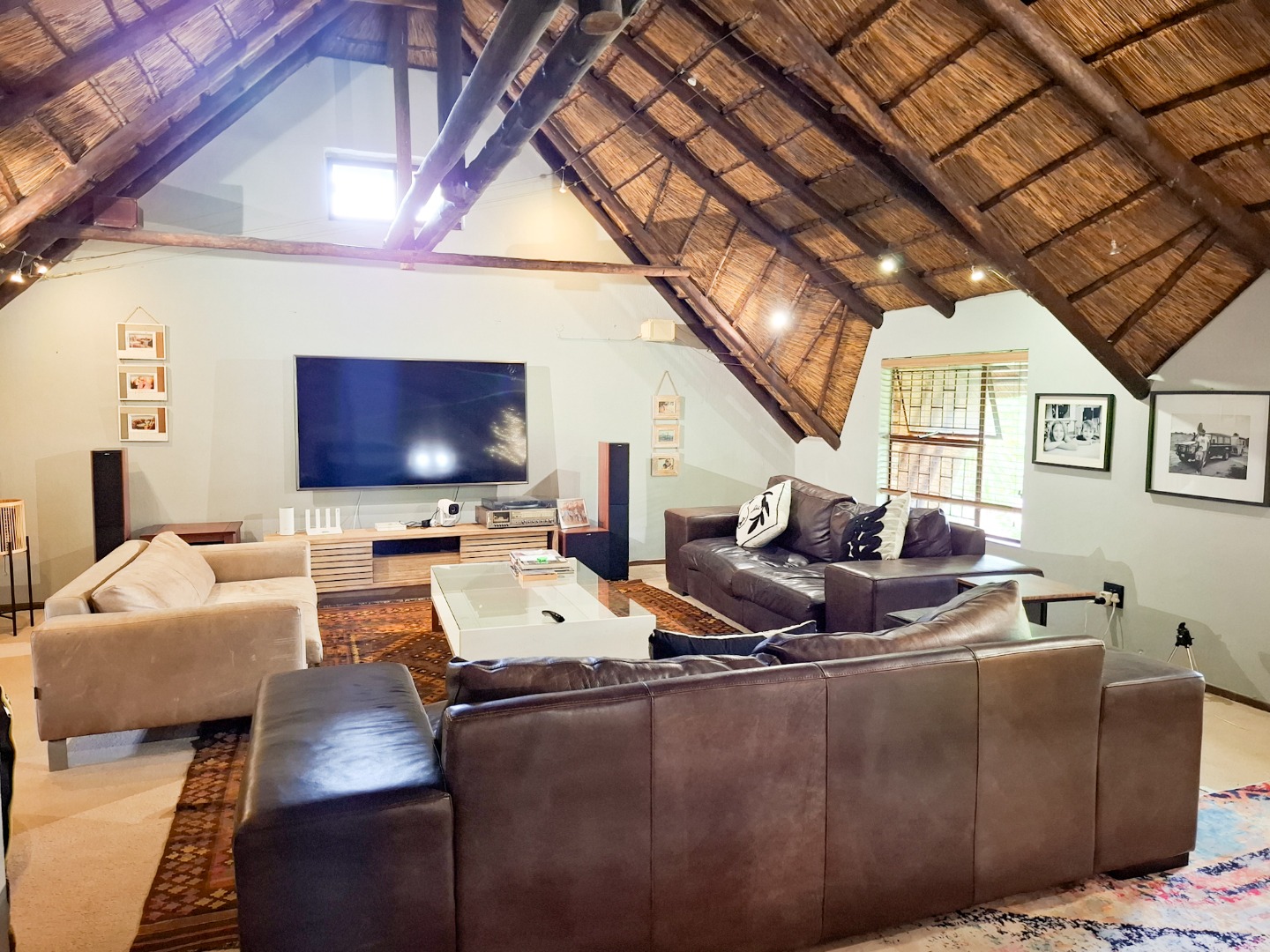Step into a truly unique rental experience with this charming 4-bedroom, 3-bathroom home nestled in the lovely Wapadrand Security Village. You'll immediately fall for the distinctive thatched roof and high vaulted ceilings, beautifully accented with exposed wooden beams, creating a warm and inviting atmosphere that feels both rustic and spacious. The open-plan living and dining areas are perfect for relaxing or entertaining, complete with a cozy fireplace for those cooler evenings, making it a real hub for family life.