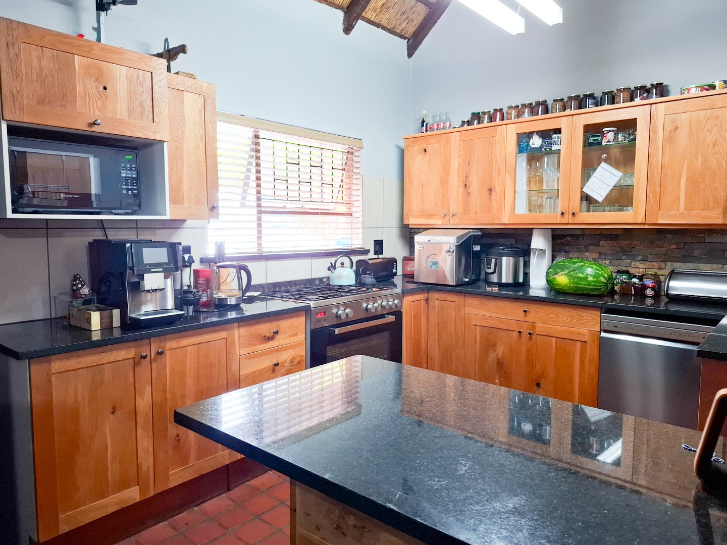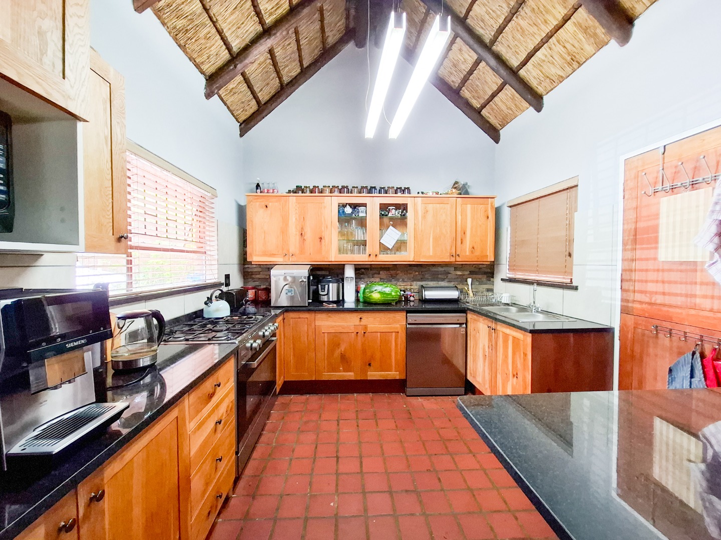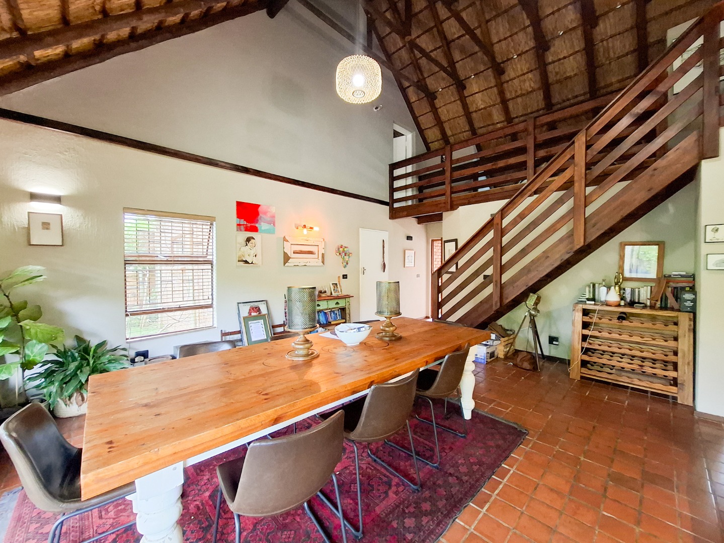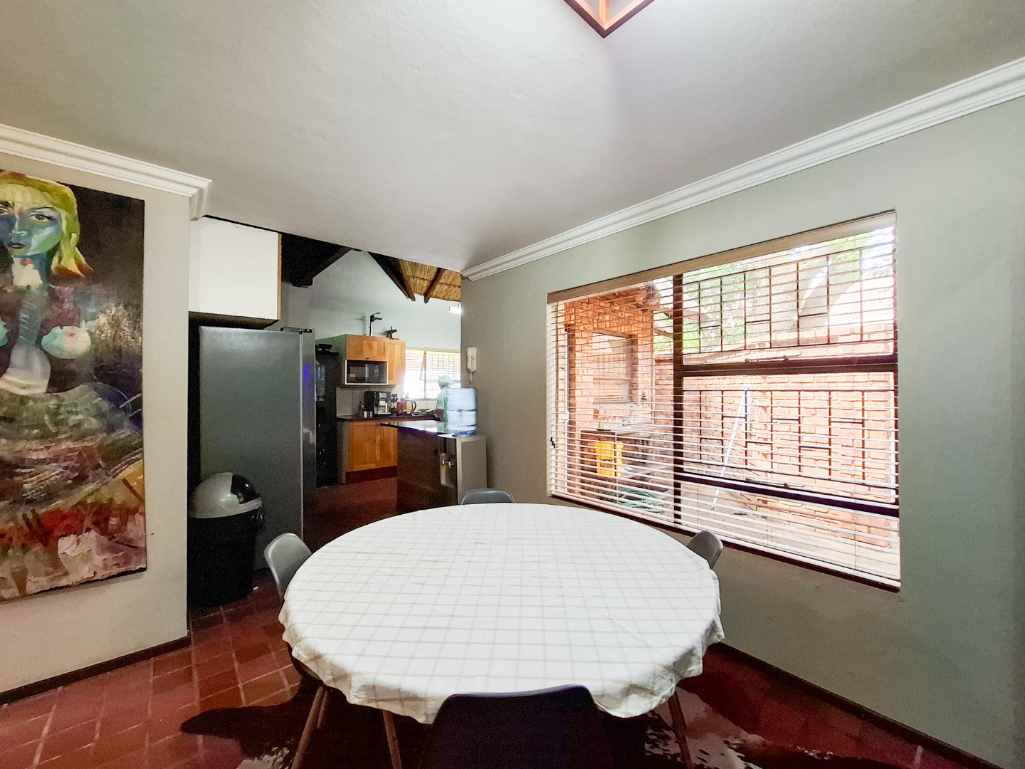 Step into a truly unique rental experience with this charming 4-bedroom, 3-bathroom home nestled in the lovely Wapadrand Security Village. You'll immediately fall for the distinctive thatched roof and high vaulted ceilings, beautifully accented with exposed wooden beams, creating a warm and inviting atmosphere that feels both rustic and spacious. The open-plan living and dining areas are perfect for relaxing or entertaining, complete with a cozy fireplace for those cooler evenings, making it a real hub for family life.