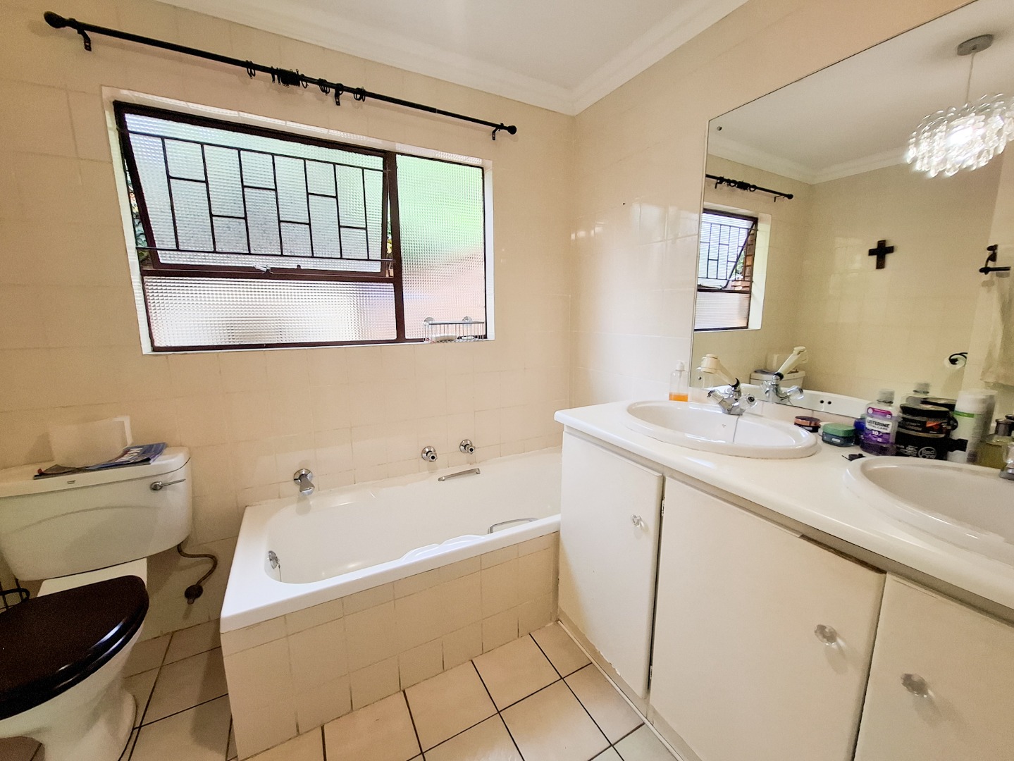 Outside, the property offers a generous brick-paved driveway, leading to two garages and an additional under cover parking, ensuring ample space for vehicles. The property is a duet and the entrance gate and driveway is shared with the other unit.