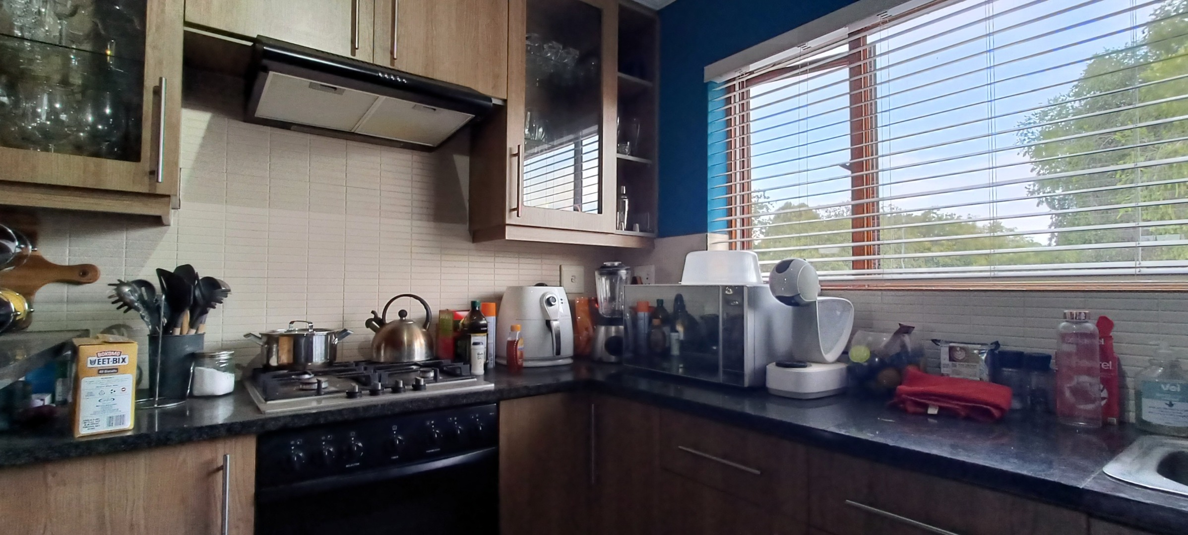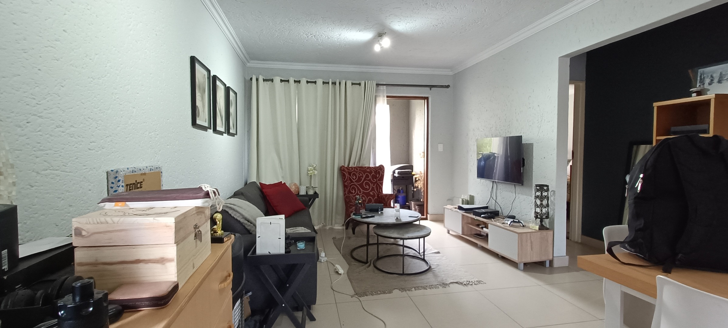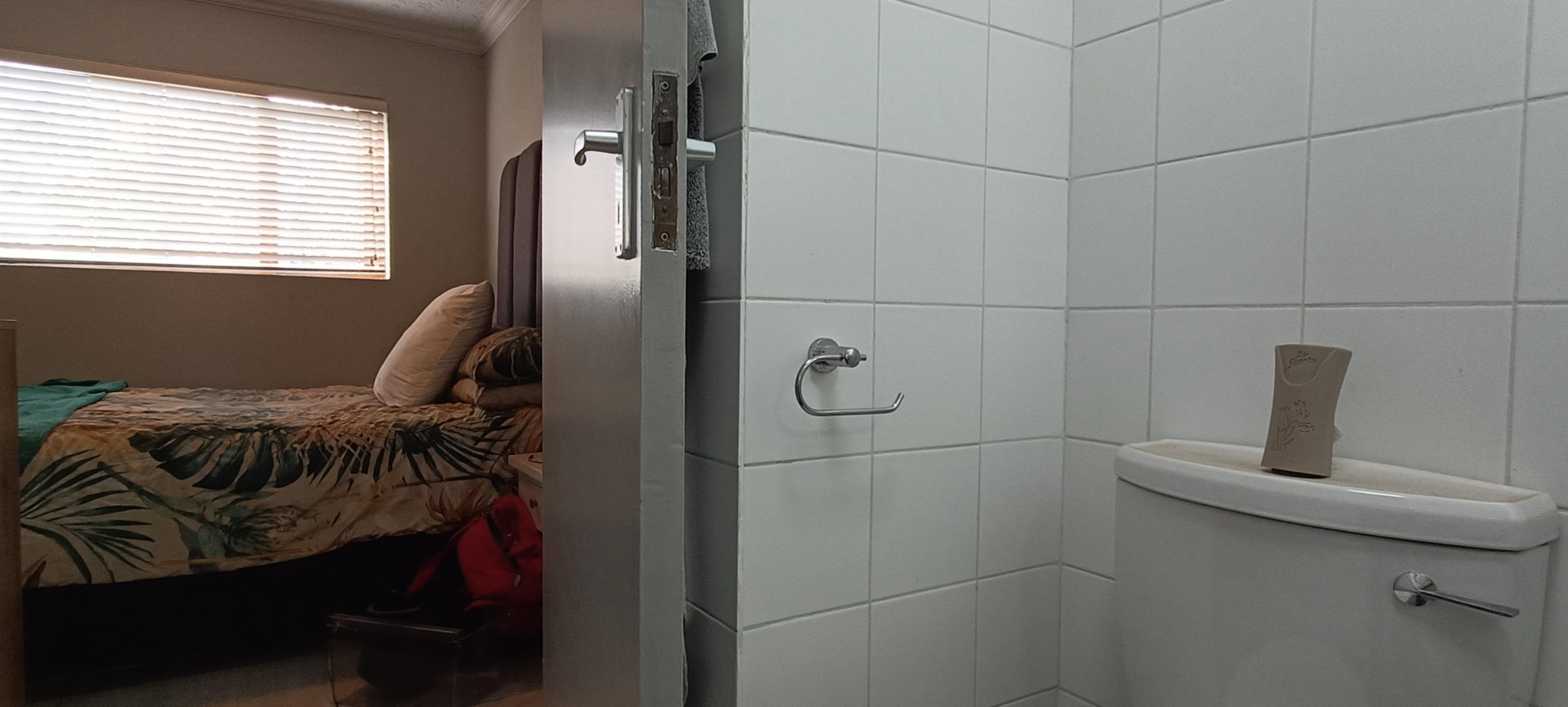 The open-plan lounge and dining area seamlessly flow onto a private balcony, perfect for relaxing. The kitchen is well-equipped with a gas HOB and spaces for a fridge and washing machine, making daily chores a breeze.