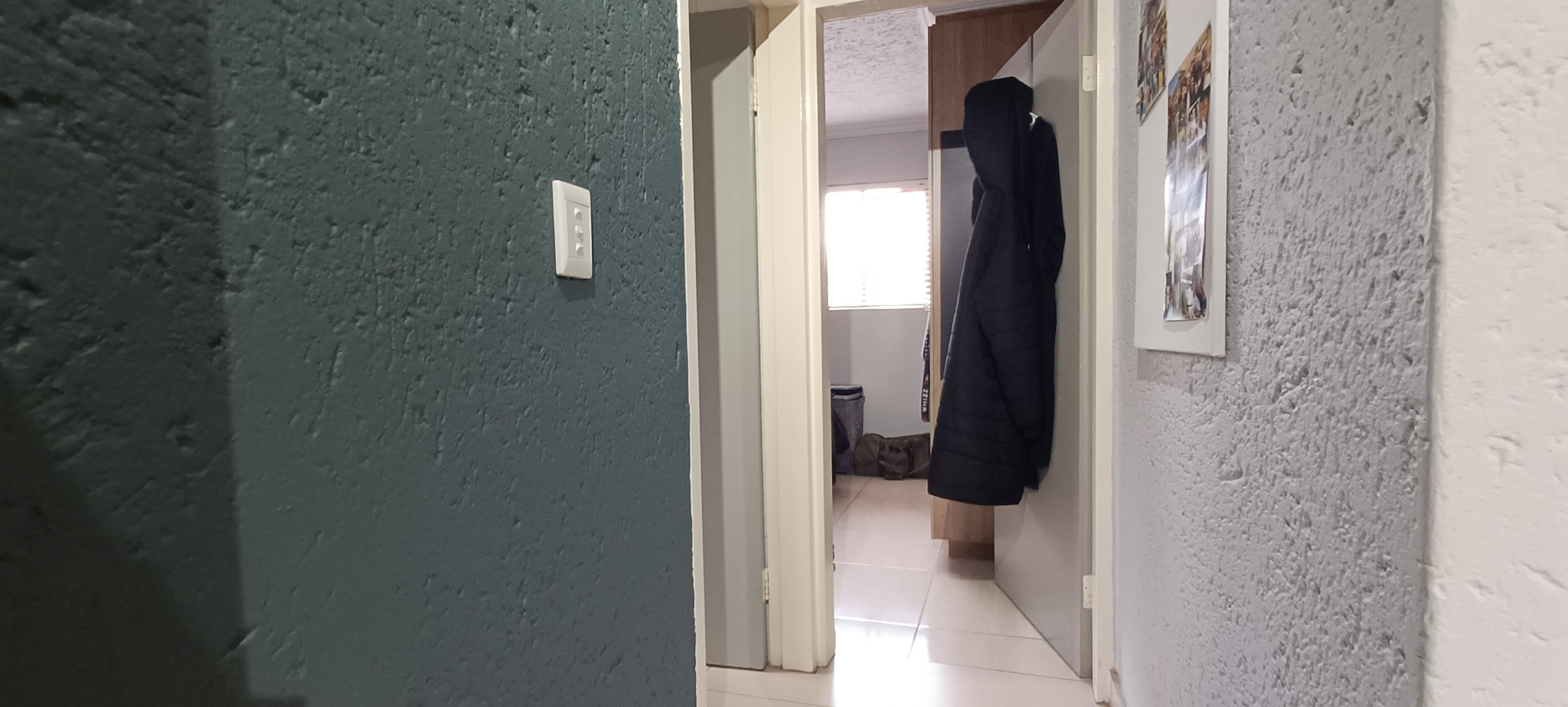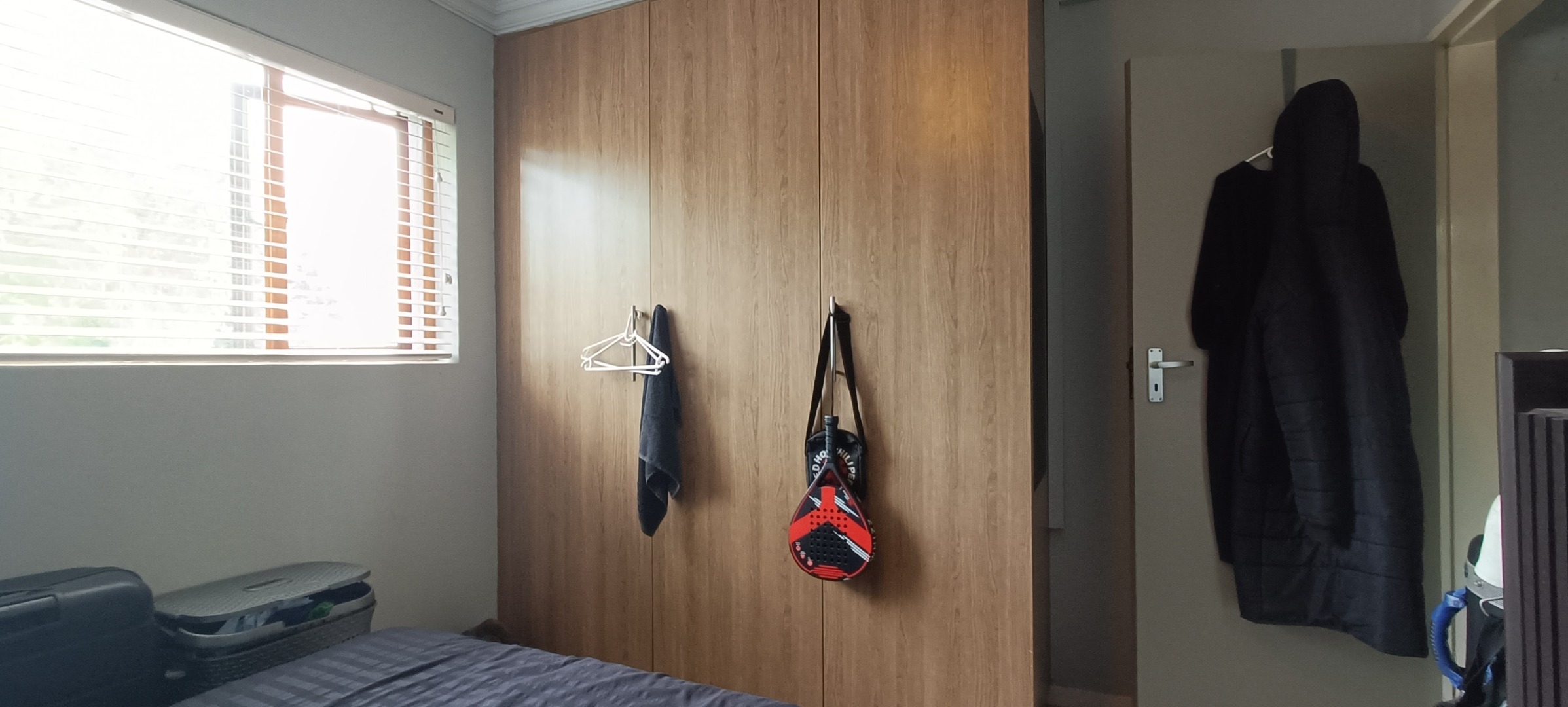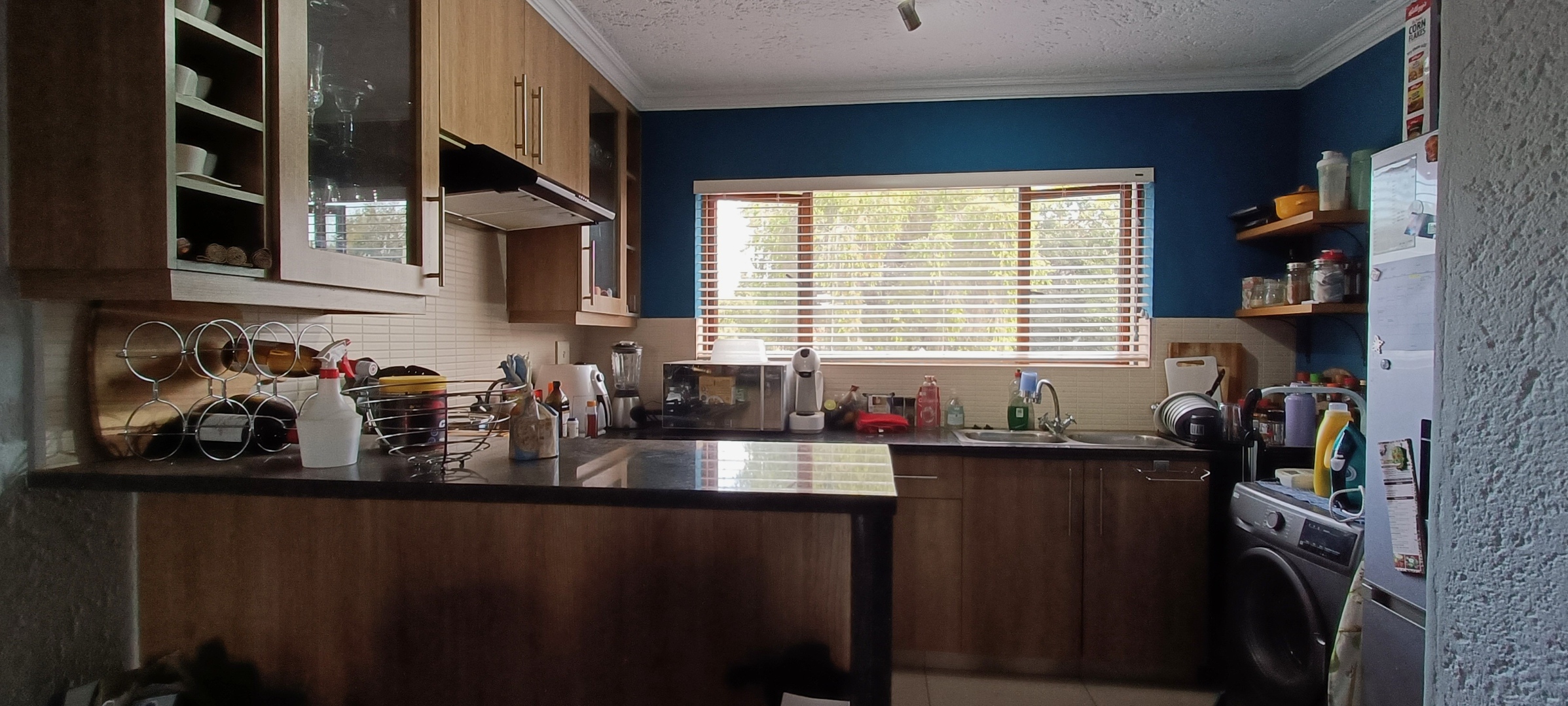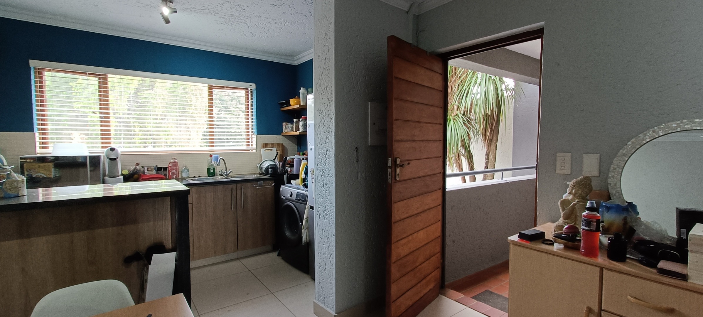The open-plan lounge and dining area seamlessly flow onto a private balcony, perfect for relaxing. The kitchen is well-equipped with a gas HOB and spaces for a fridge and washing machine, making daily chores a breeze.