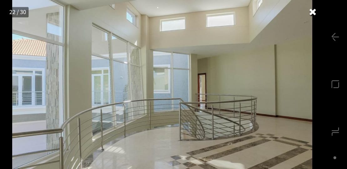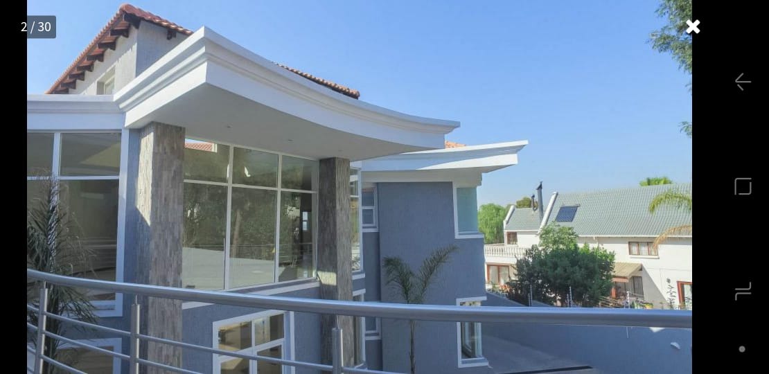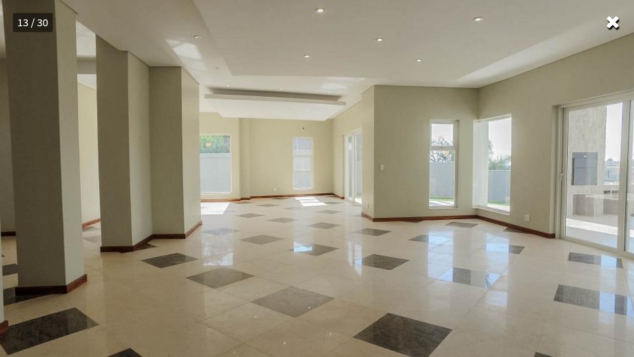 Discover this exceptional modern residence available for rent within a prestigious security estate in Waterkloof Ridge, Pretoria. Designed for contemporary living, this spacious home boasts six well-appointed bedrooms, including four luxurious en-suite bathrooms, alongside an additional fourth bathroom. The interior features an expansive open-plan layout, highlighted by two generous lounges, a dedicated dining room, and a modern kitchen equipped with a large dark marble island and sleek cabinetry, perfect for culinary enthusiasts. Large windows and glass doors throughout ensure abundant natural light, complementing the clean tiled flooring and recessed lighting. This unfurnished property offers a versatile canvas for families or professionals seeking to establish their ideal living space. Additional amenities include a dedicated study, staff quarters, and a reception area, catering to diverse lifestyle needs. The property embraces outdoor living with a private swimming pool, a welcoming patio, and a well-maintained garden, providing ample space for relaxation and entertainment. Pets are permitted, making it an ideal choice for animal lovers. Security is paramount within this gated community, featuring 24-hour security, an access gate, and an intercom system for peace of mind. Practical features such as a battery inverter ensure uninterrupted power supply, while water tanks contribute to water efficiency. With four garages and five additional parking spaces, convenience is assured for residents and guests alike. Waterkloof Ridge is a highly sought-after residential suburb in Pretoria, South Africa, known for its tranquil environment and upscale properties. It offers convenient access to amenities, schools, and major routes, making it a prime location for discerning tenants. Key Features: * 6 Bedrooms, 4 Bathrooms (4 En-suite) * Modern Open-Plan Living Areas * Stylish Kitchen with Marble Island * Private Swimming Pool & Patio * Dedicated Study & Staff Quarters * Security Estate with 24-Hour Security * Battery Inverter & Water Tanks * 4 Garages & 5 Parking Spaces * Pet-Friendly Environment