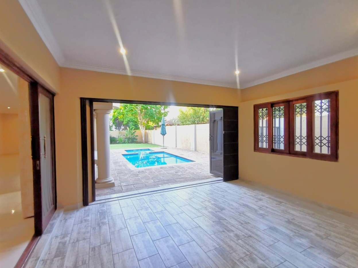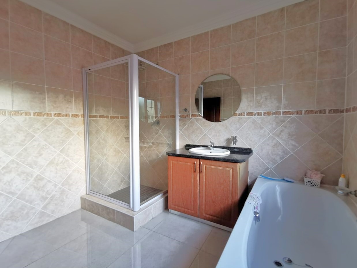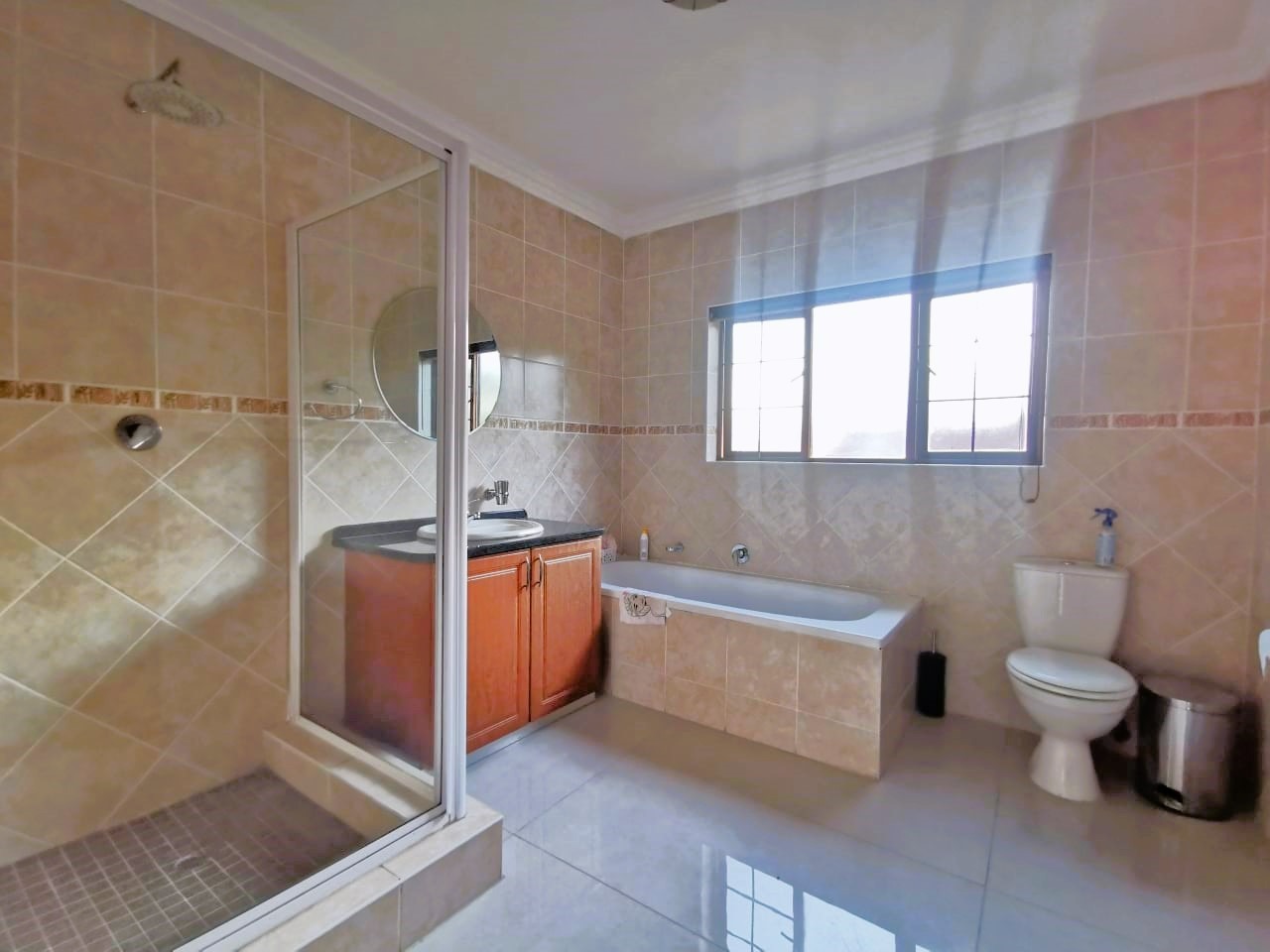 Downstairs features a guest bedroom and bathroom with shower, providing a private space for guests or family members. The modern bar area flows into the braai room, creating a delightful entertainment space, throughout the summer and winter times. With stack doors that open onto the stunning pool area, this space becomes a seamless indoor-outdoor retreat, perfect for enjoying the South African climate.