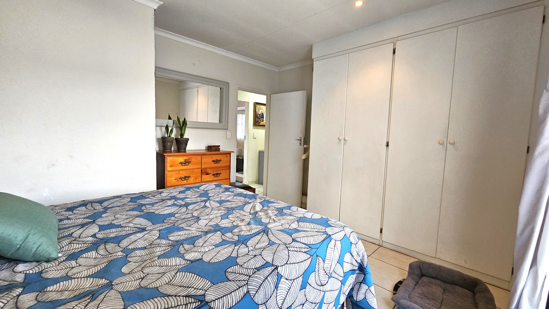 Step outside to a private garden area, complete with a covered patio and a built-in braai, perfect for outdoor enjoyment. The property is pet-friendly, and two dedicated parking spaces are provided. For peace of mind, the unit features an access gate and burglar bars on the sliding doors, enhancing security.