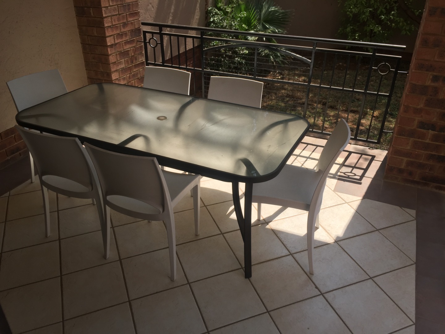 This furnished 3-bedroom, 2-bathroom residence offers comfortable and secure living within a prestigious golf estate in Woodhill, Pretoria. The property features a spacious open-plan living area, ideal for relaxation and entertaining, complemented by a dedicated dining room. The modern kitchen is well-appointed with light wood-grain cabinetry, dark countertops, and essential stainless steel appliances including a refrigerator, built-in oven, hob, and extractor fan, ensuring a functional and stylish culinary space.