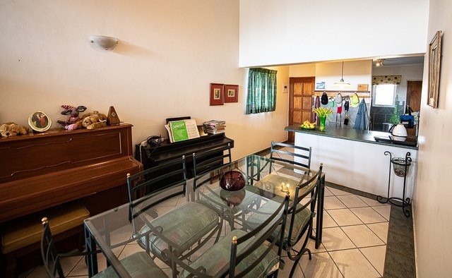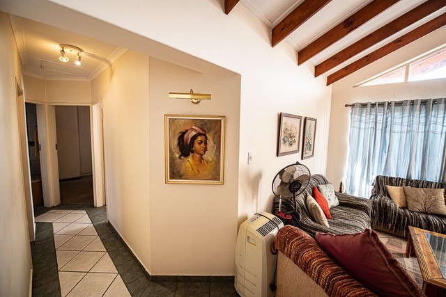 Discover comfortable living in this inviting 3-bedroom, 2-bathroom residence available for rent in the prestigious Woodhill Golf Estate, Pretoria. The home features an open-plan lounge and dining area, enhanced by high vaulted ceilings with exposed wooden beams and abundant natural light, creating a spacious and airy atmosphere. The functional kitchen boasts ample counter space, a convenient breakfast bar, and essential appliances including a stove and microwave. A dedicated utility area further accommodates a large refrigerator, oven, dishwasher, washing machine, and tumble dryer, ensuring all your household needs are met. Each of the three bedrooms offers comfortable accommodation, with built-in wardrobes providing practical storage solutions.