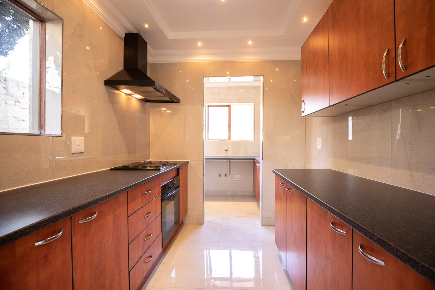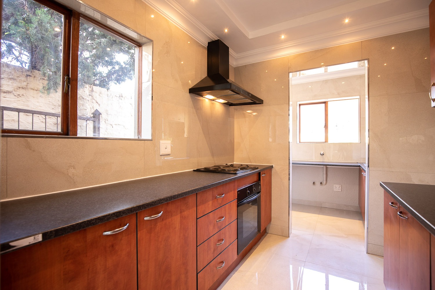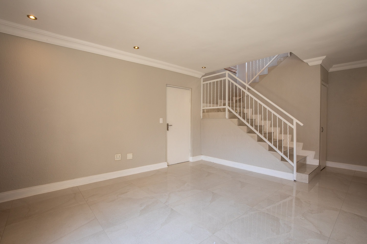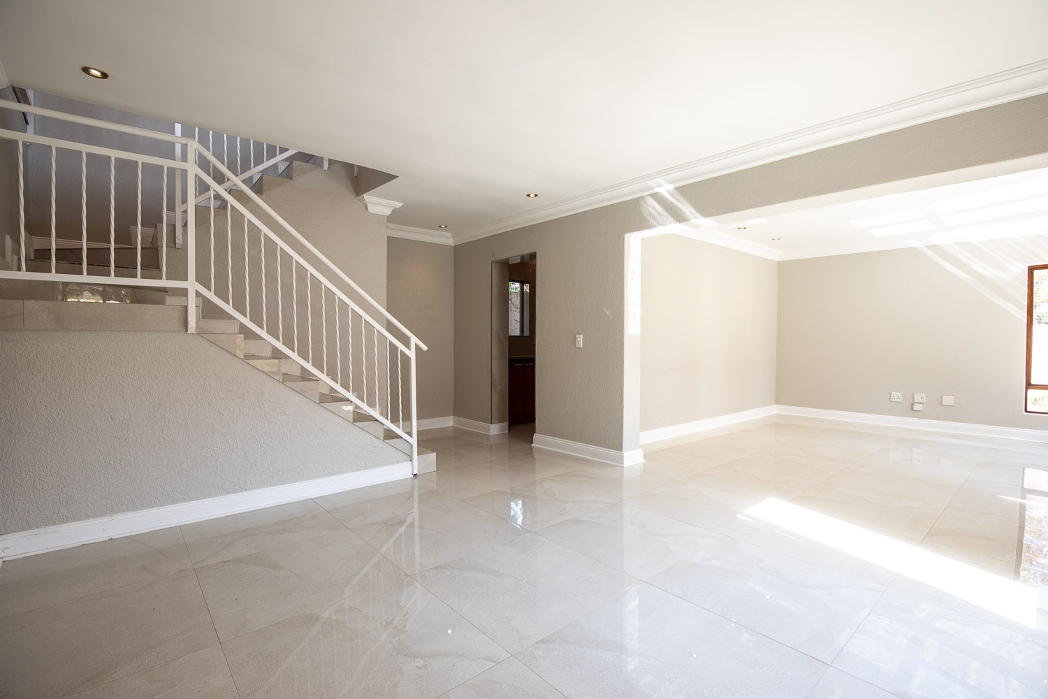 Discover this inviting 3-bedroom, 2-bathroom residence available for rent in the esteemed Woodhill, Pretoria. This two-story home offers a well-designed layout, featuring spacious open-plan living areas with modern polished tile flooring, neutral walls, and elegant recessed lighting. The contemporary kitchen boasts warm wood cabinetry, dark countertops, and integrated appliances, complemented by a convenient utility area. A dedicated study provides an ideal space for work or quiet contemplation. The property includes a dining room and a comfortable lounge, ensuring ample space for relaxation and entertaining.