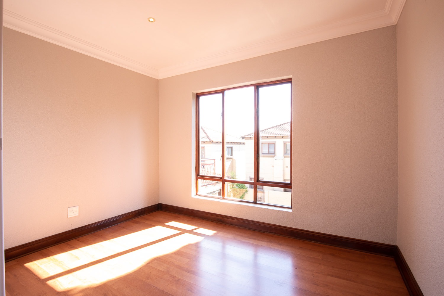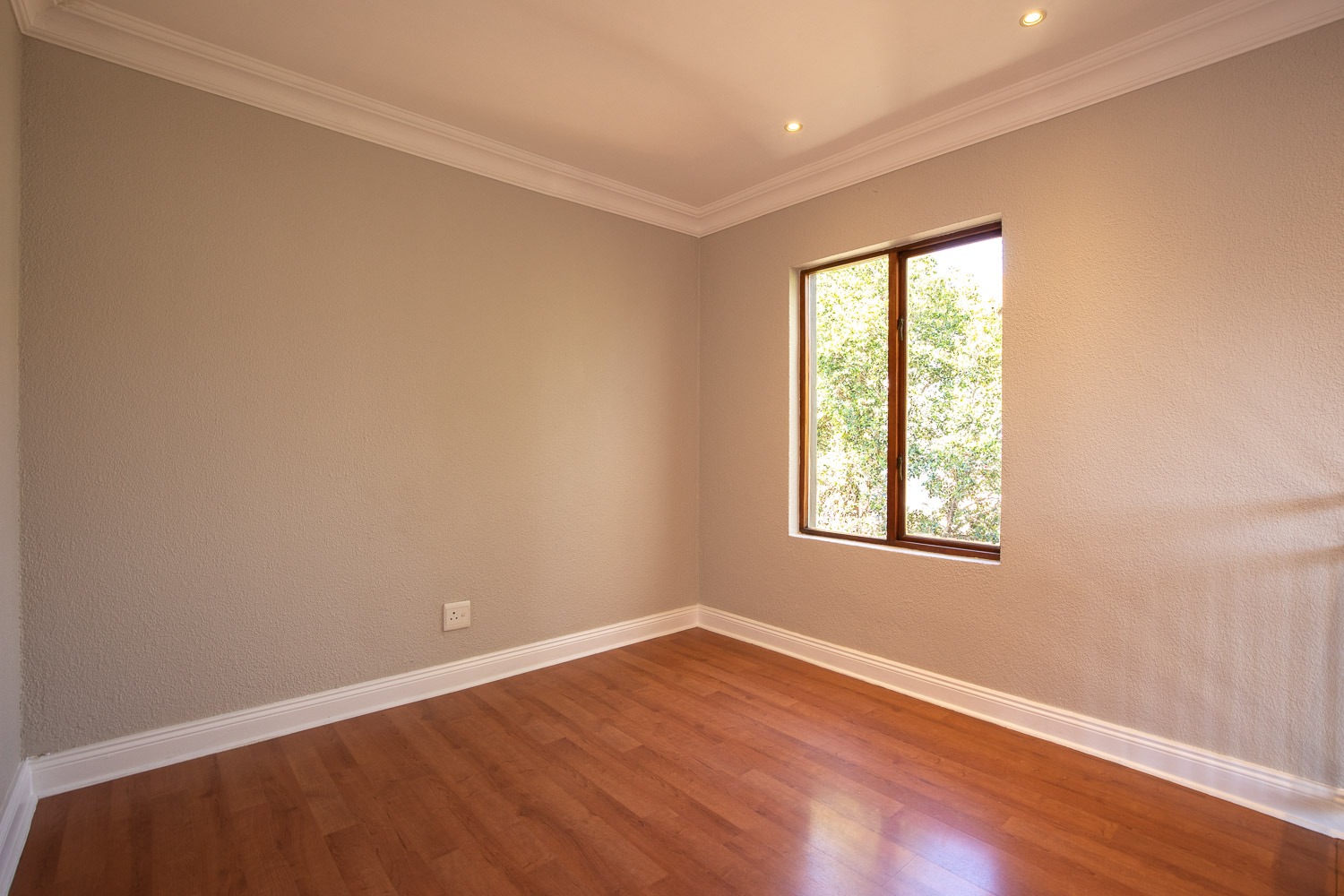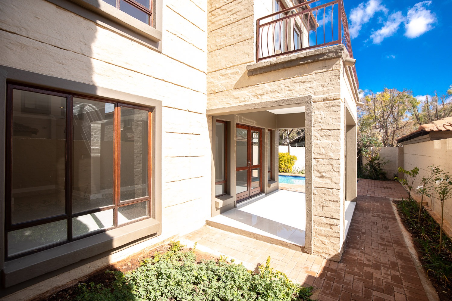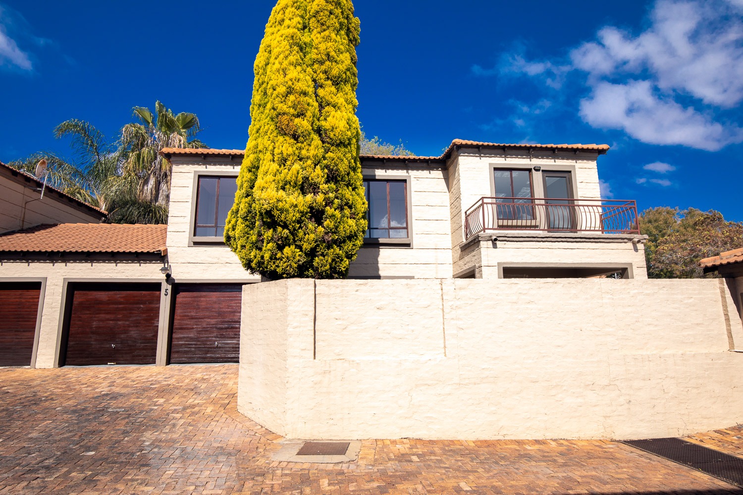 Designed for comfortable living, this unfurnished home is perfect for families or professionals seeking a secure and pet-friendly environment. Step outside to a private oasis featuring a sparkling swimming pool and a brick-paved patio, ideal for outdoor entertaining and enjoying the South African climate. A well-maintained garden provides a tranquil setting, while an upper-level balcony offers additional outdoor space. The property also benefits from a double garage and additional parking, providing practical convenience.