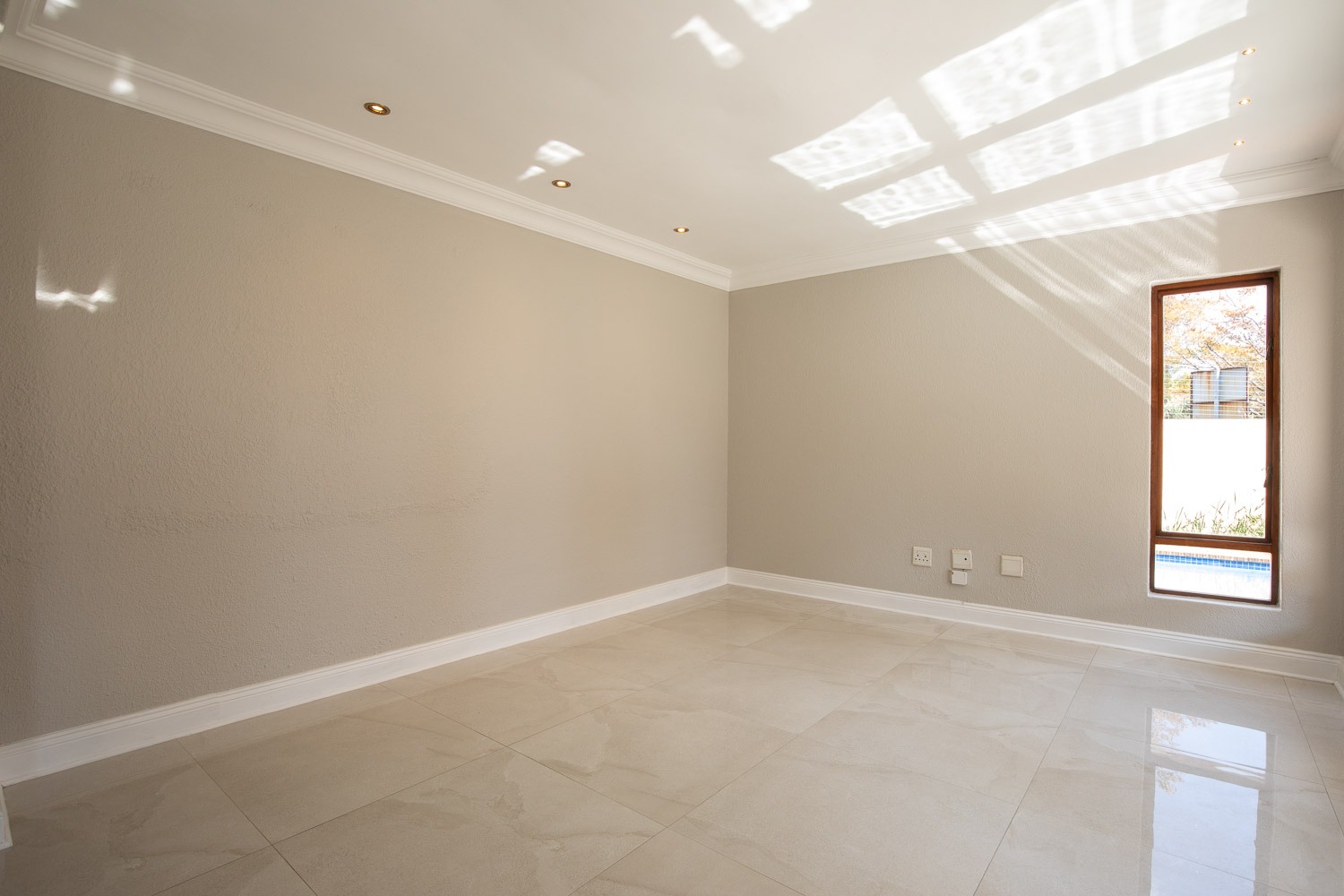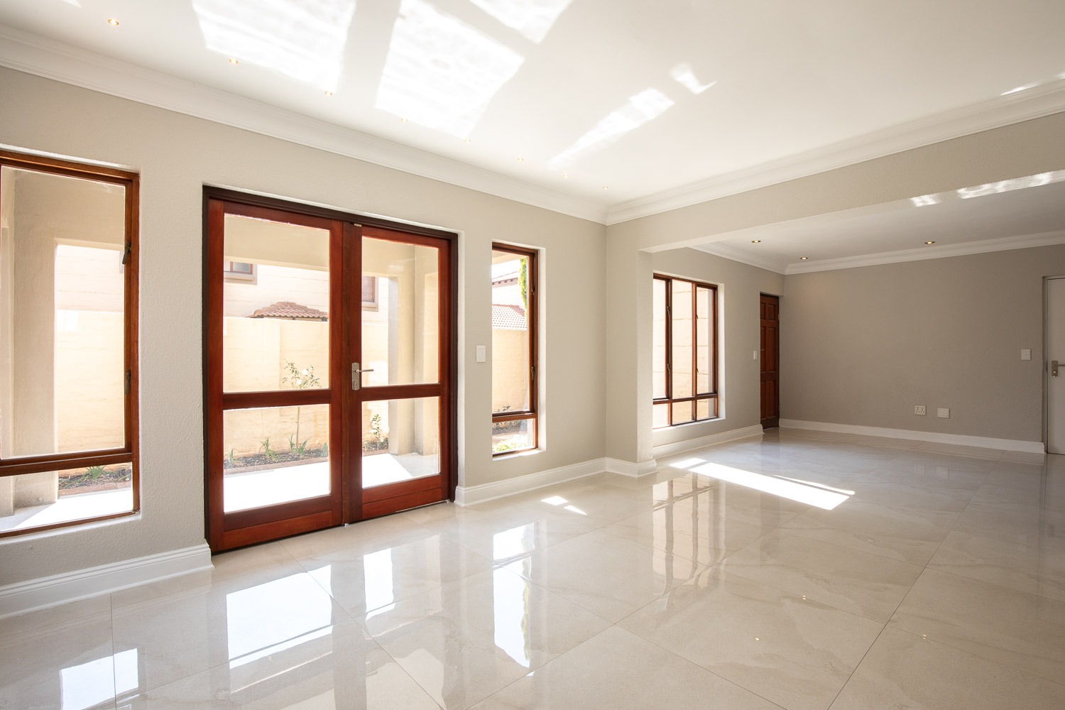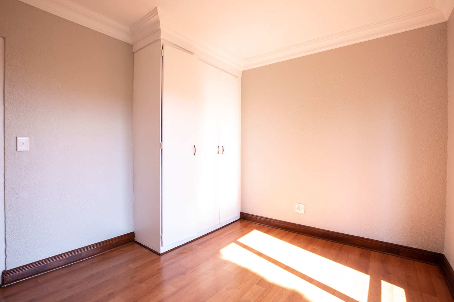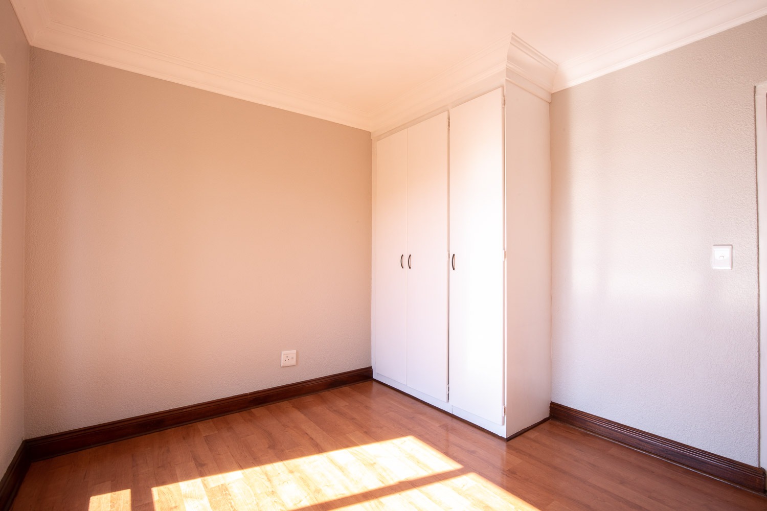 Designed for comfortable living, this unfurnished home is perfect for families or professionals seeking a secure and pet-friendly environment. Step outside to a private oasis featuring a sparkling swimming pool and a brick-paved patio, ideal for outdoor entertaining and enjoying the South African climate. A well-maintained garden provides a tranquil setting, while an upper-level balcony offers additional outdoor space. The property also benefits from a double garage and additional parking, providing practical convenience.