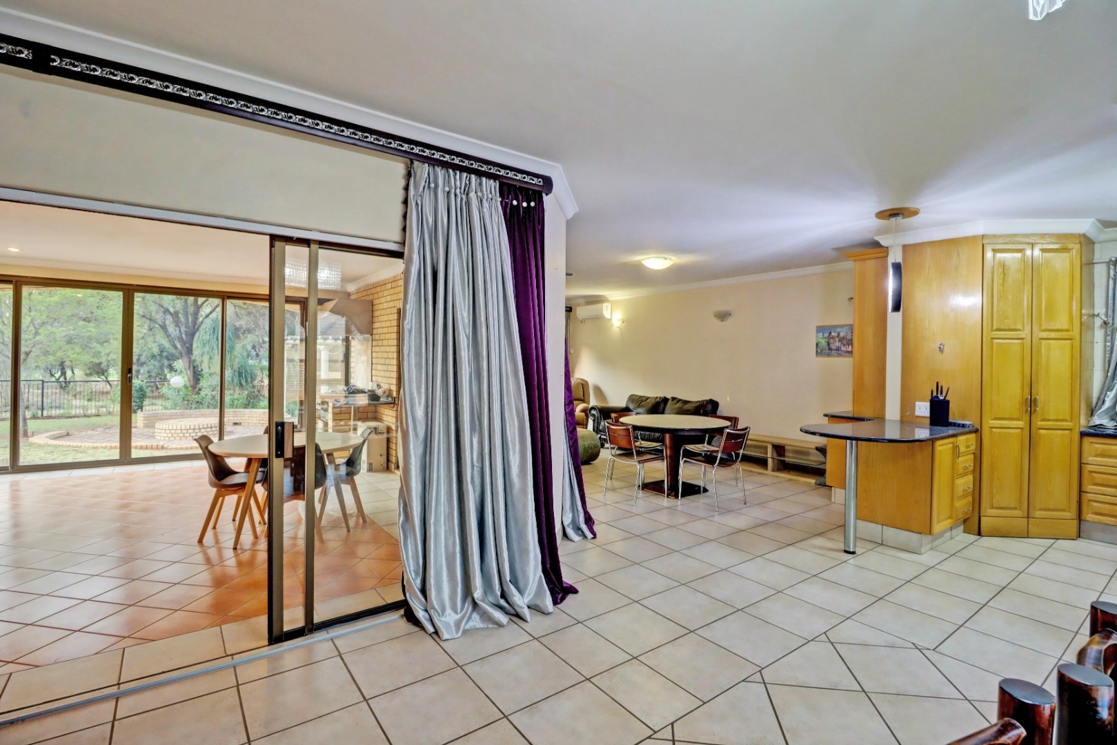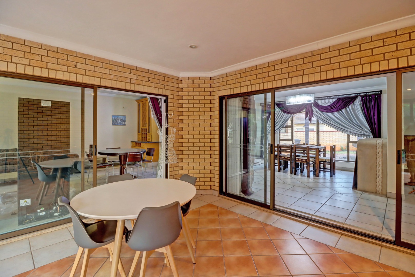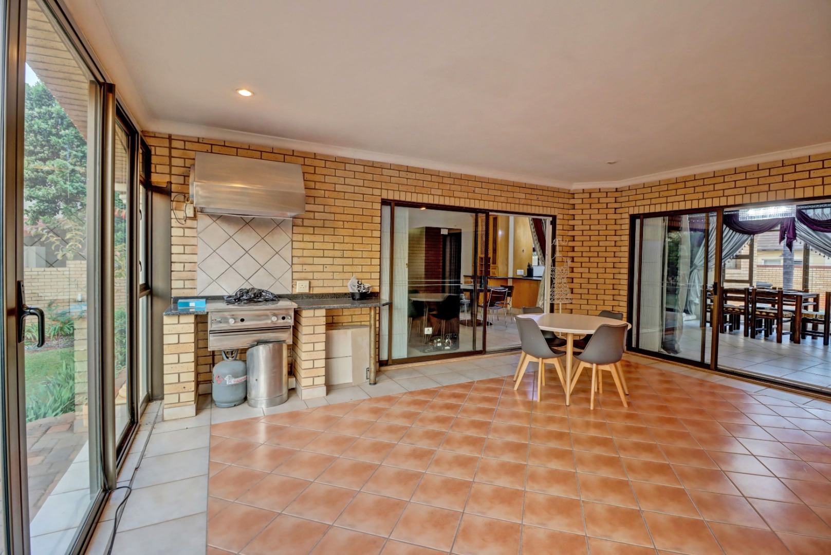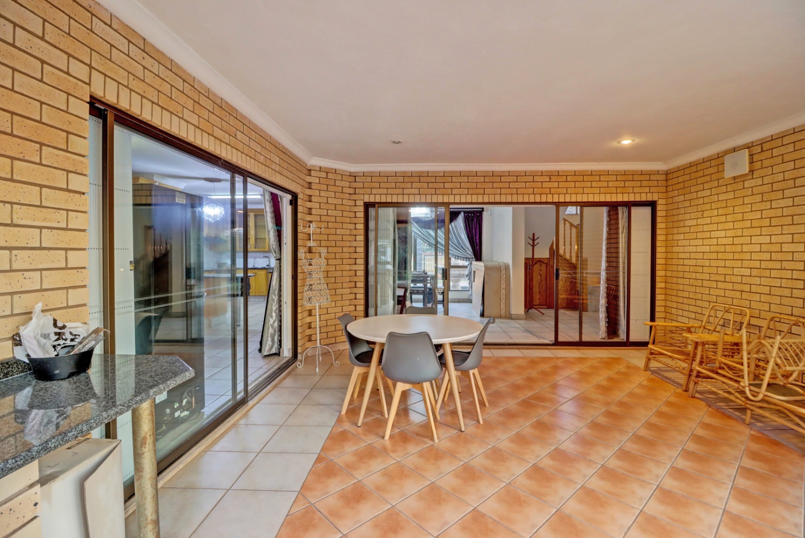 covered patio that overlooks the sparkling swimming pool and garden, that is perfect for those chilly winter night or summer days for wanting to entertain around the pool.