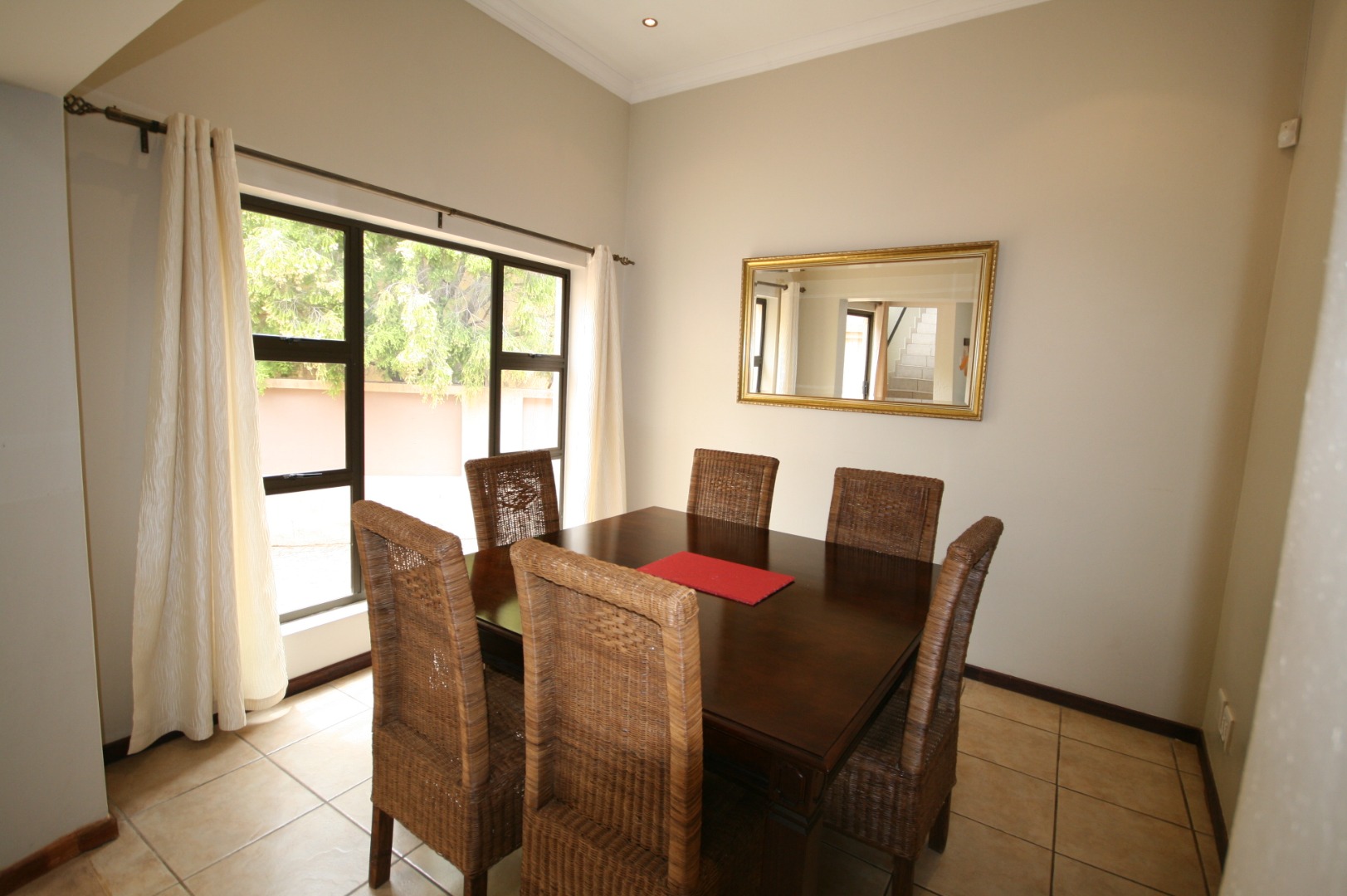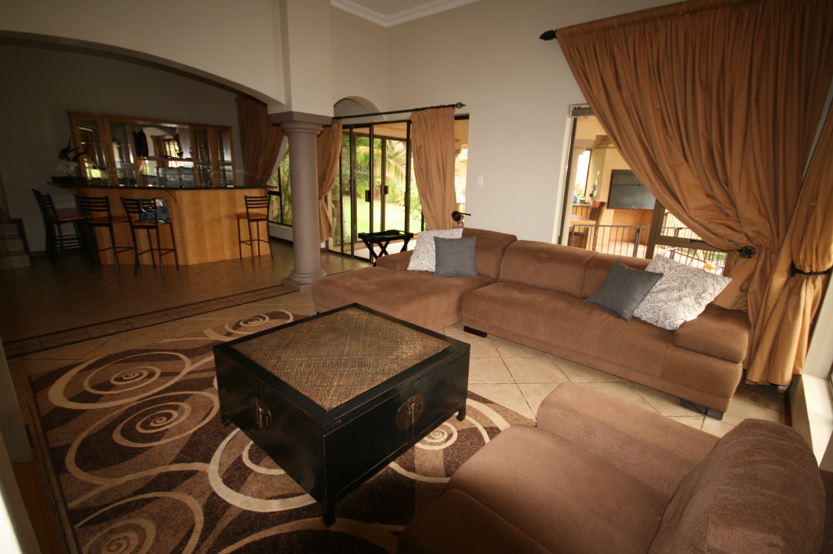 Discover this spacious 4-bedroom, 3.5-bathroom residence available for residential rent in the esteemed Woodhill Golf Estate, Pretoria. Boasting a Mediterranean/Tuscan architectural style, this multi-level home offers a generous 371 sqm under roof on a 1047 sqm erf, perfect for family living. The property features an inviting arched entrance, leading into an interior designed for comfort and functionality.