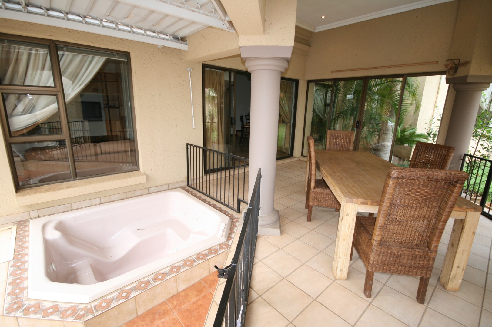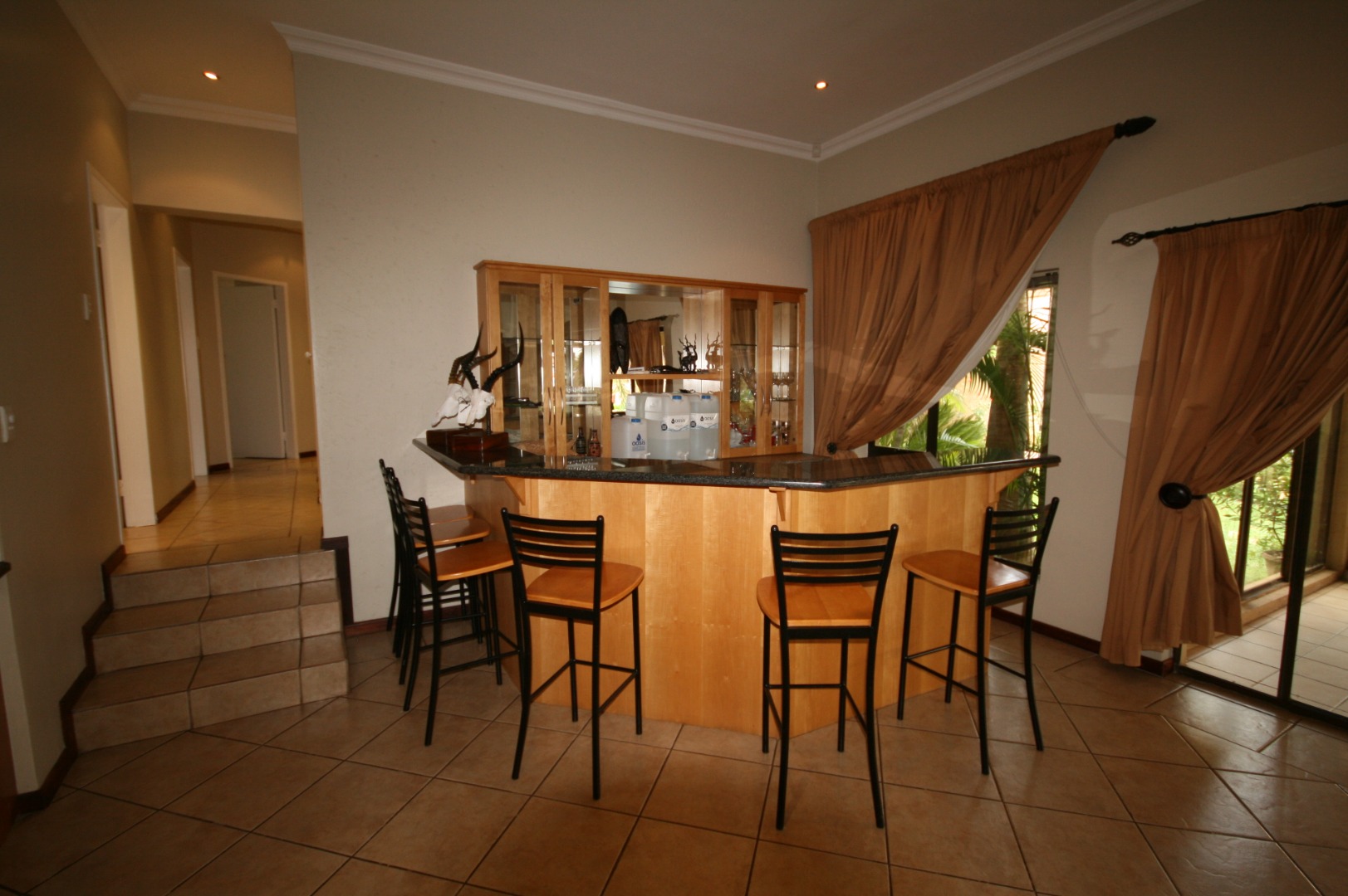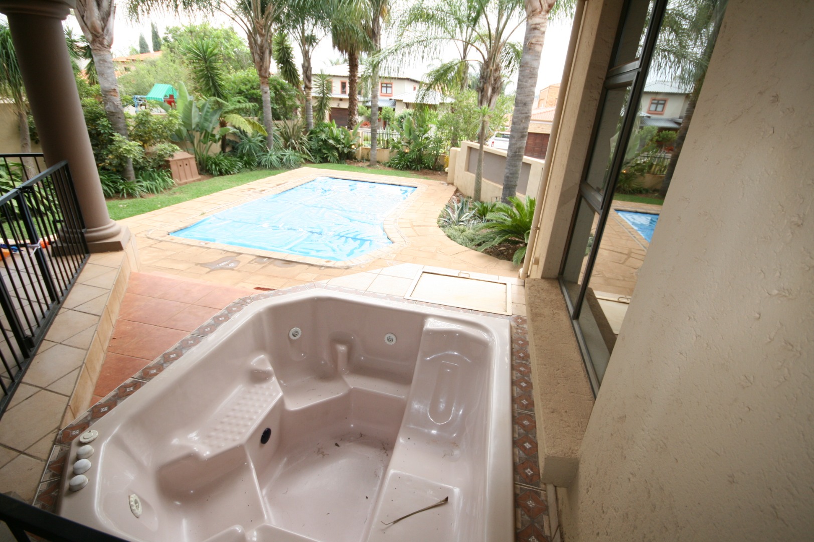 The outdoor area is a true highlight, designed for leisure and enjoyment. It features a sparkling swimming pool, a built-in jacuzzi, and a spacious tiled patio with a built-in braai, all set within a lush, mature garden with tropical palm trees. A double garage and four additional parking spaces ensure convenience for residents and guests. As part of a secure golf estate, the property benefits from enhanced security, including a security gate, and is fibre-ready for seamless connectivity. Pets are allowed, making this an ideal home for the whole family.