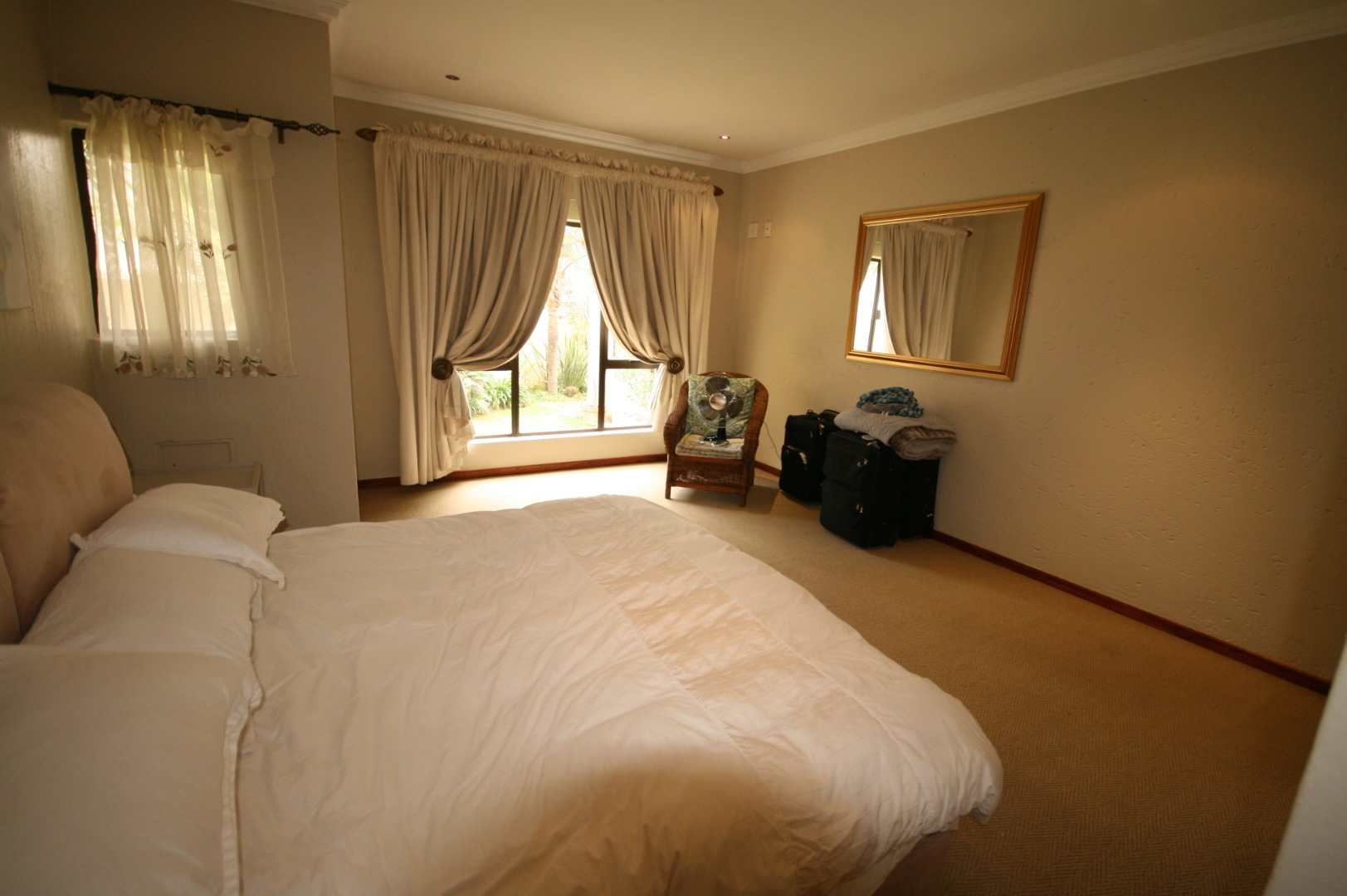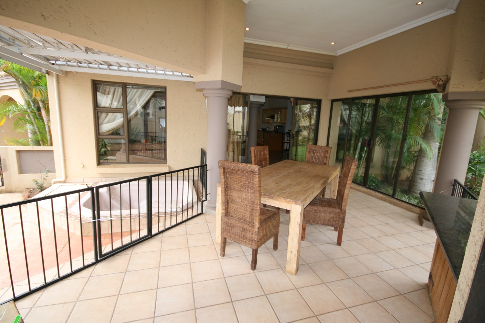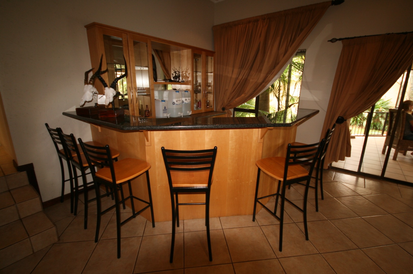 The outdoor area is a true highlight, designed for leisure and enjoyment. It features a sparkling swimming pool, a built-in jacuzzi, and a spacious tiled patio with a built-in braai, all set within a lush, mature garden with tropical palm trees. A double garage and four additional parking spaces ensure convenience for residents and guests. As part of a secure golf estate, the property benefits from enhanced security, including a security gate, and is fibre-ready for seamless connectivity. Pets are allowed, making this an ideal home for the whole family.